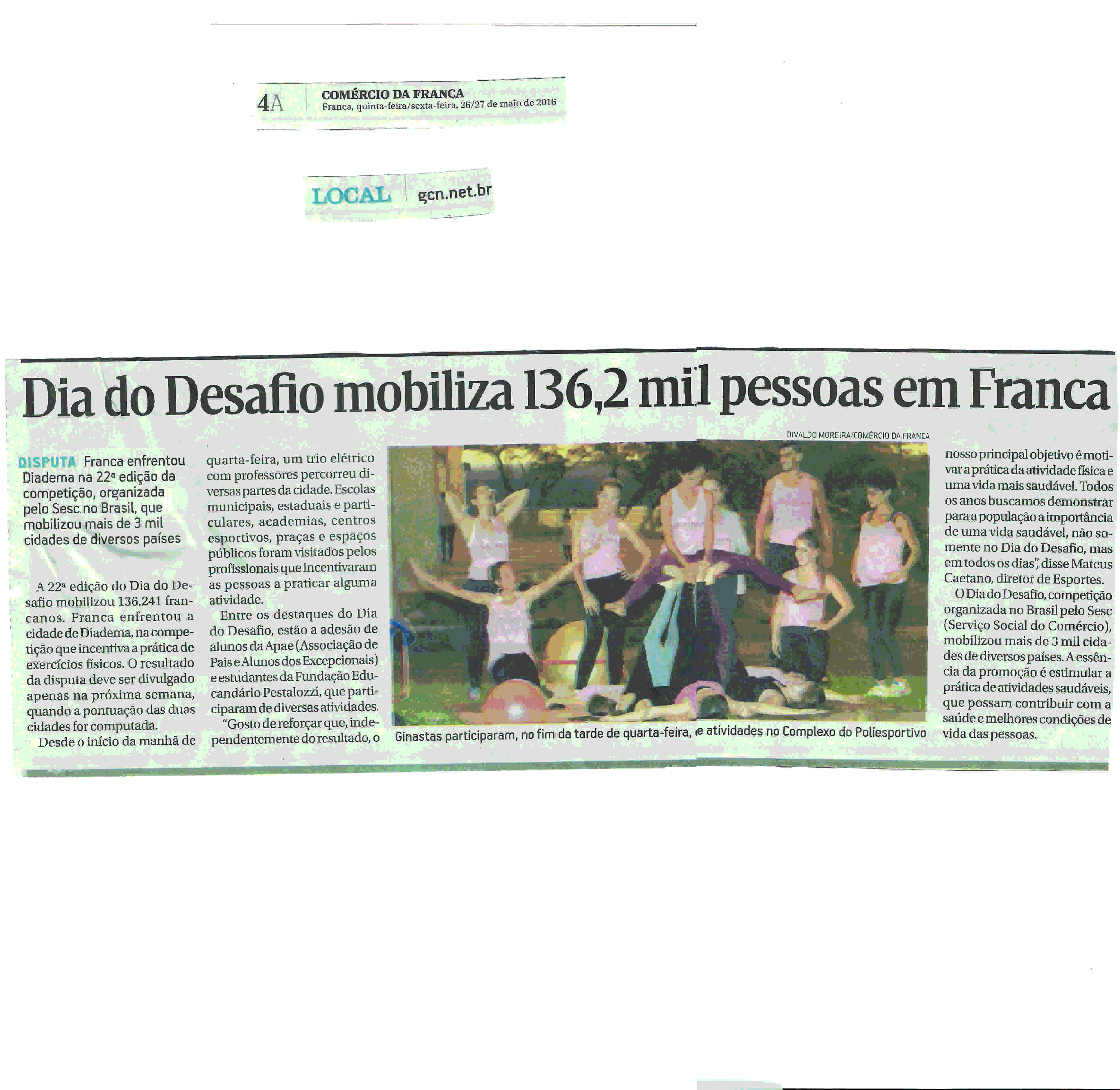 26.27/05/16 - COMÉRCIO DA FRANCA - Dia do Desafio mobiliza 136,2 mil pessoas em Franca - 2...