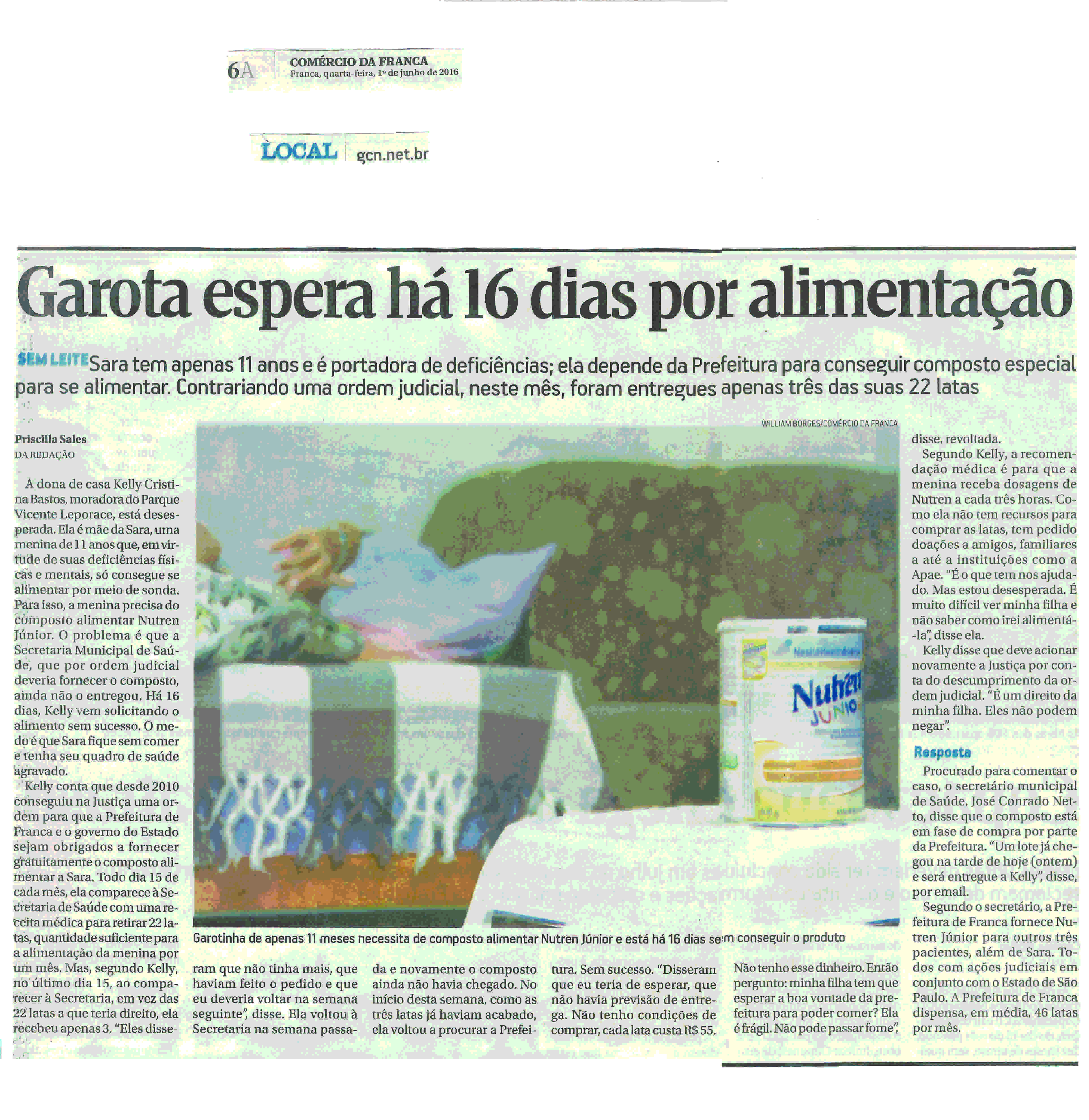 01/06/16 - COMÉRCIO DA FRANCA - Garota espera há 16 dias por alimentação - 0106-comercio-d...