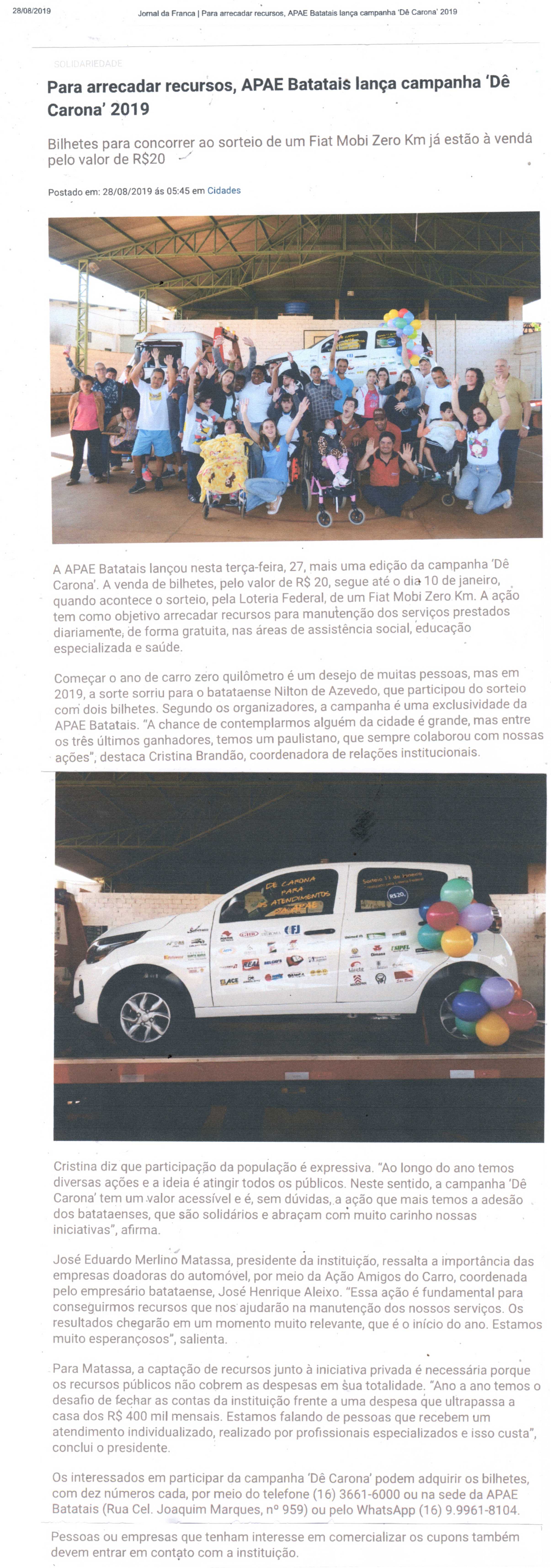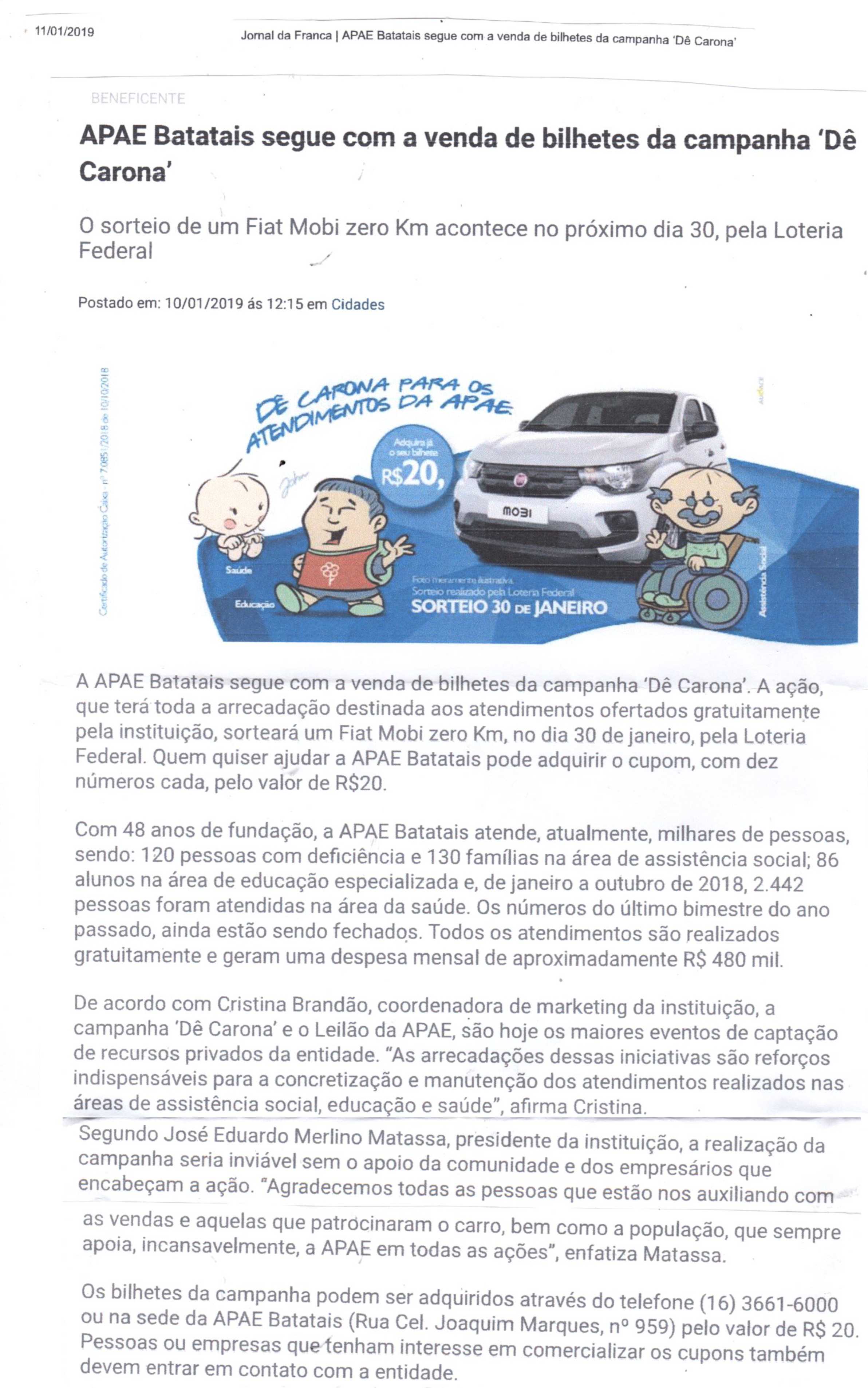 14/01/16 - DIÁRIO DA FRANCA - Apae ganha carro novo para rifa de R$ 1,99 - 1401-diario-da...