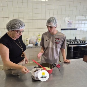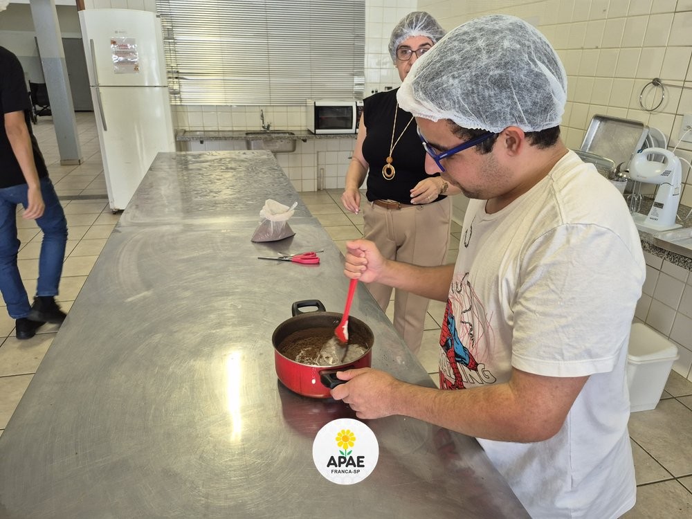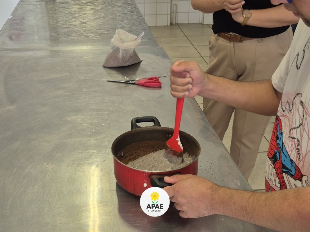 Os alunos do Socioeducacional participaram de uma atividade especial na cozinha didática, com a preparação e degustação de um delicioso bolo de chocolate.
