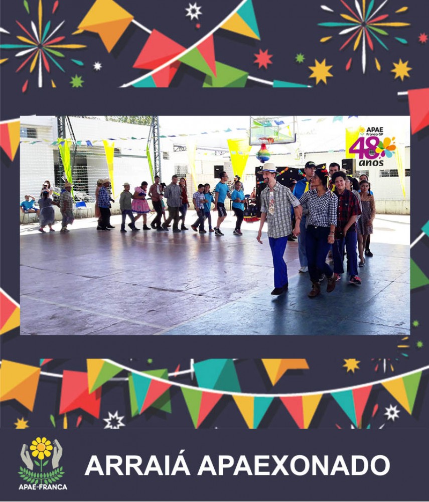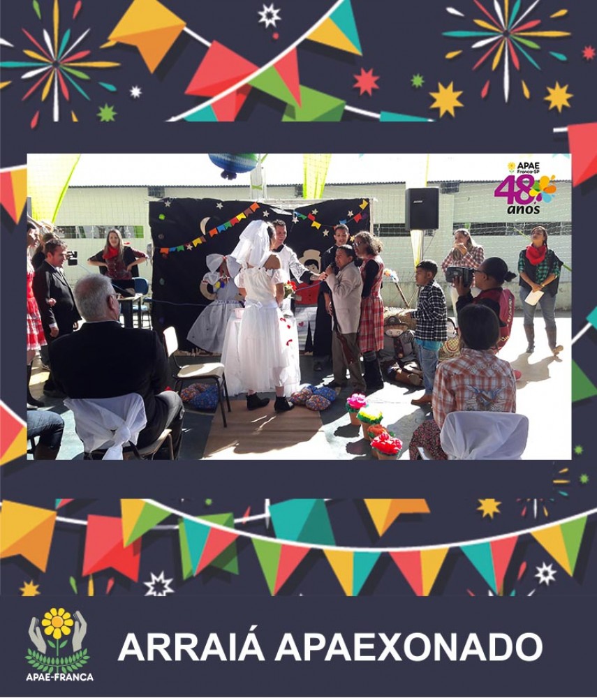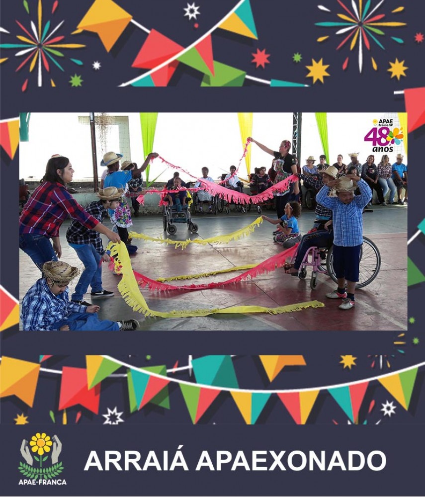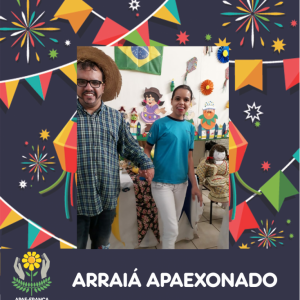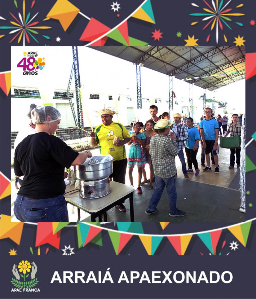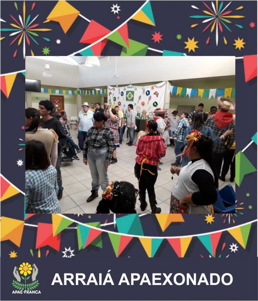 Foi Realizado nas áreas de Assistência Social, Educação e Saúde o ARRAIÁ APAEXONADO com dança da quadrilha, brincadeiras, casamento caipira, muita música temática e foi servido os pratos típicos: pipoca e algodão doce.
