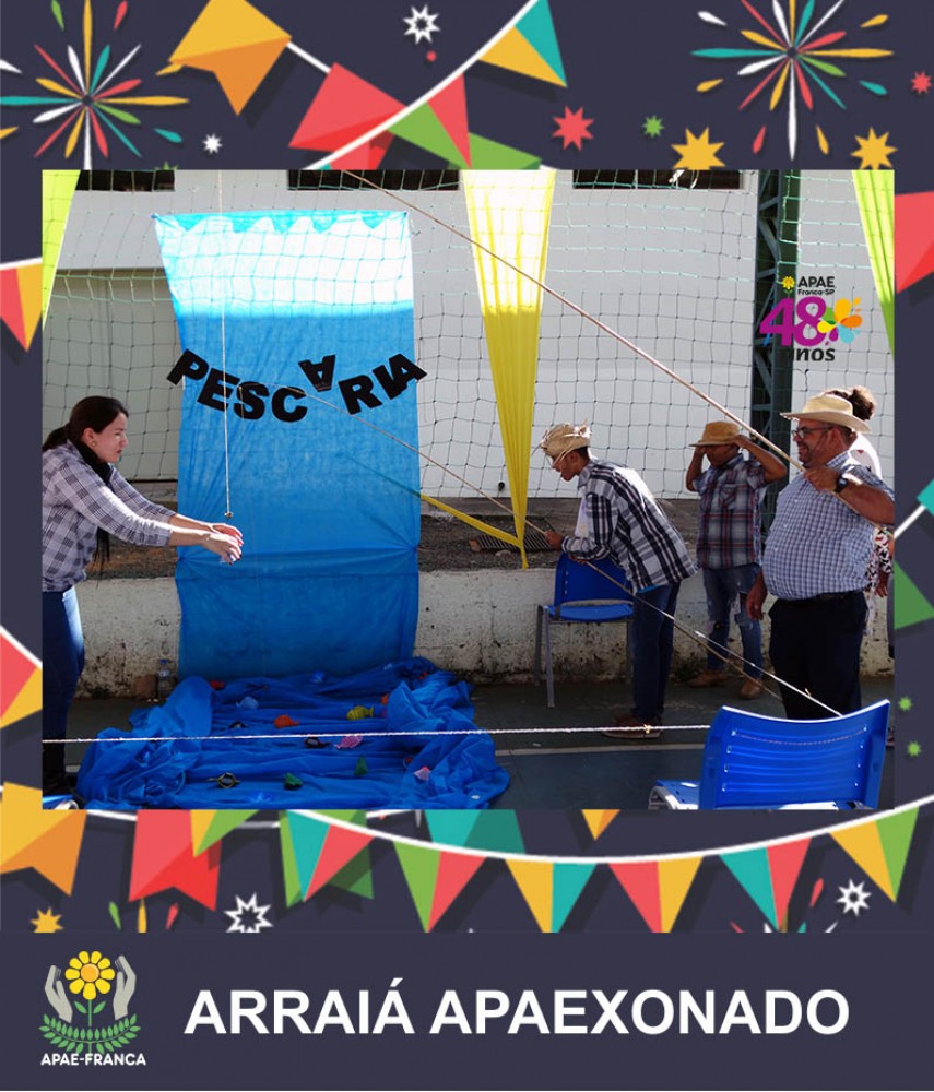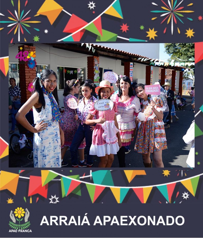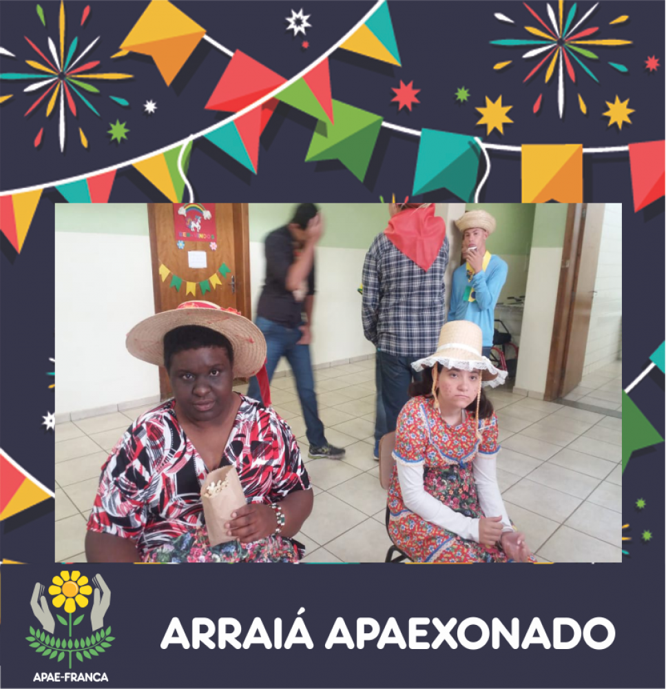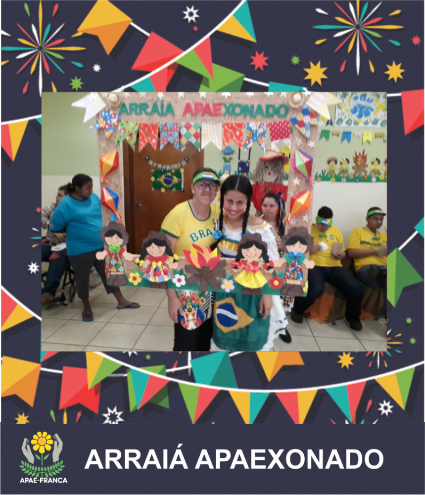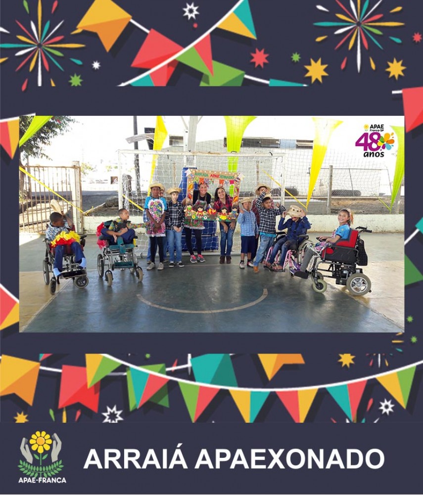 Foi Realizado nas áreas de Assistência Social, Educação e Saúde o ARRAIÁ APAEXONADO com dança da quadrilha, brincadeiras, casamento caipira, muita música temática e foi servido os pratos típicos: pipoca e algodão doce.