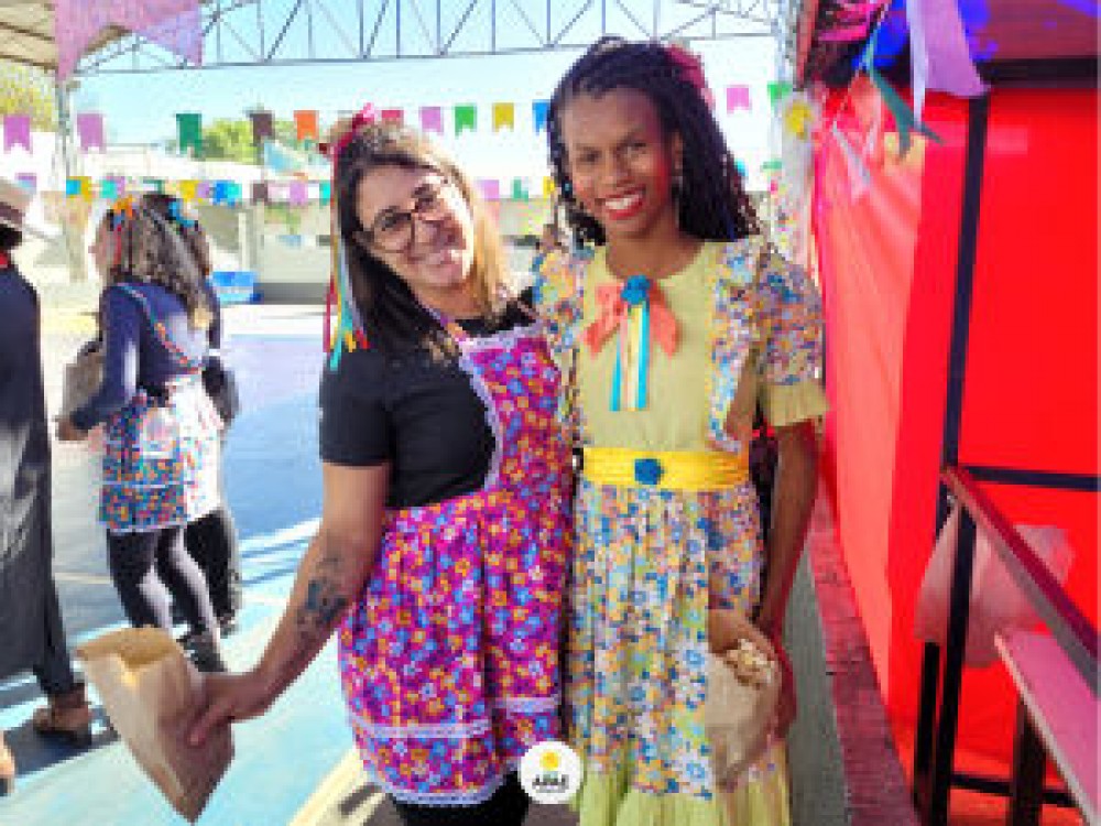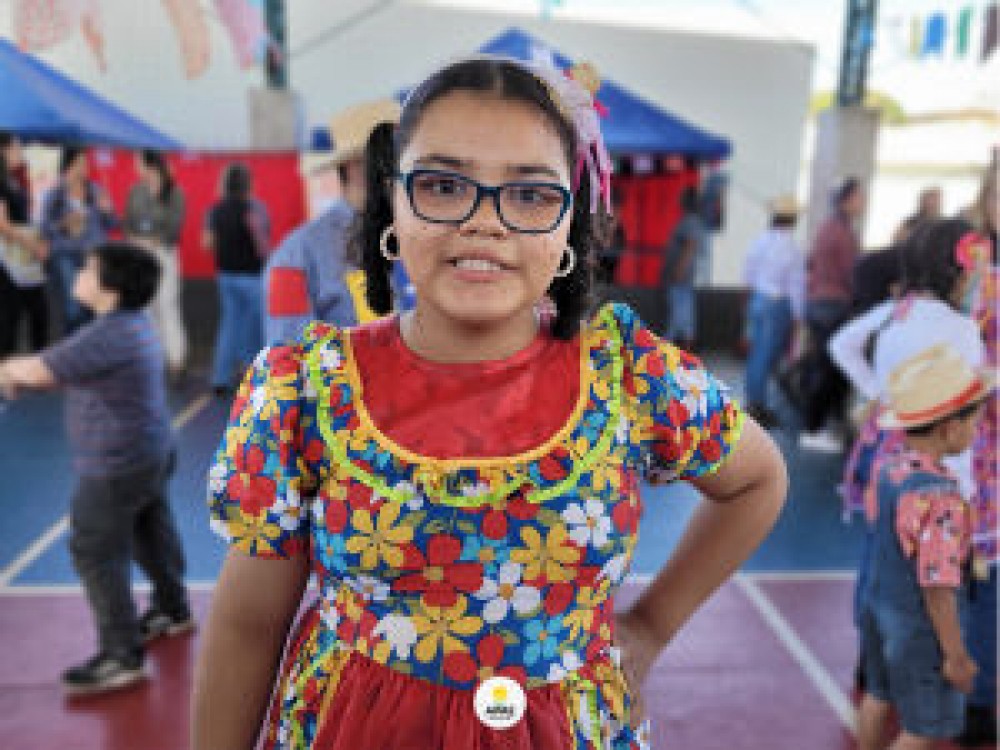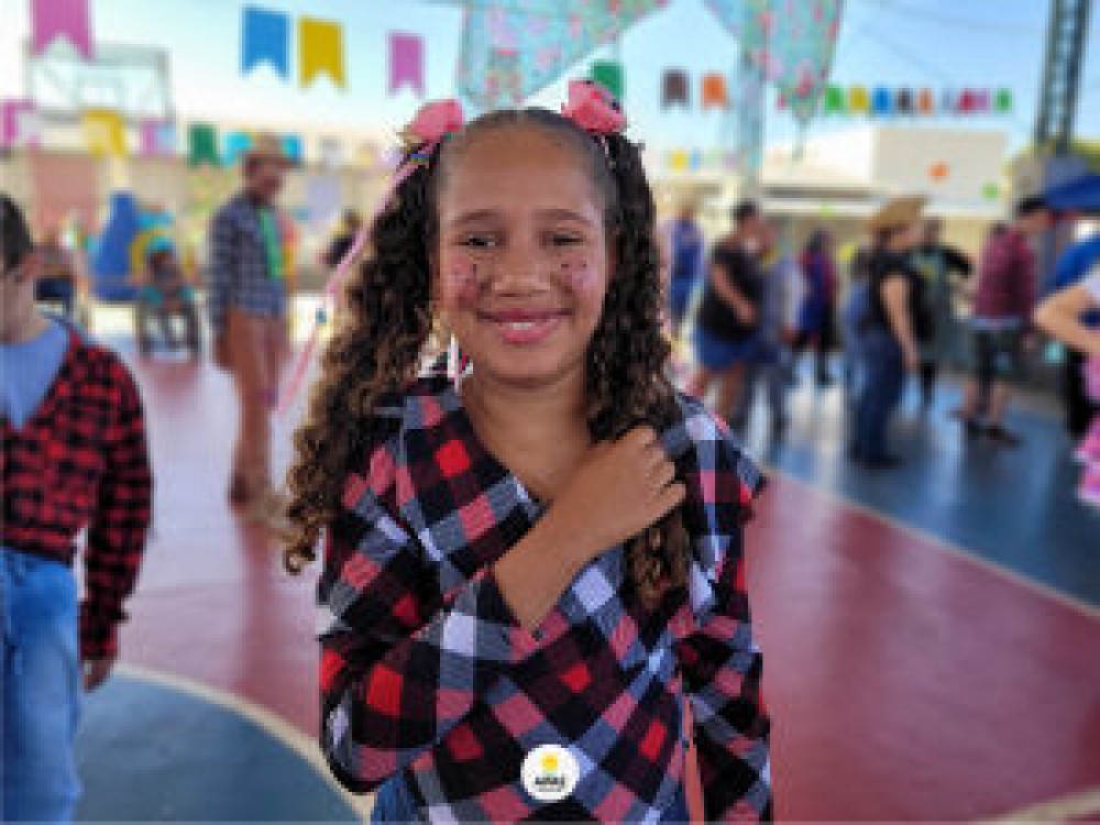 Sara de Oliveira,de 12 anos, estava com um vestido florido, enfeite de fitas no cabelo e pintura no rosto, animada com o Arraiá. “Eu gostei de dançar com meu amigo na Festa Junina. Foi muito legal”.