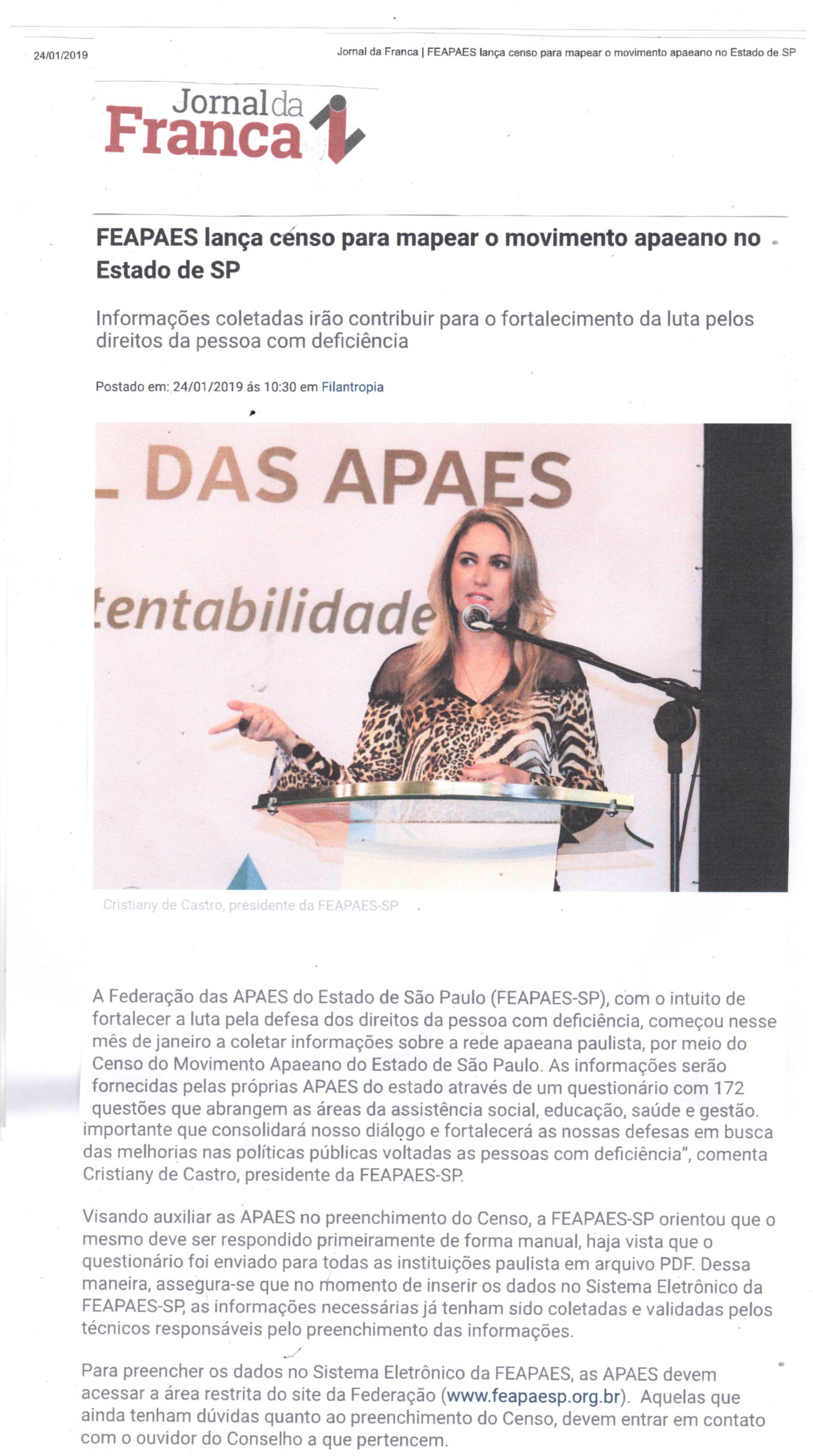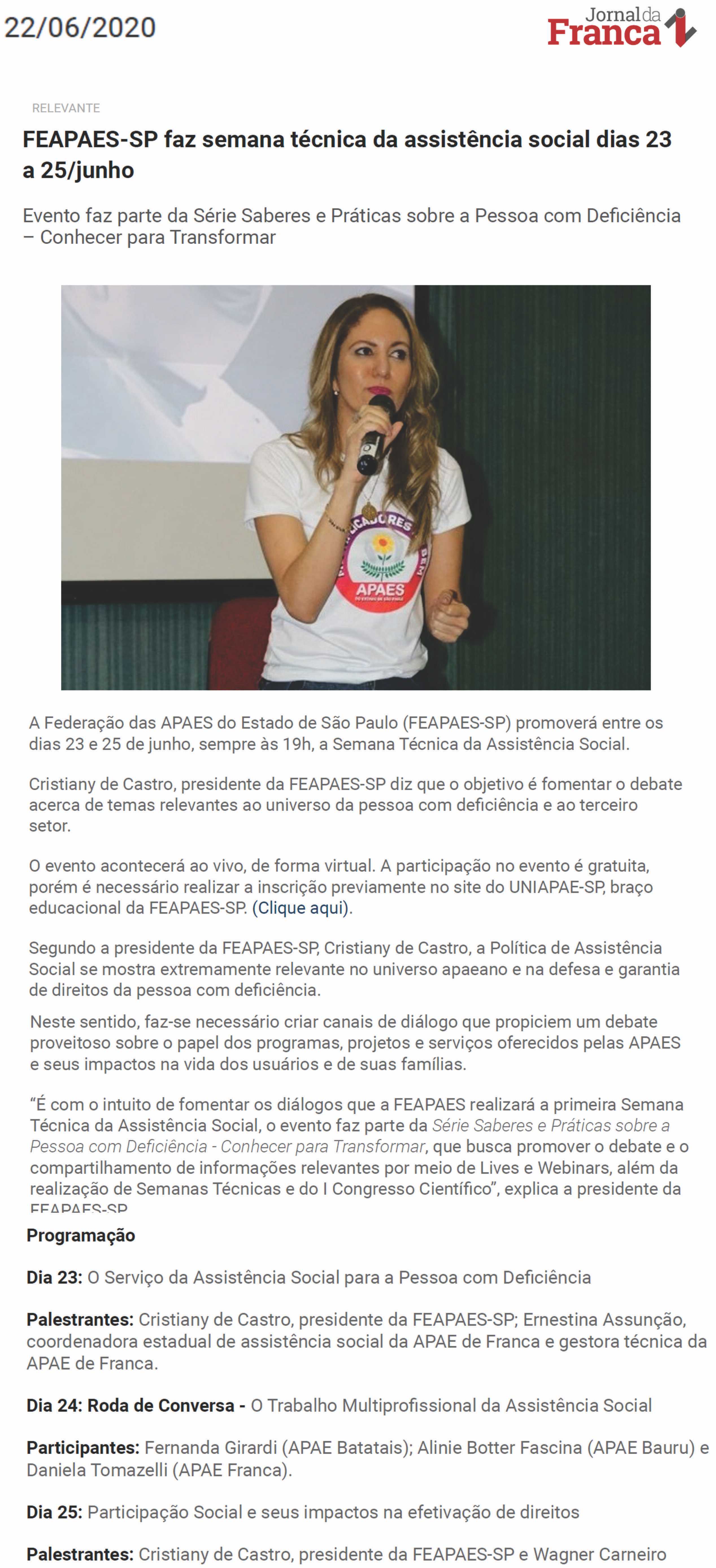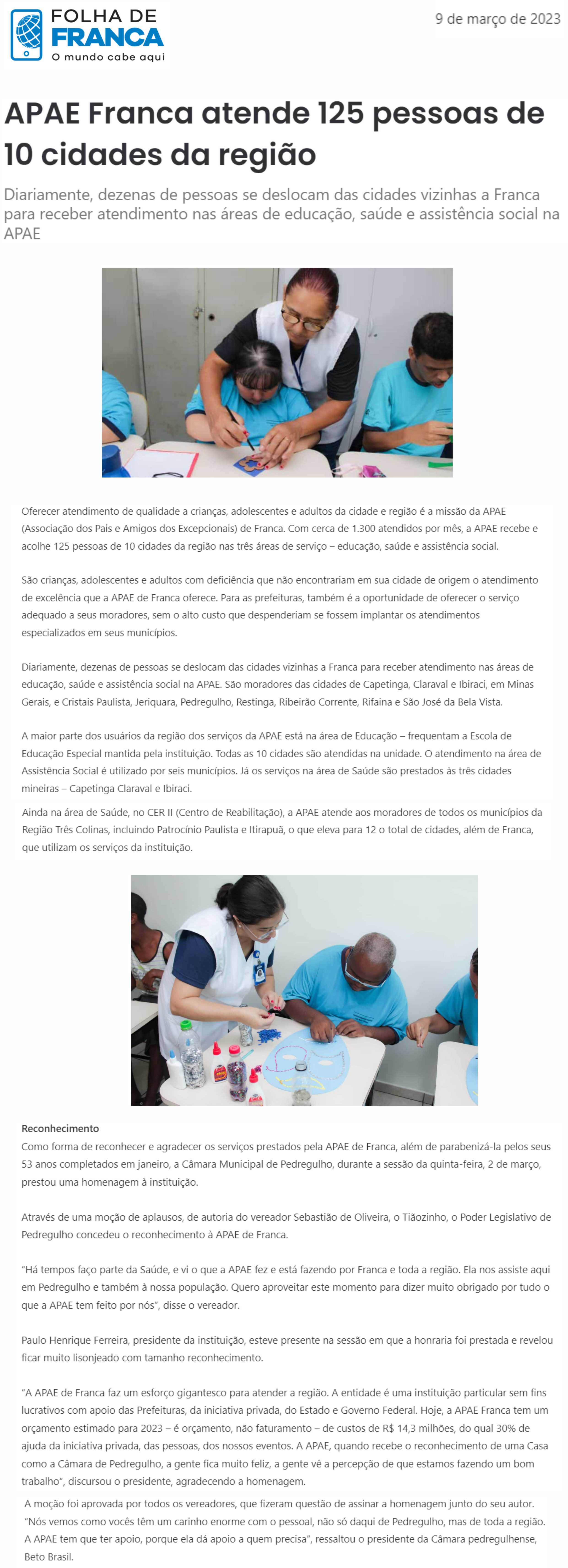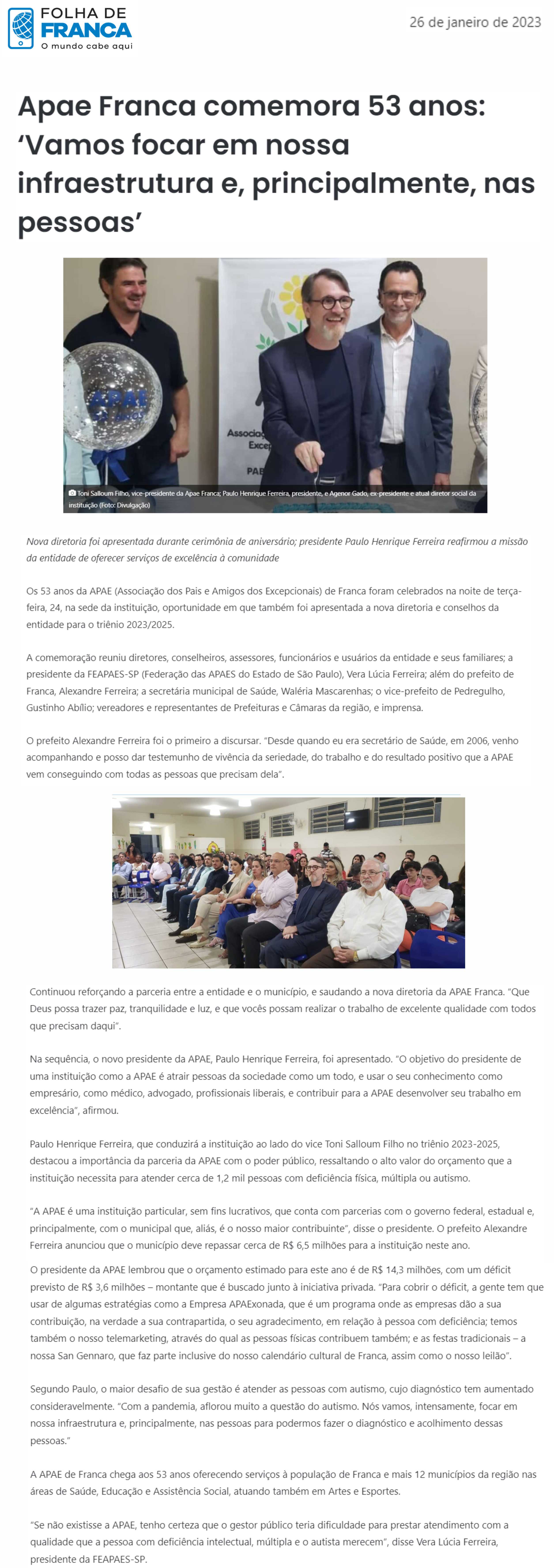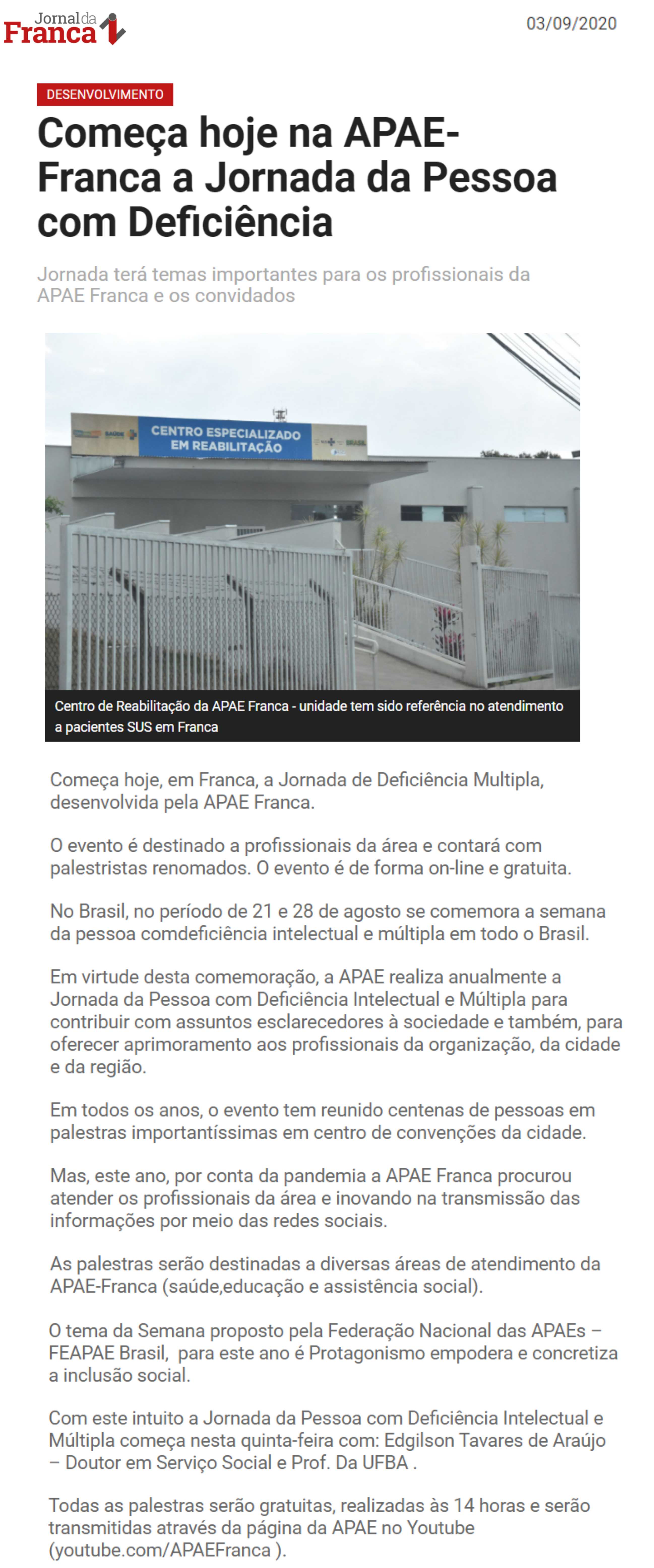 Publicações sobre a APAE-Franca nos veículos de comunicação de Franca e Região.