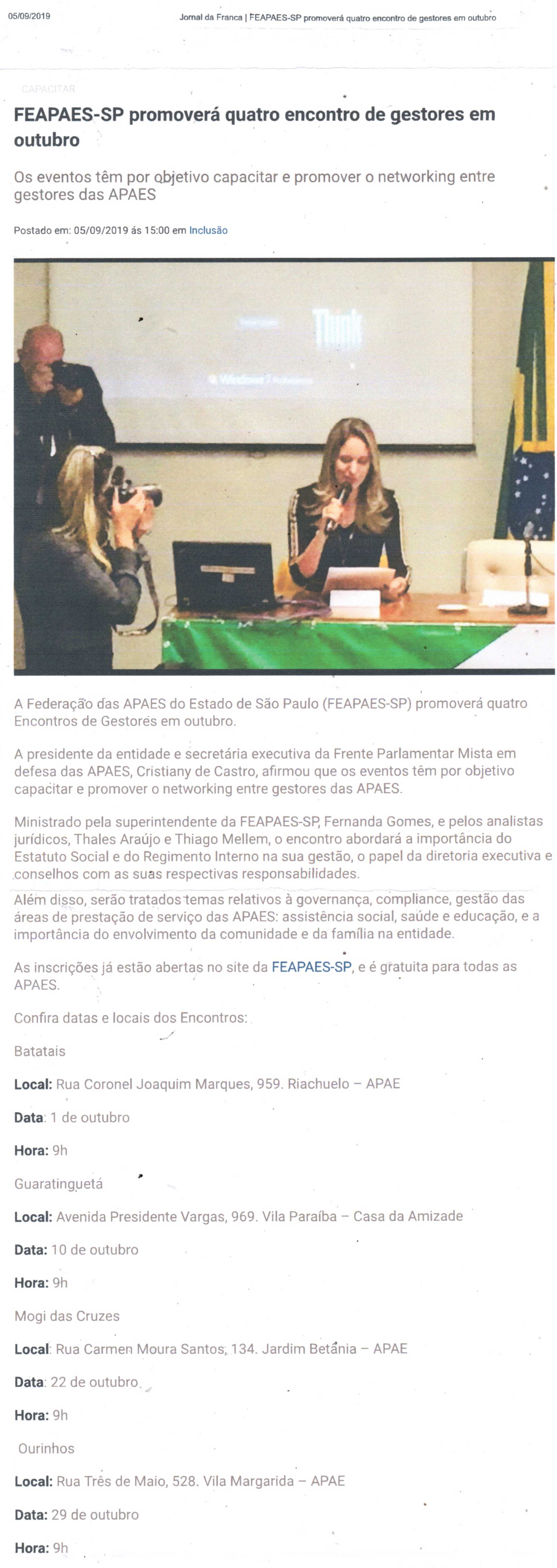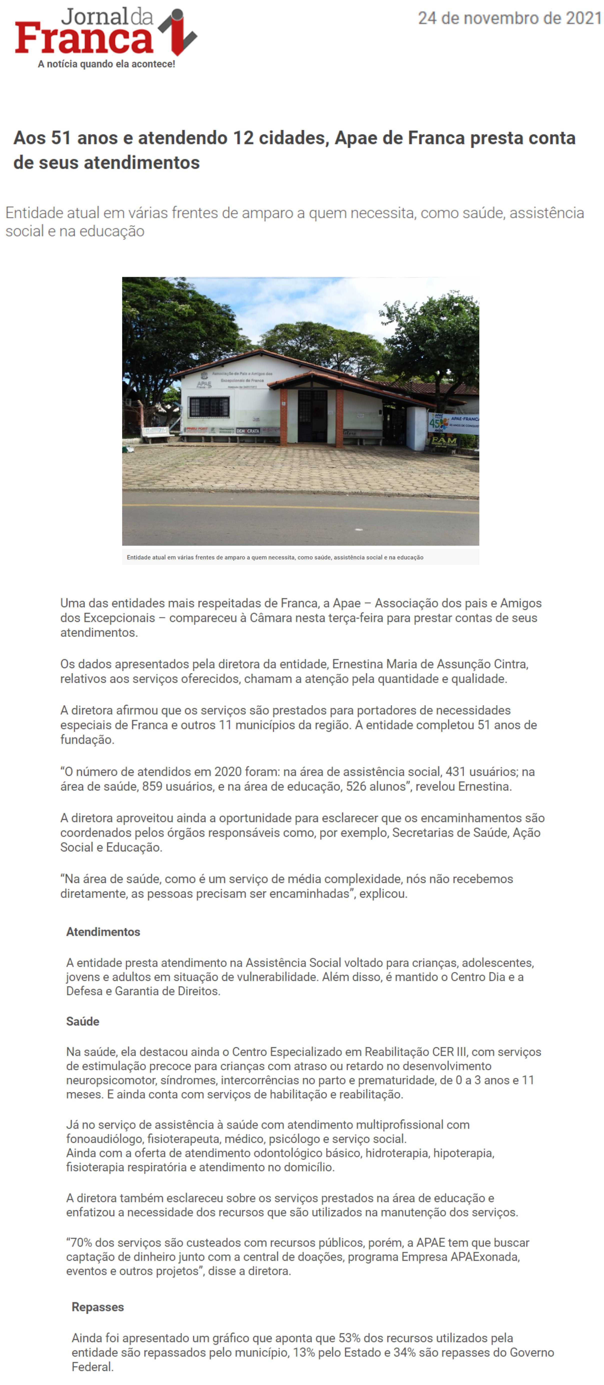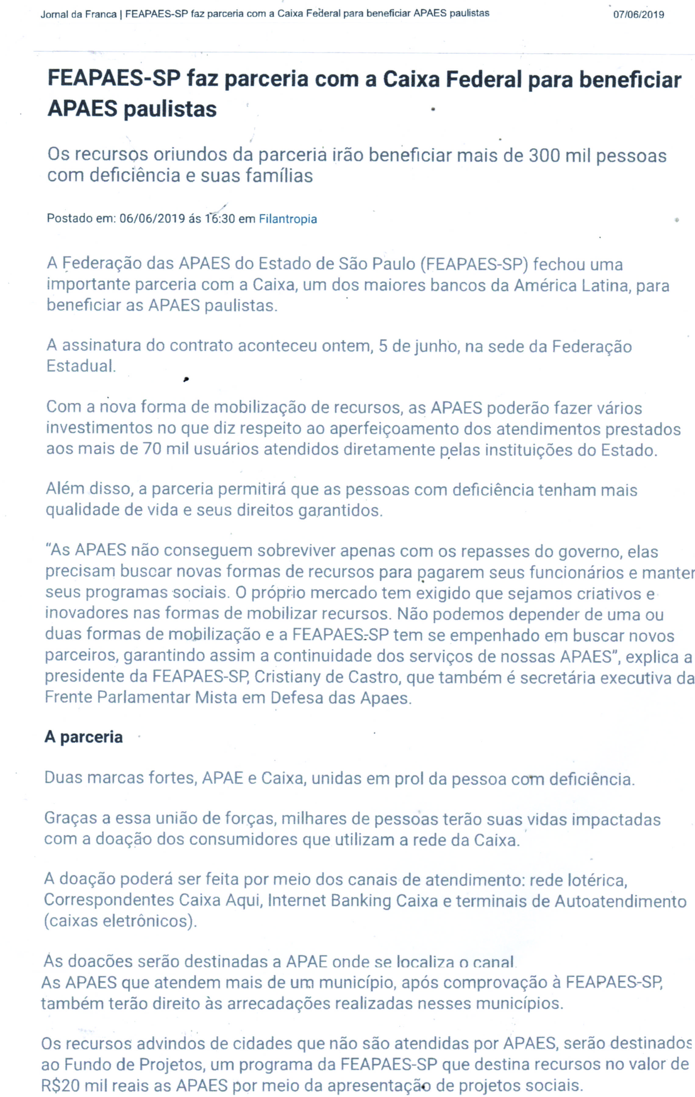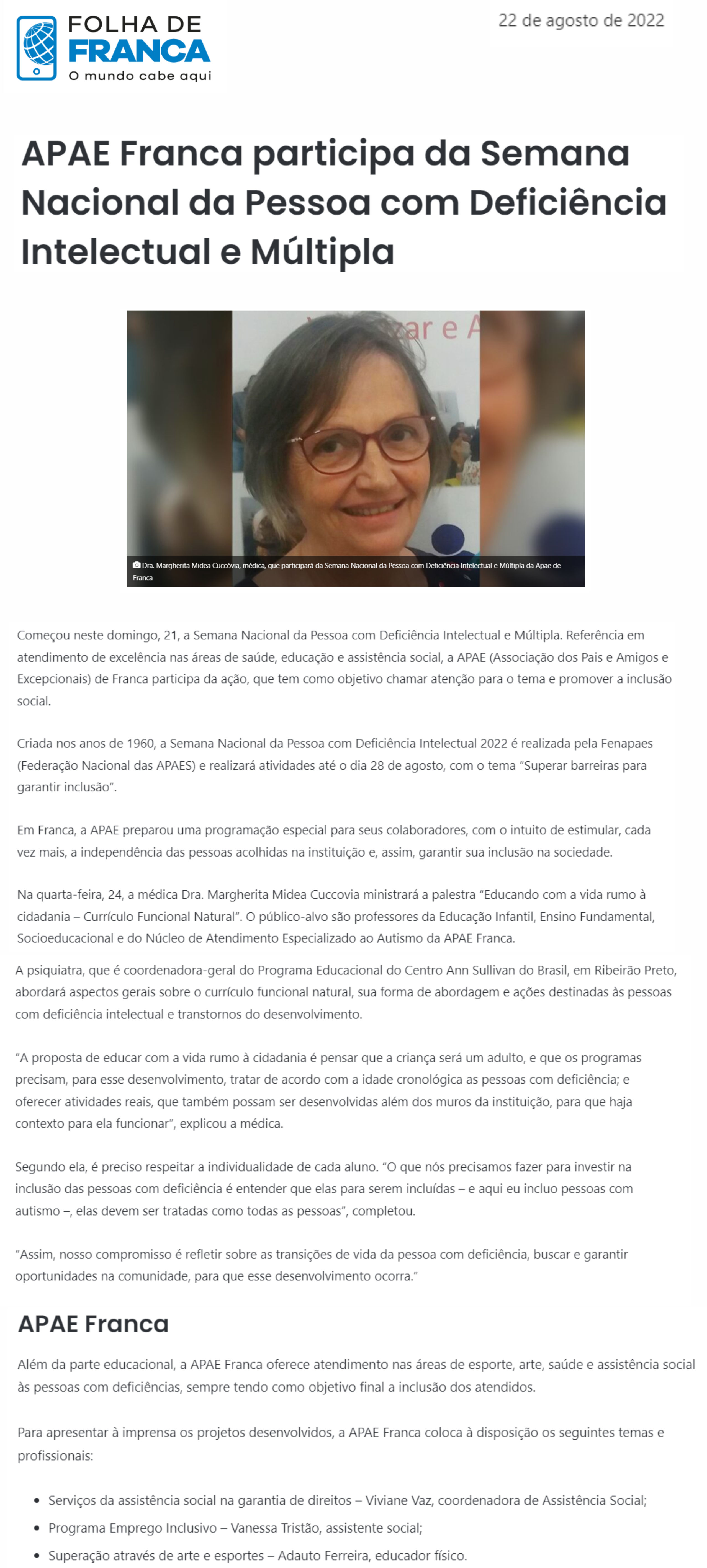 Publicações sobre a APAE-Franca nos veículos de comunicação de Franca e Região.