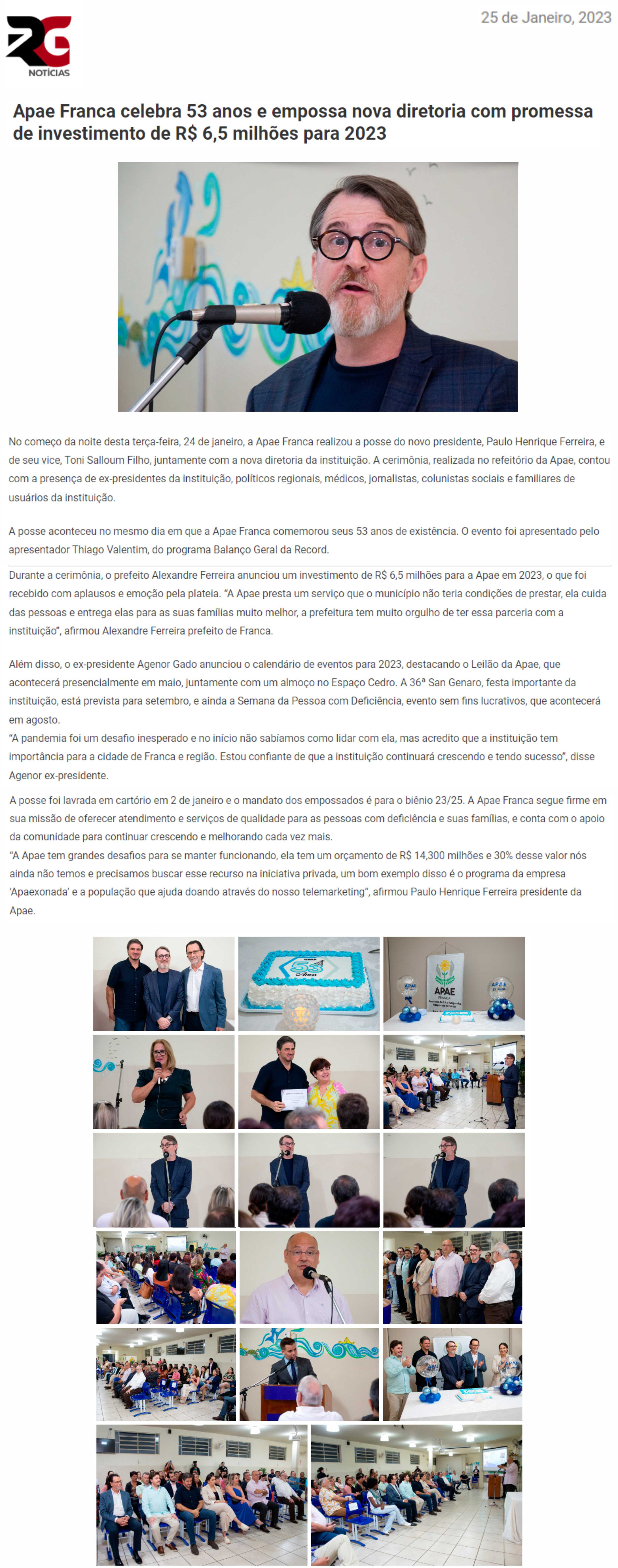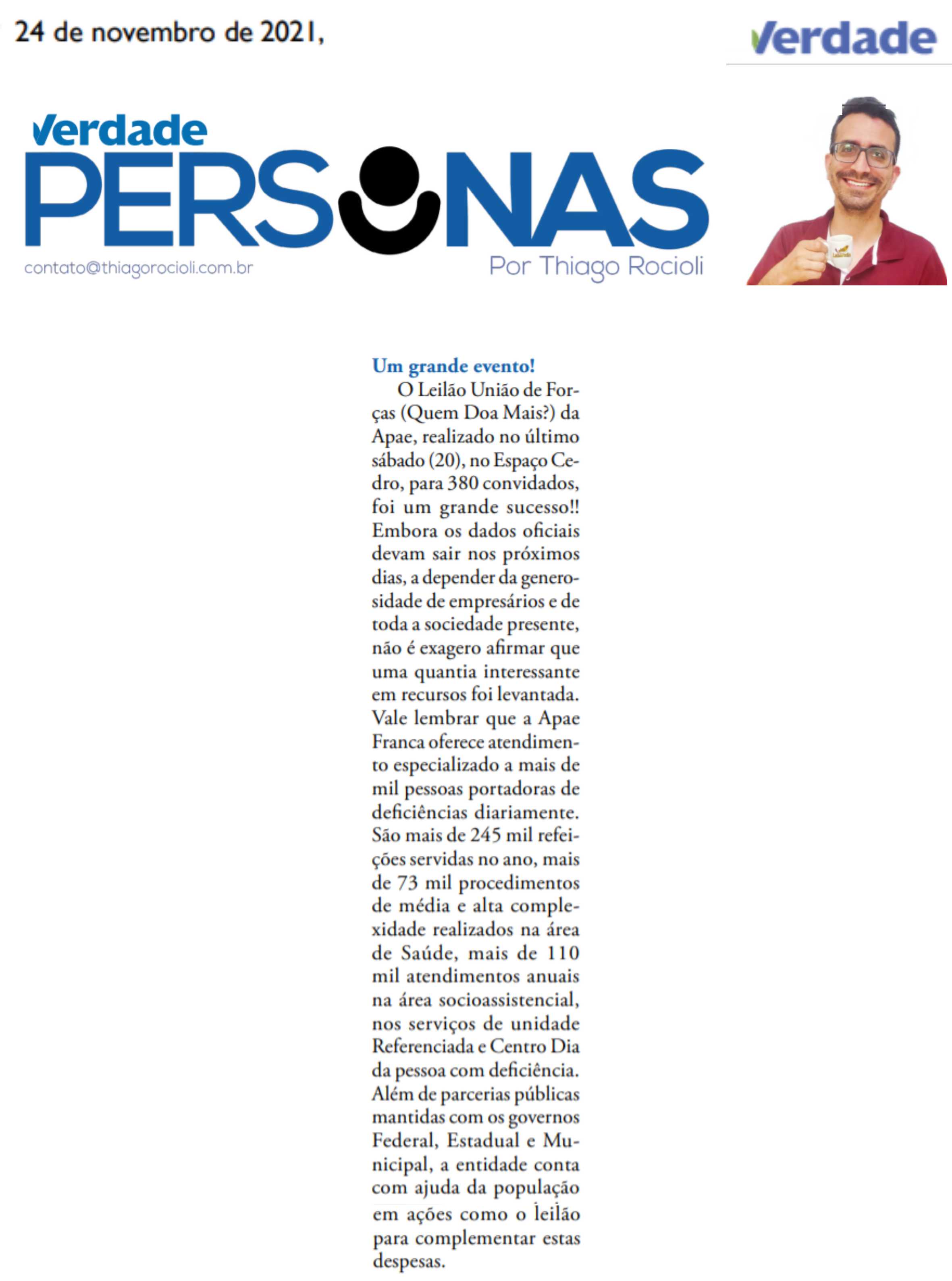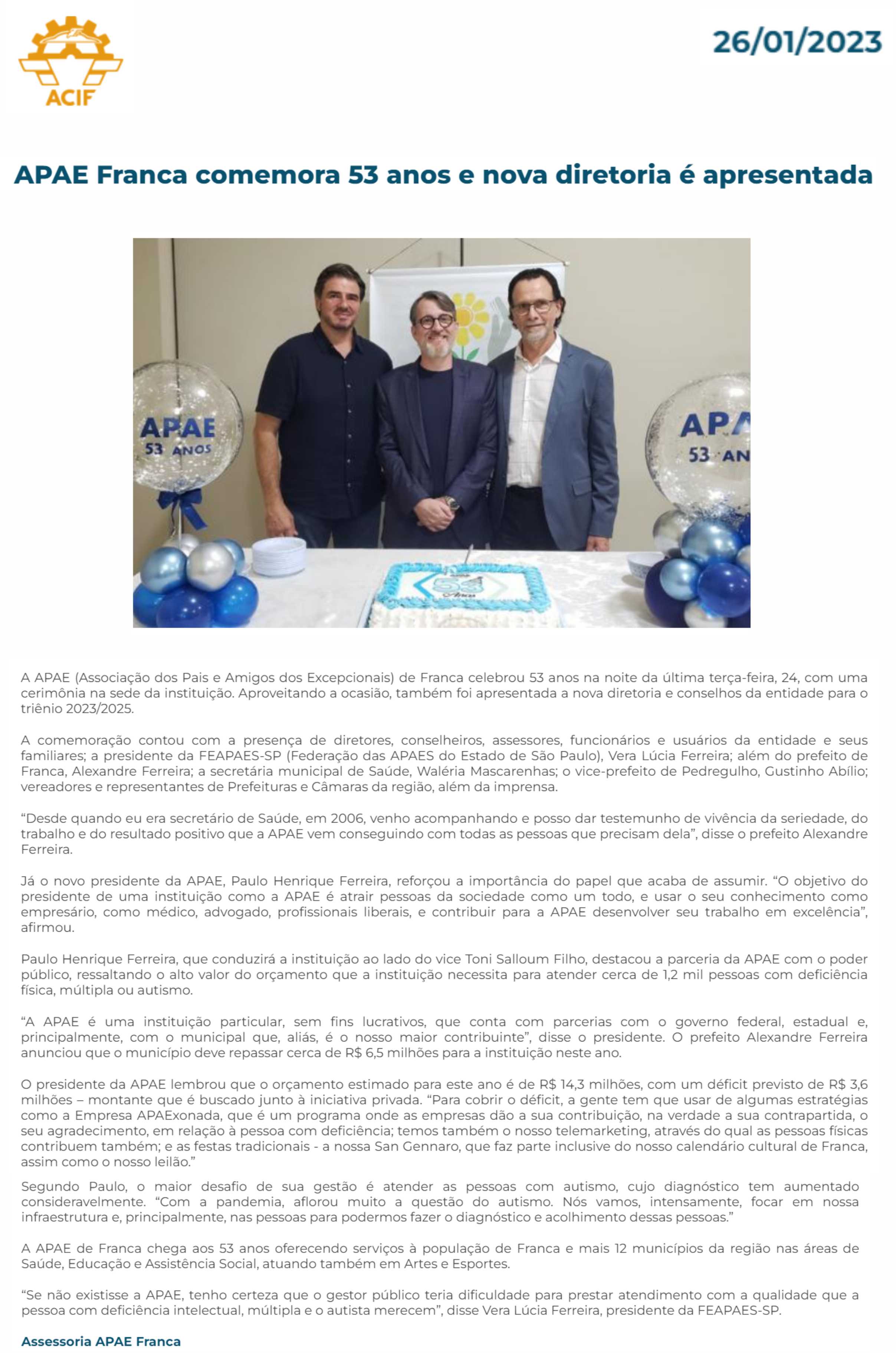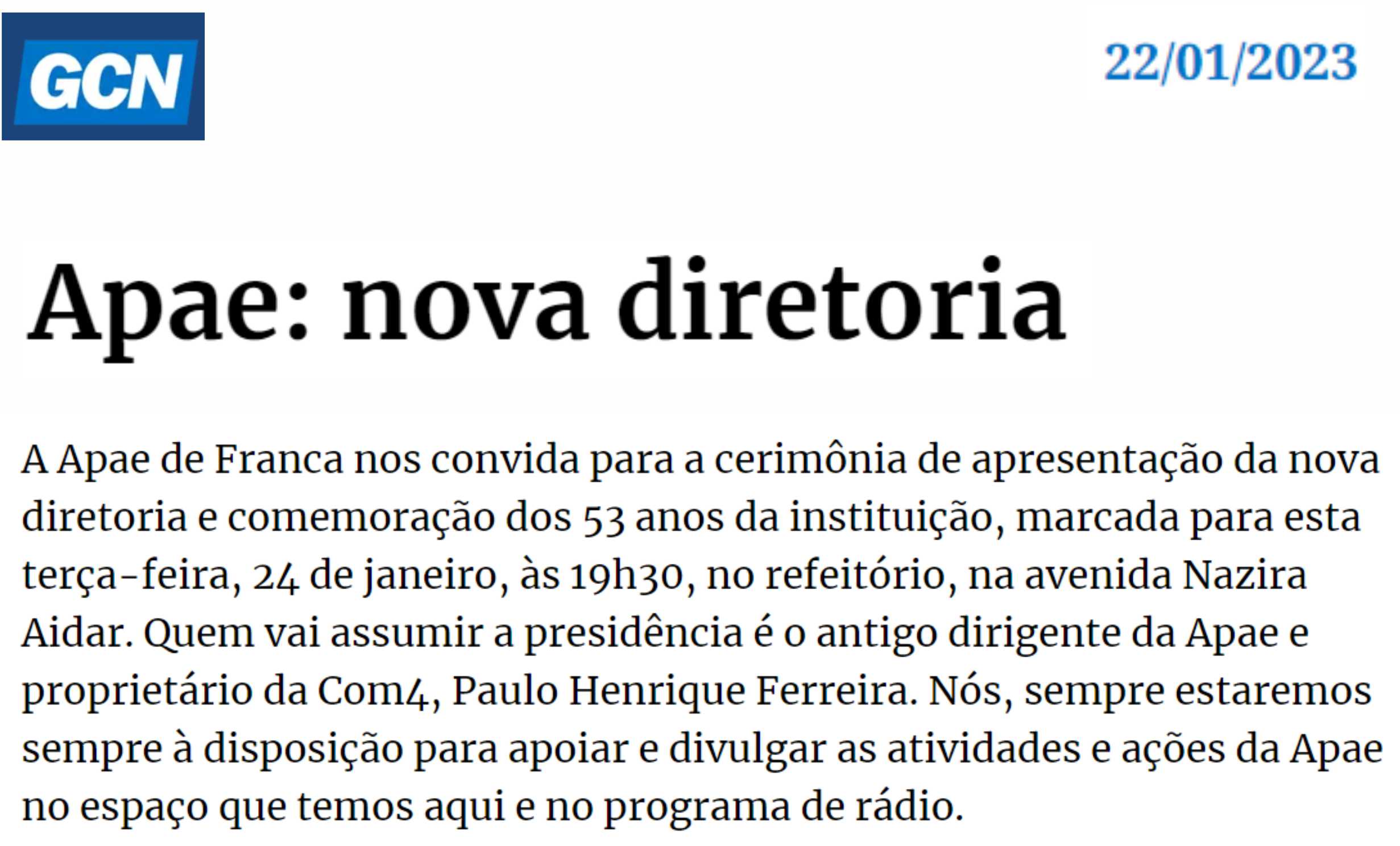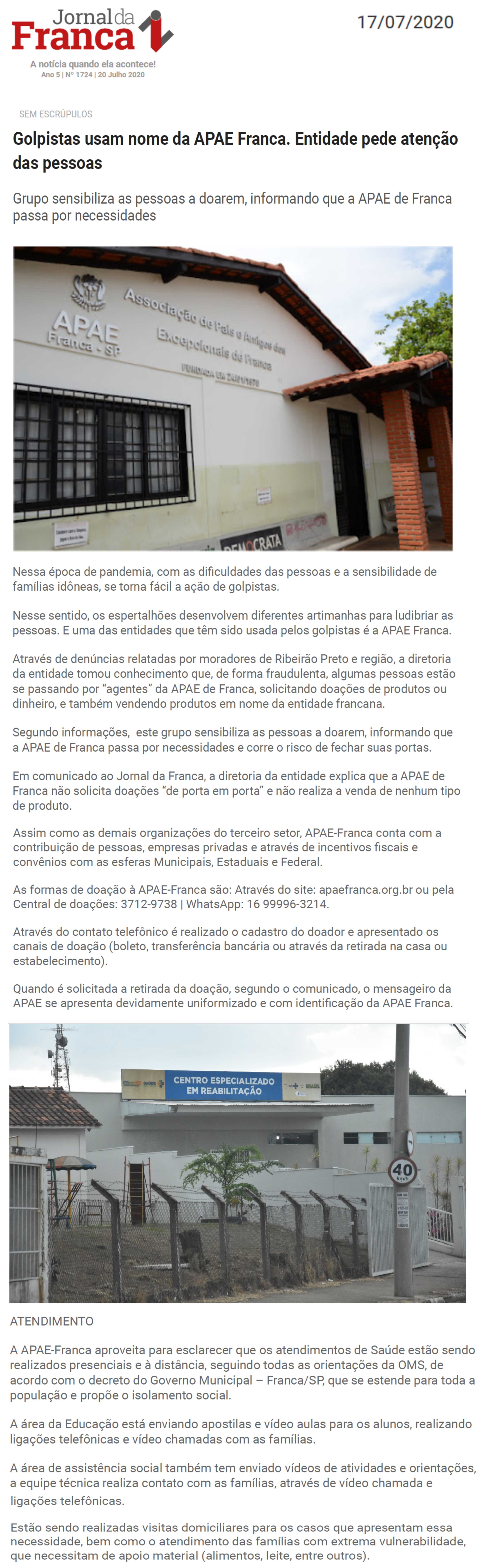 Publicações sobre a APAE-Franca nos veículos de comunicação de Franca e Região.
