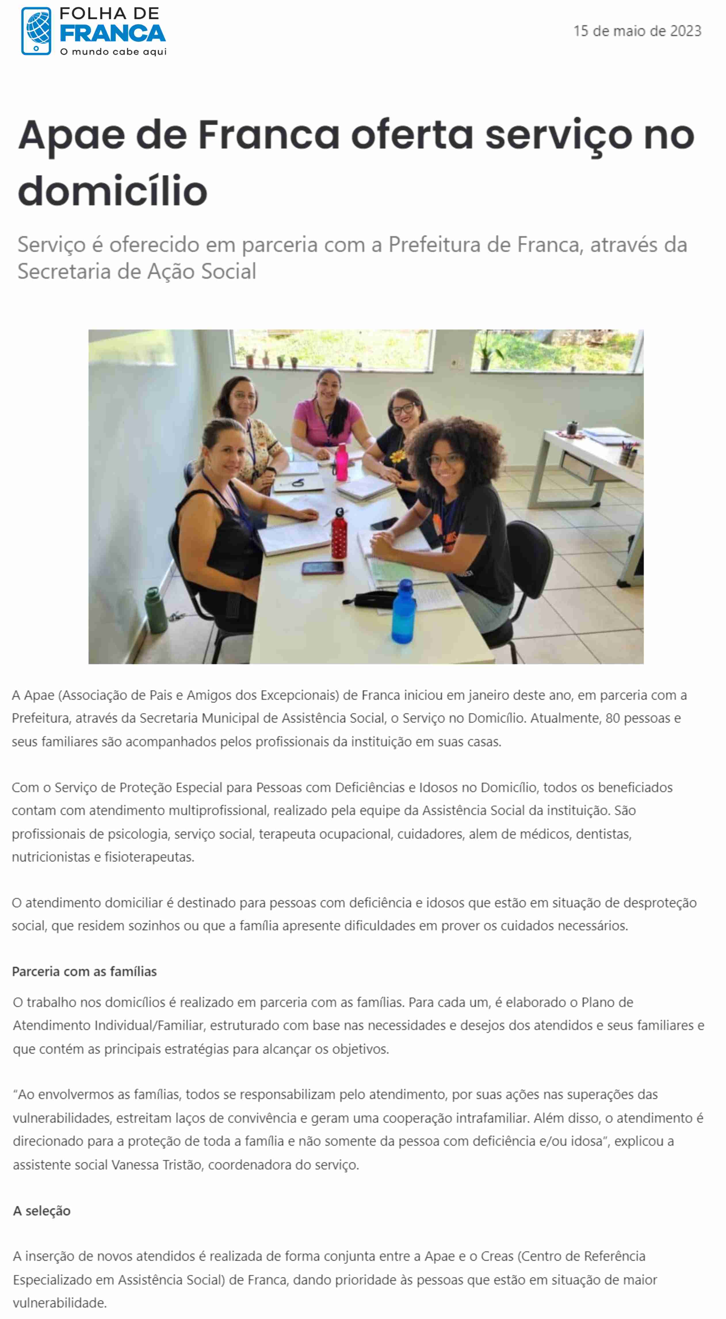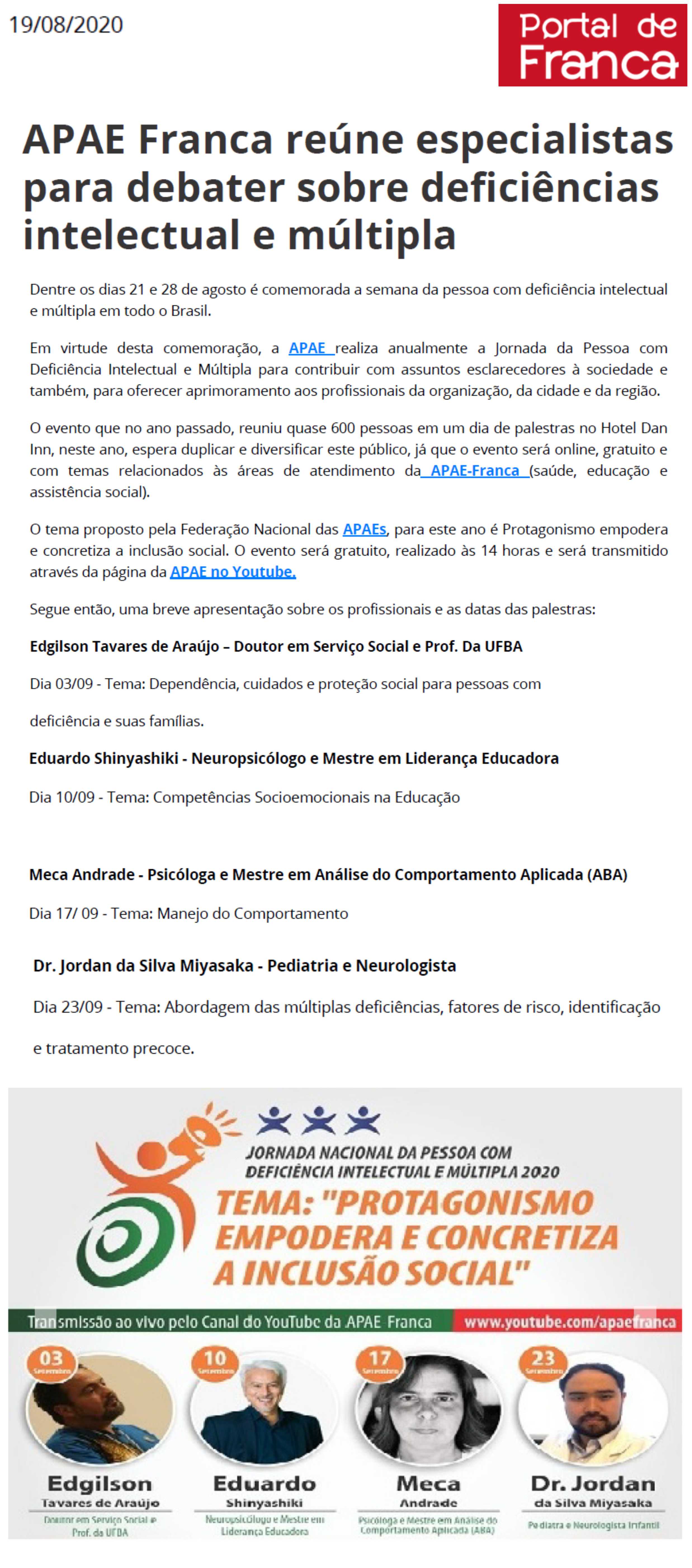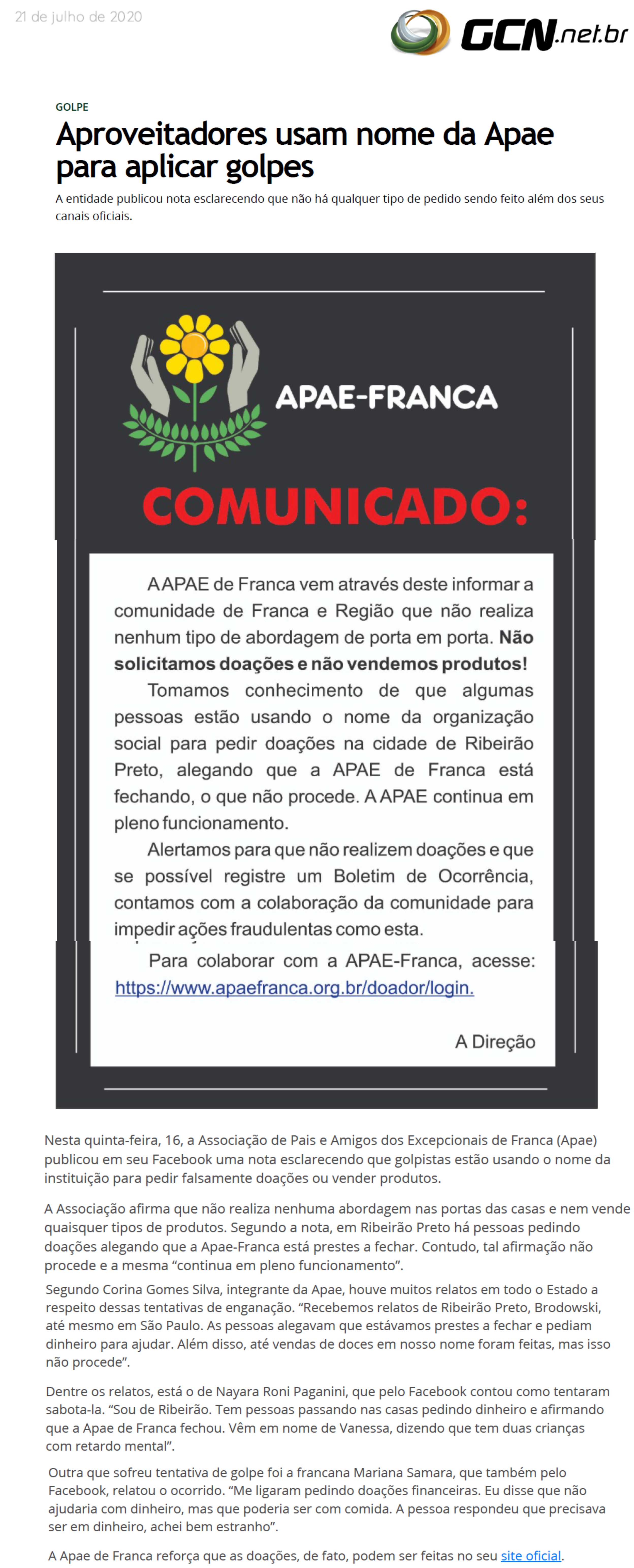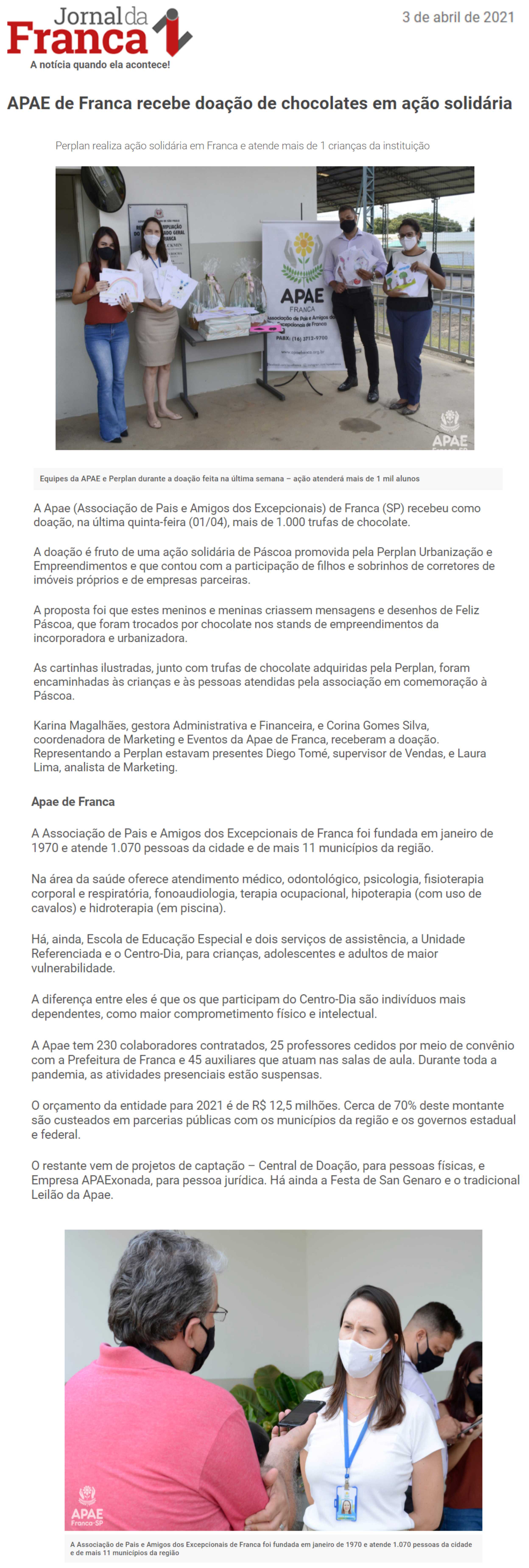Publicações sobre a APAE-Franca nos veículos de comunicação de Franca e Região.