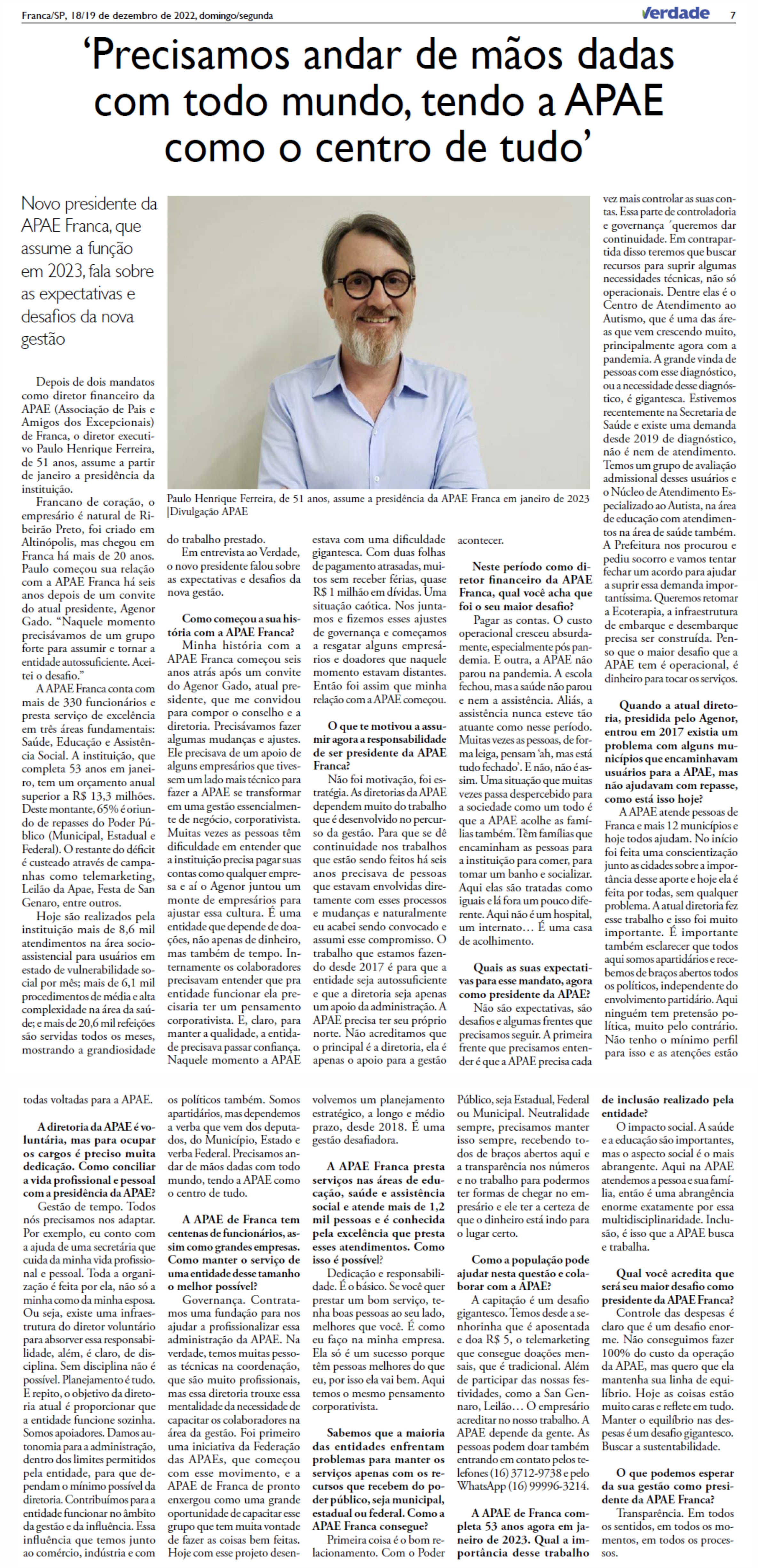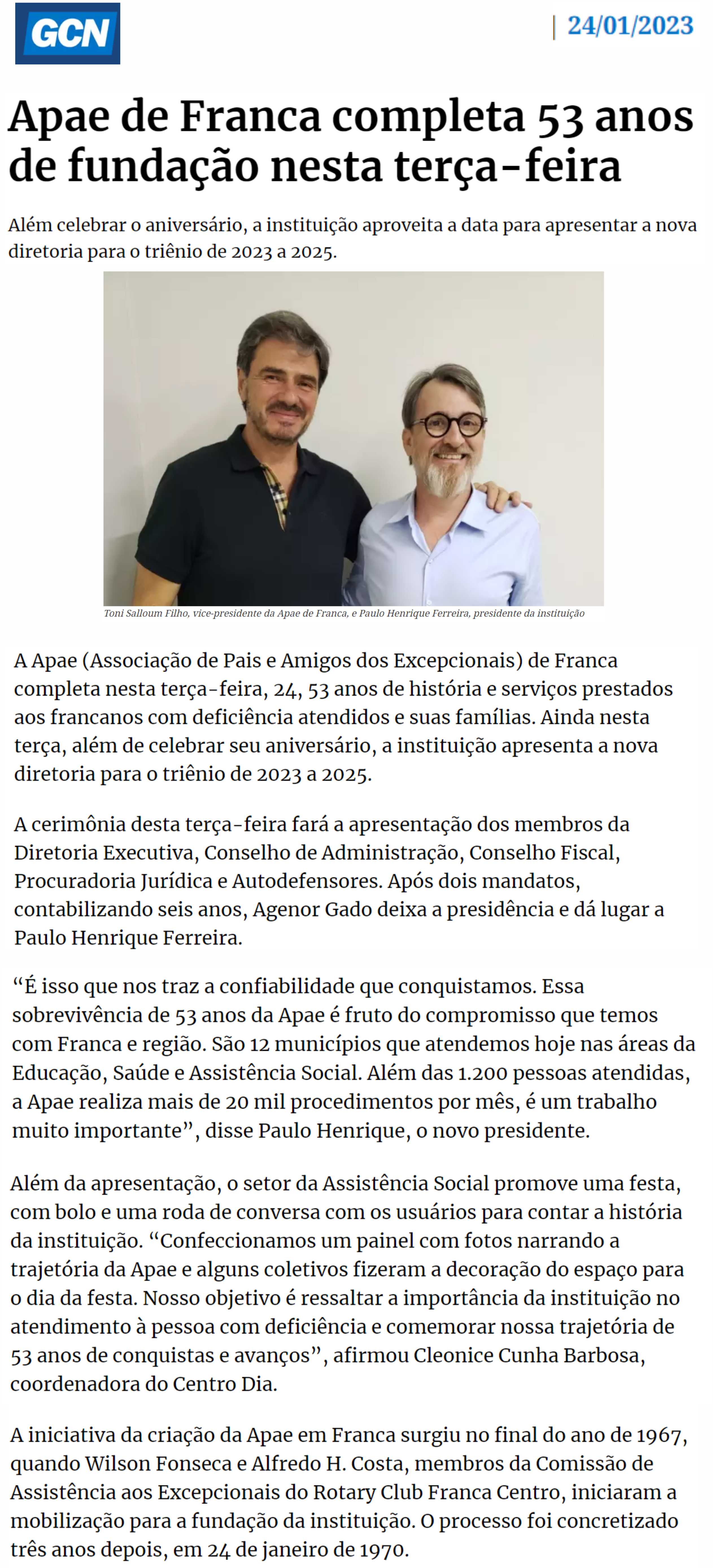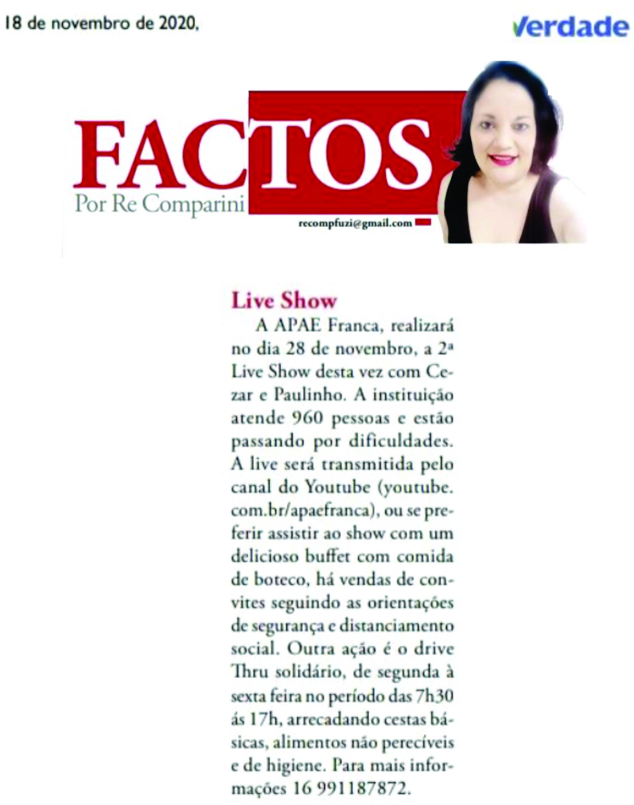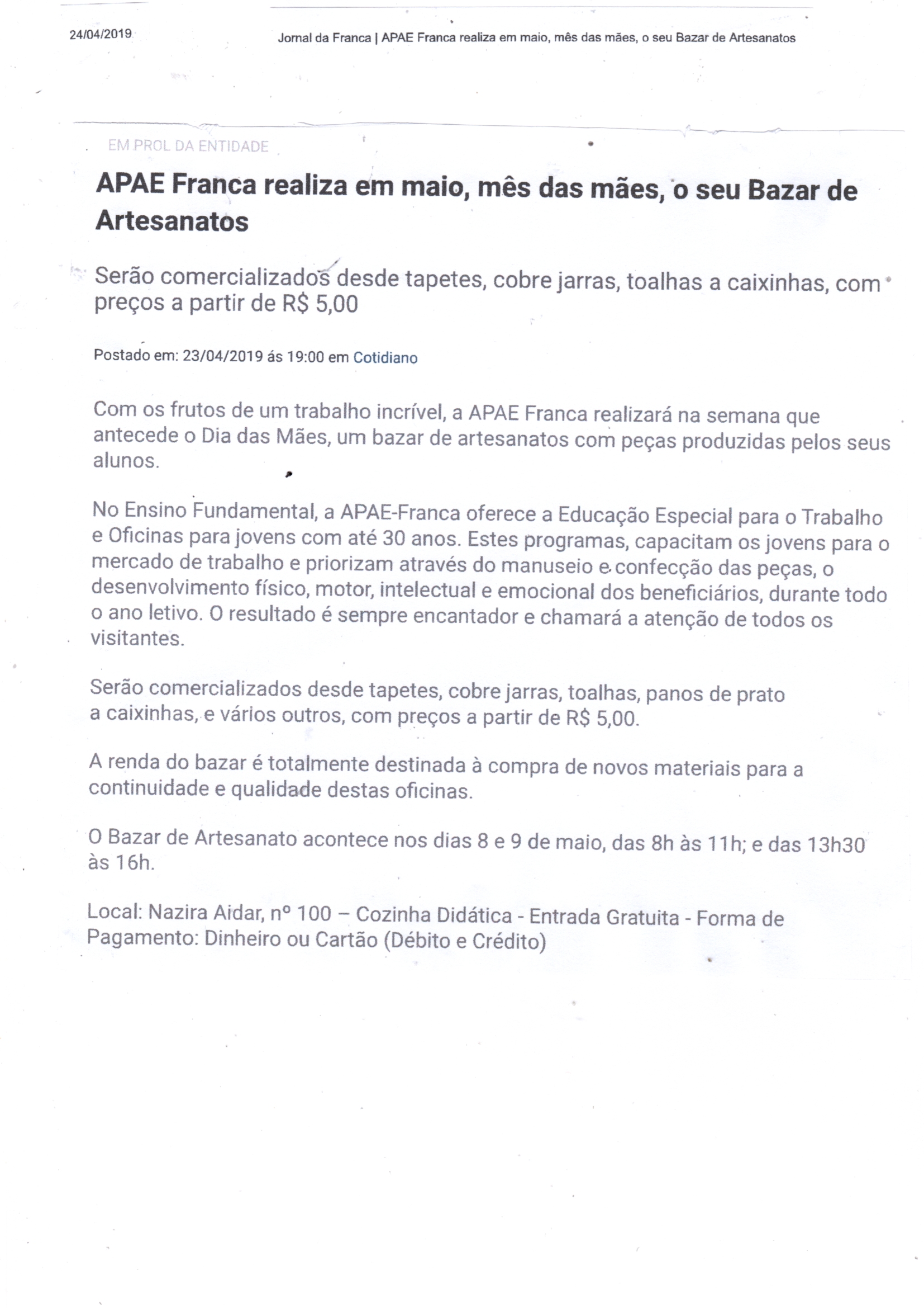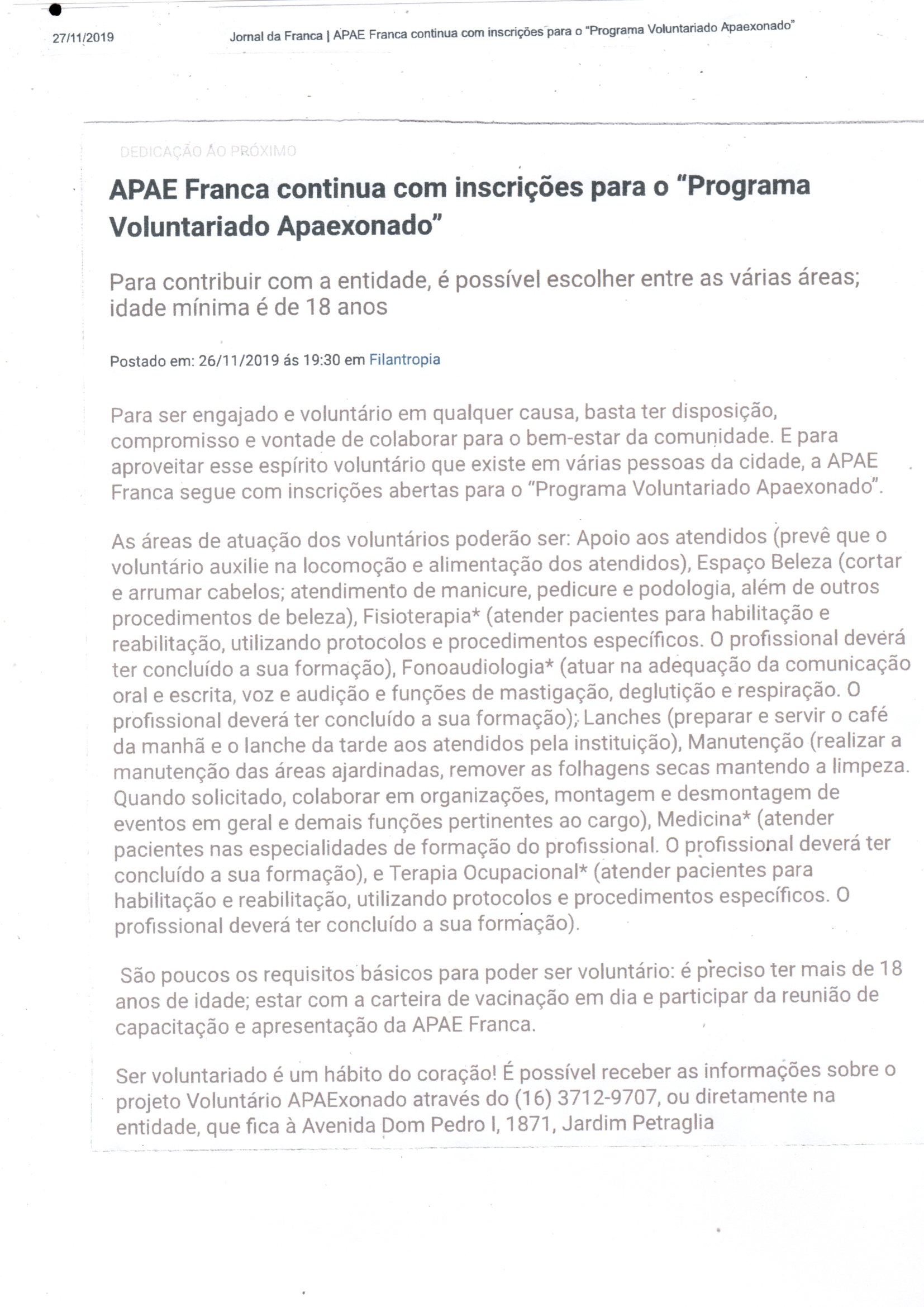 Publicações sobre a APAE-Franca nos veículos de comunicação de Franca e Região.