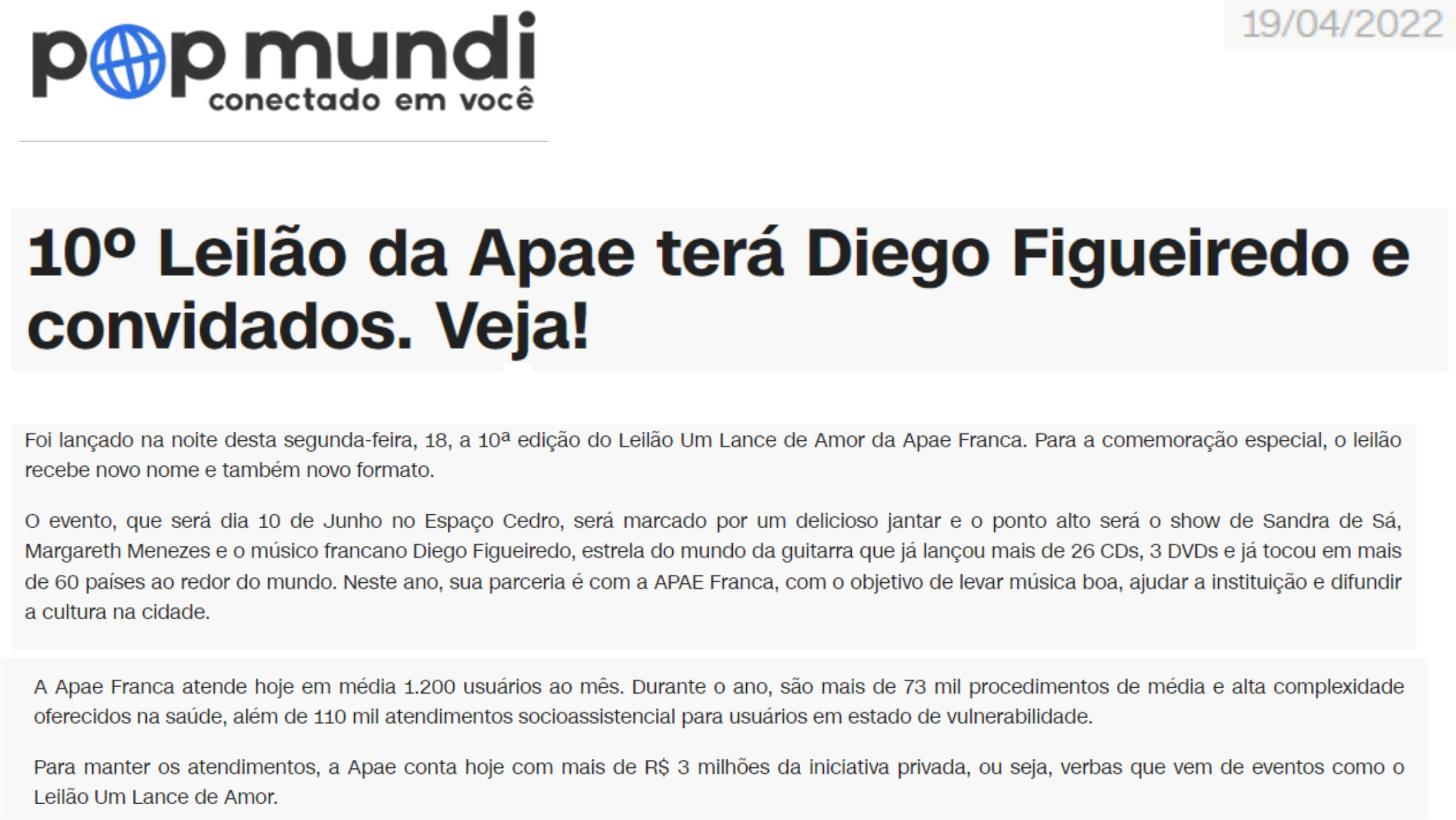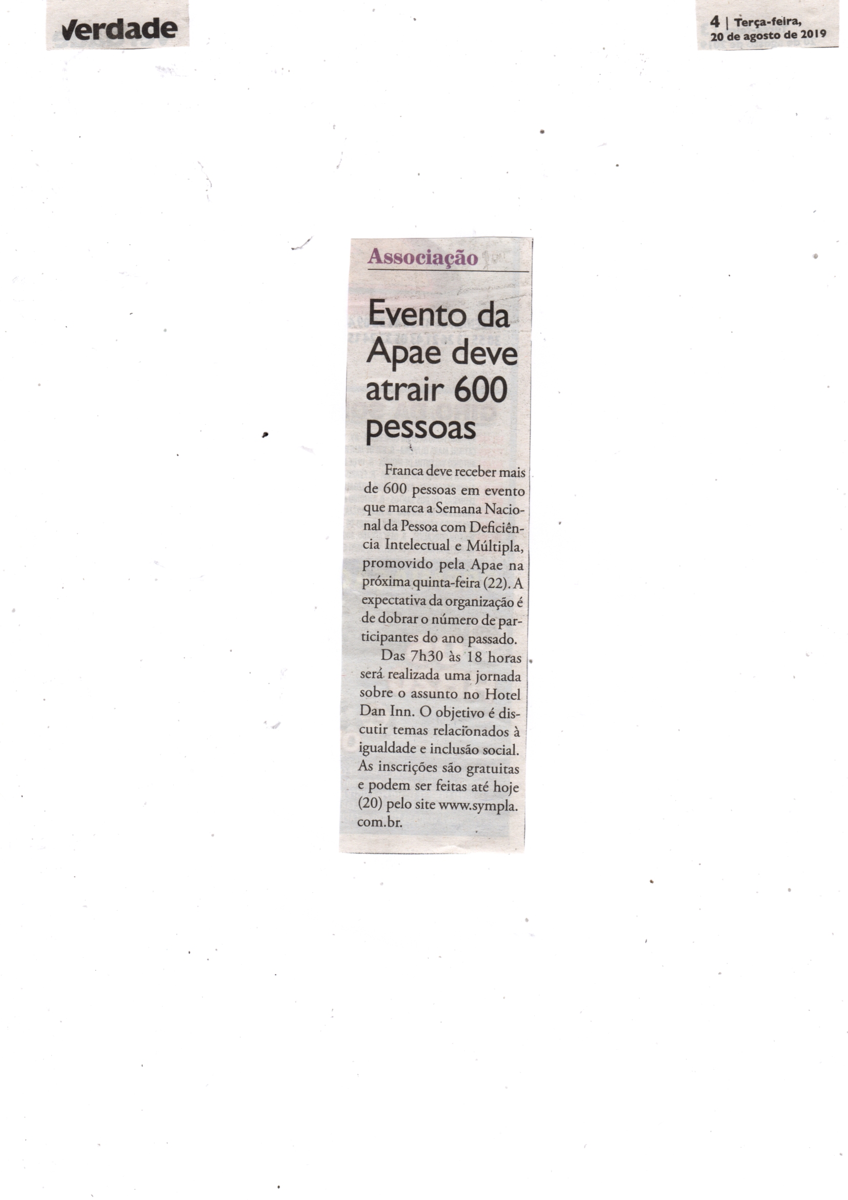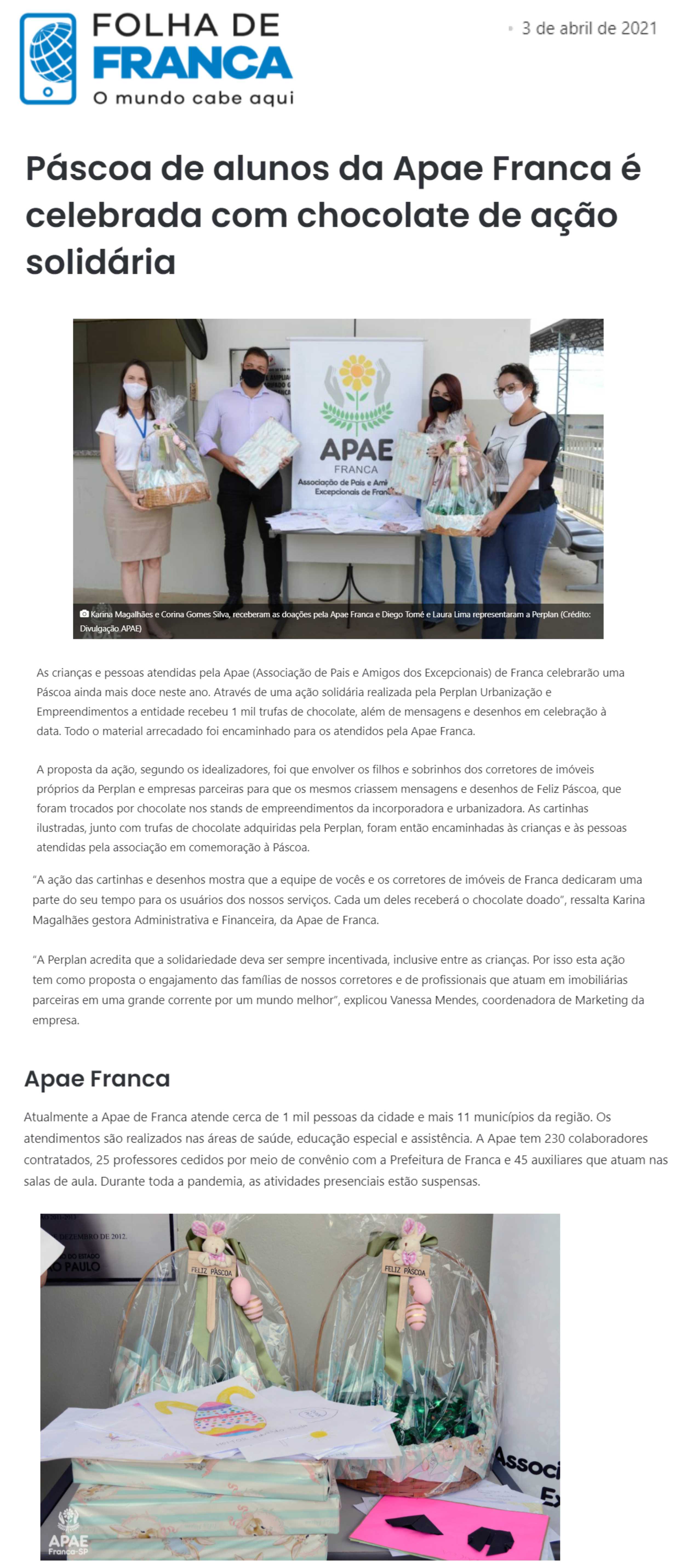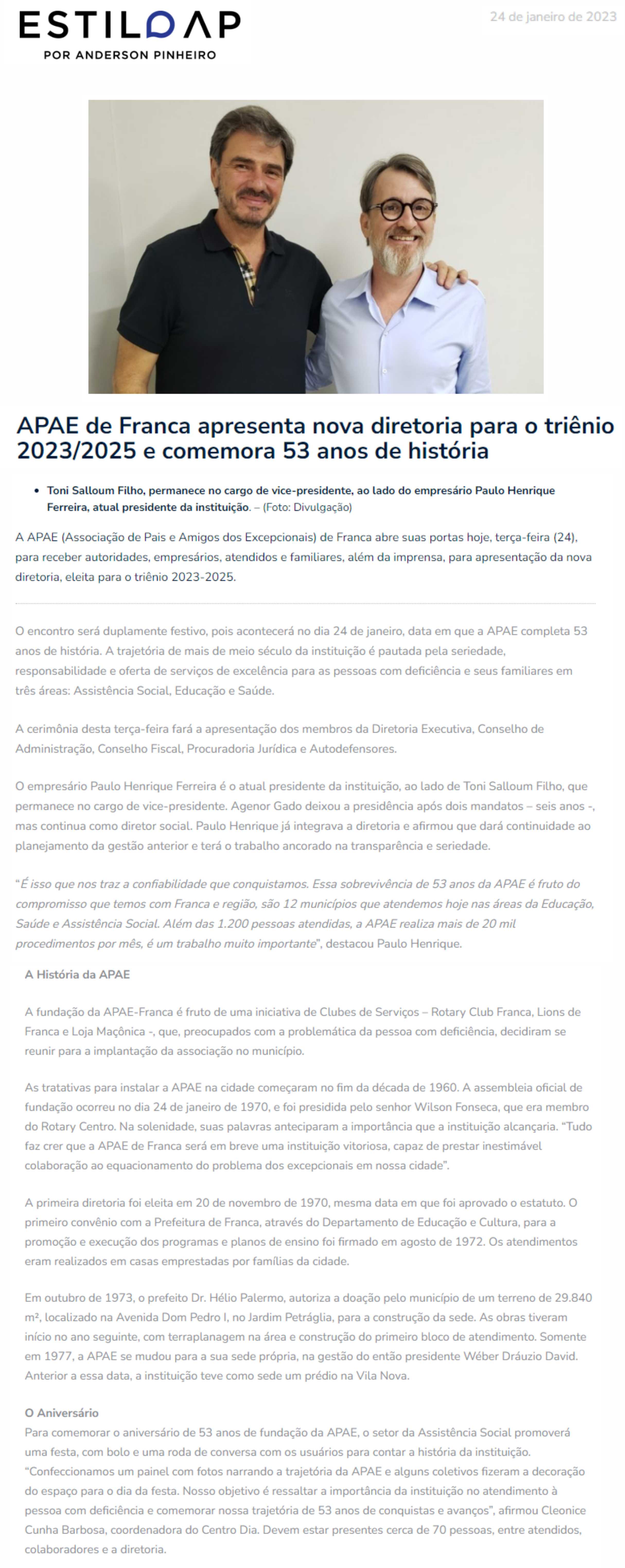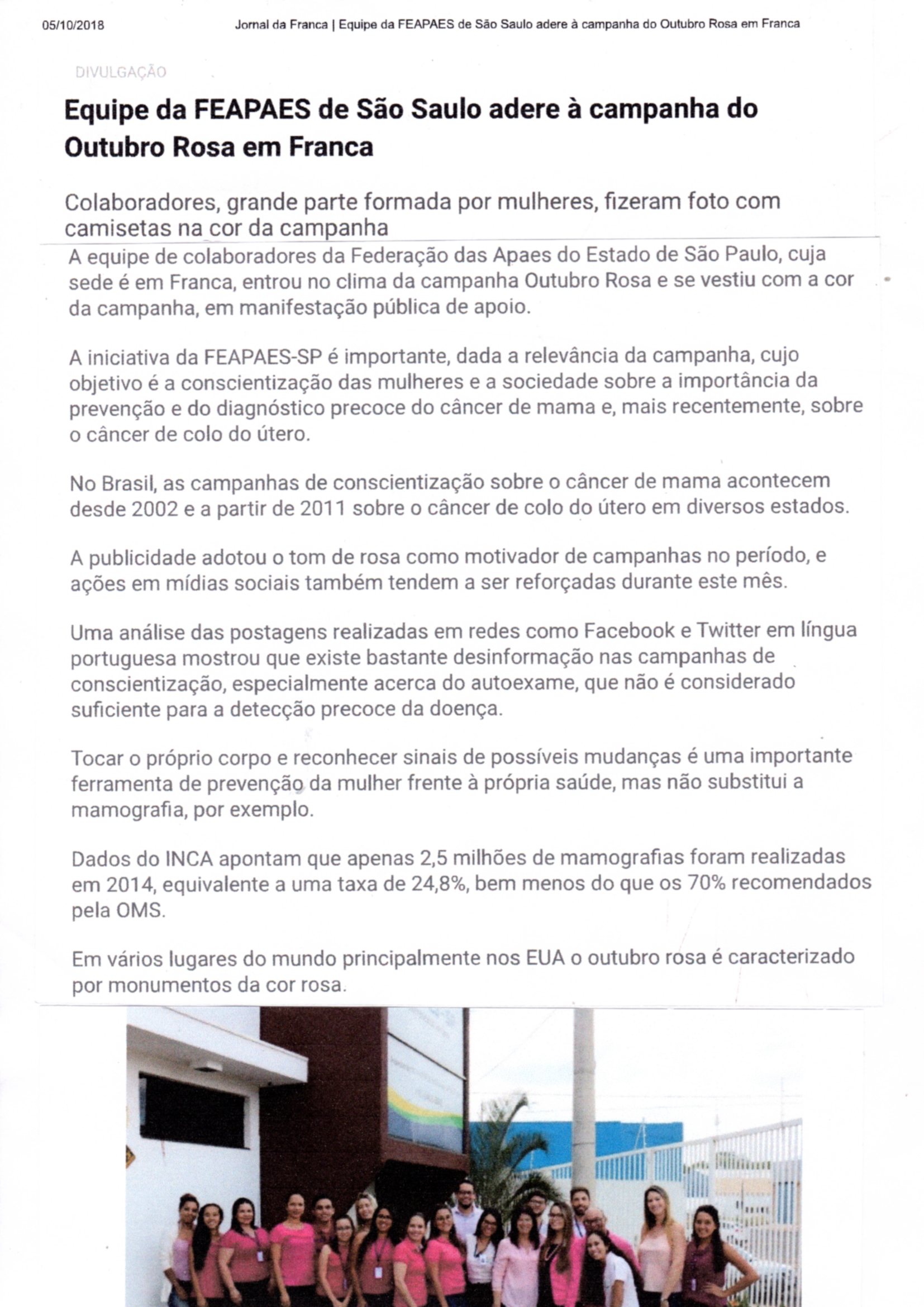 Publicações sobre a APAE-Franca nos veículos de comunicação de Franca e Região.