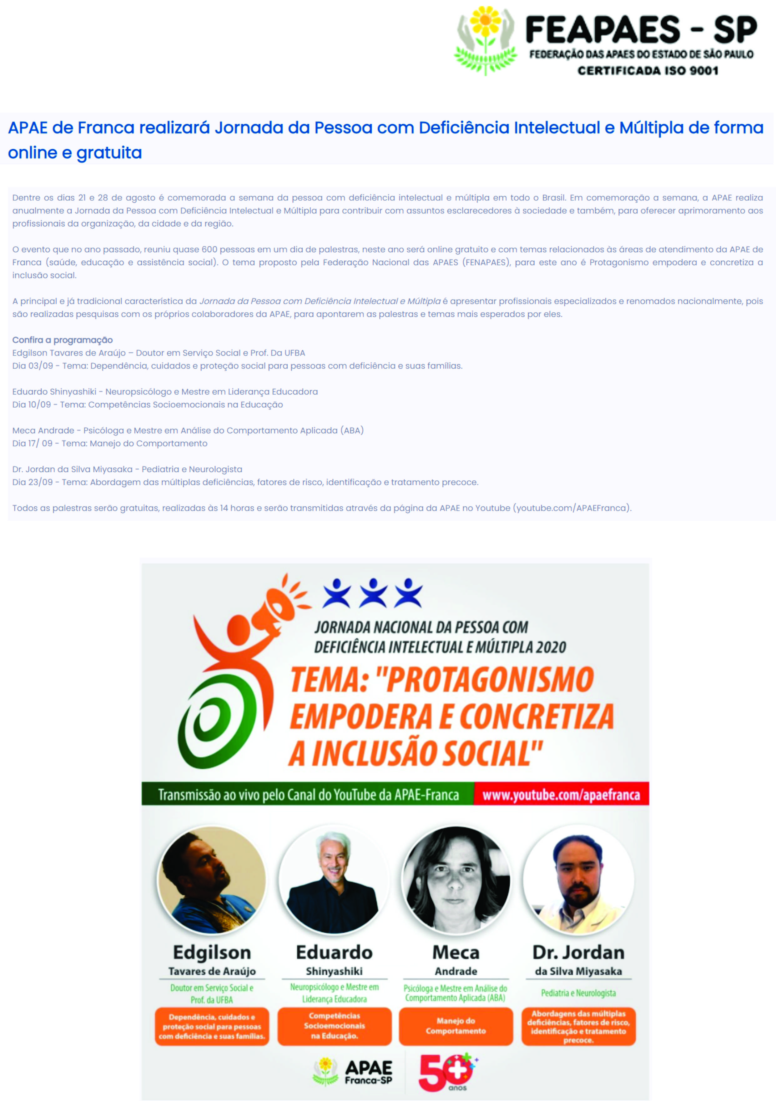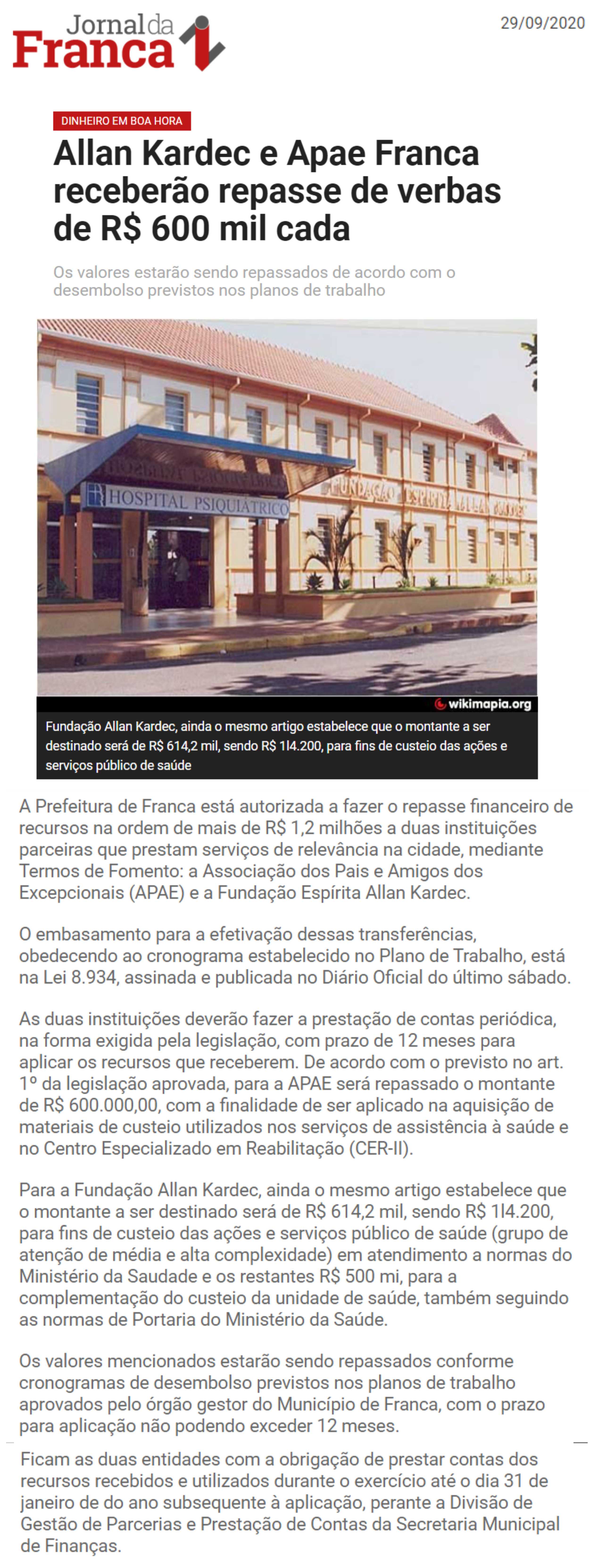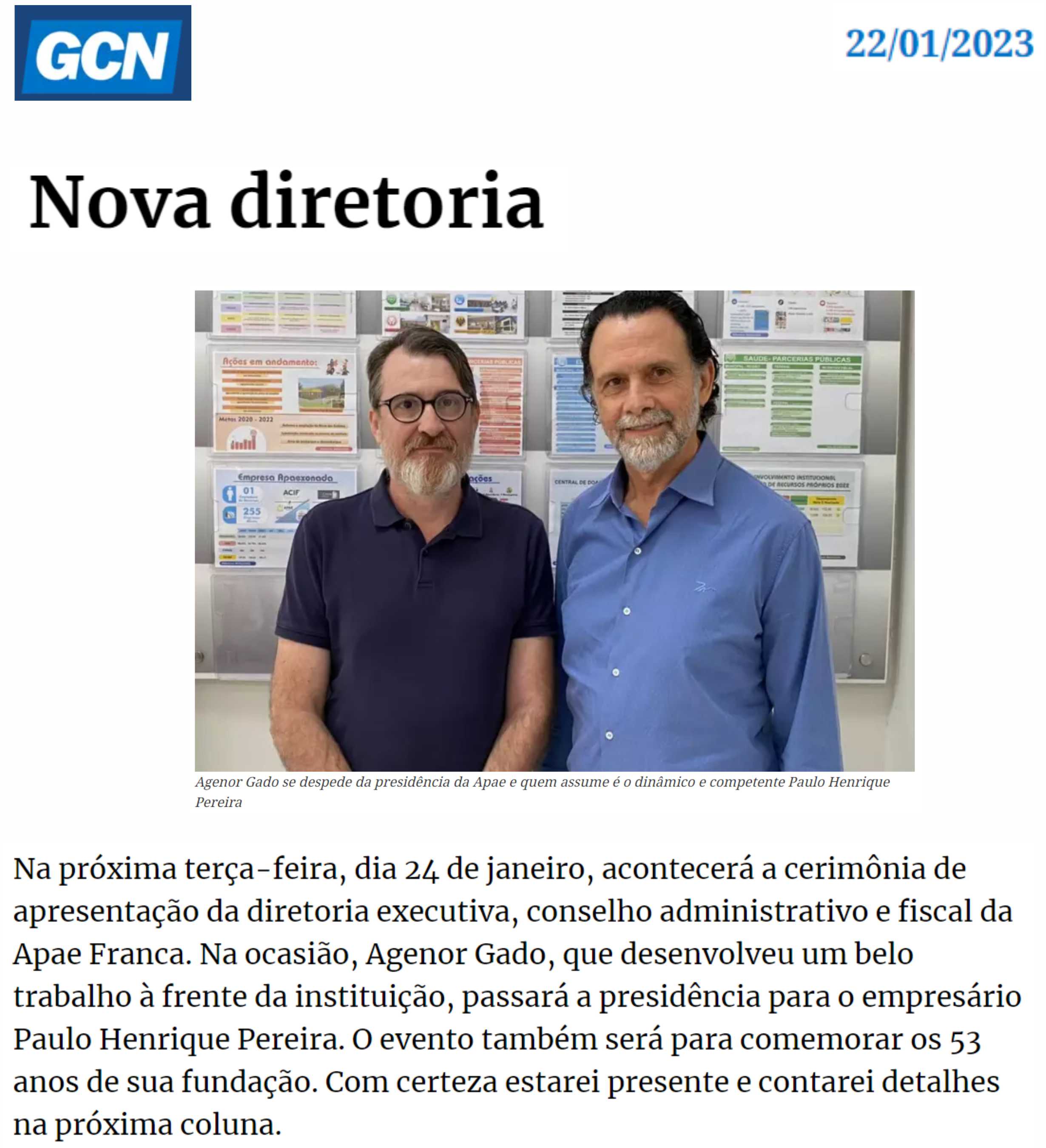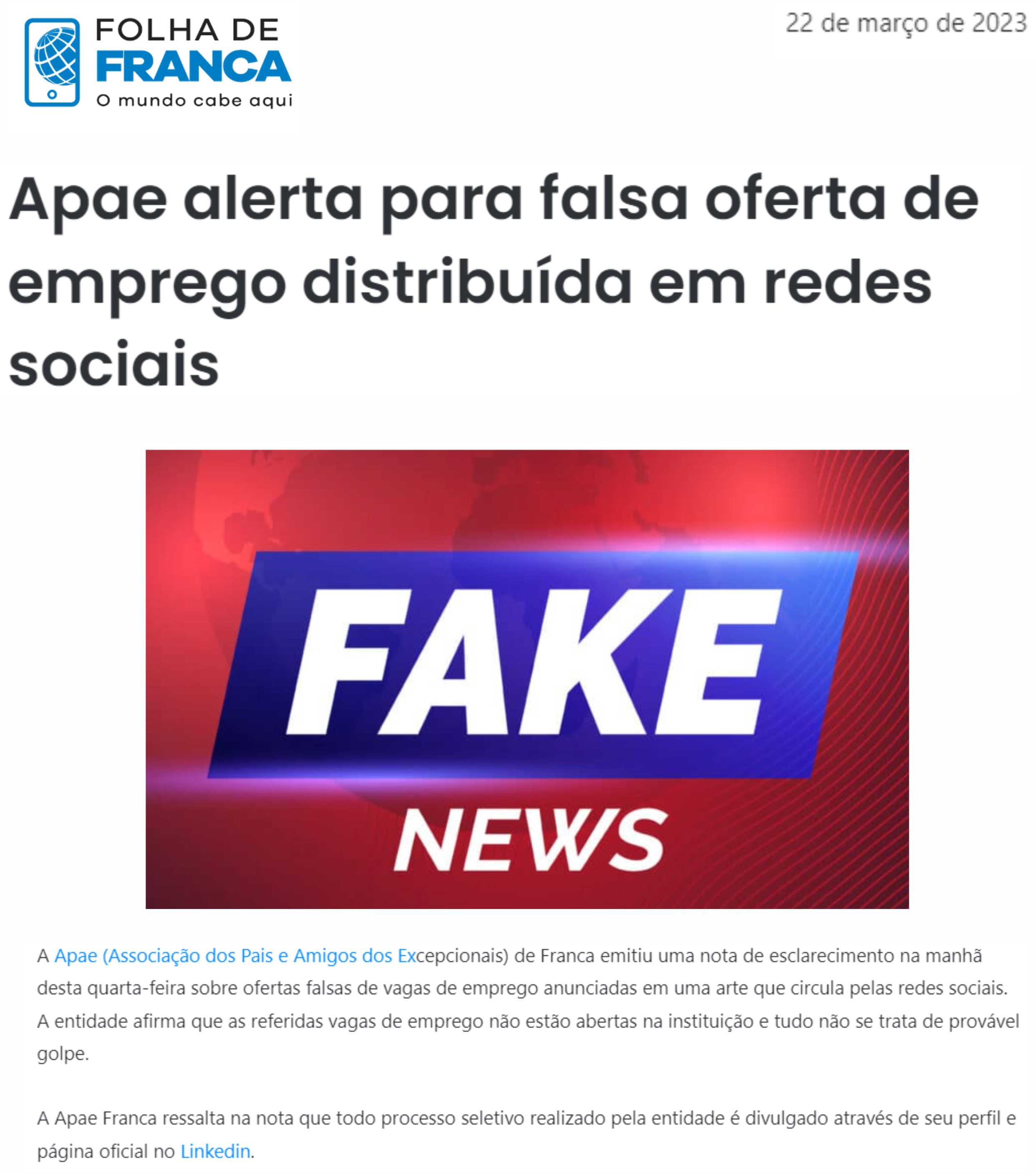 Publicações sobre a APAE-Franca nos veículos de comunicação de Franca e Região.