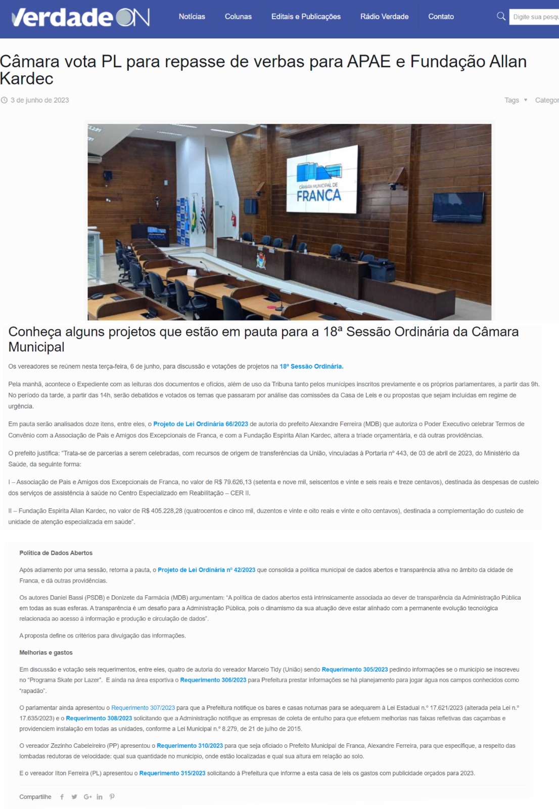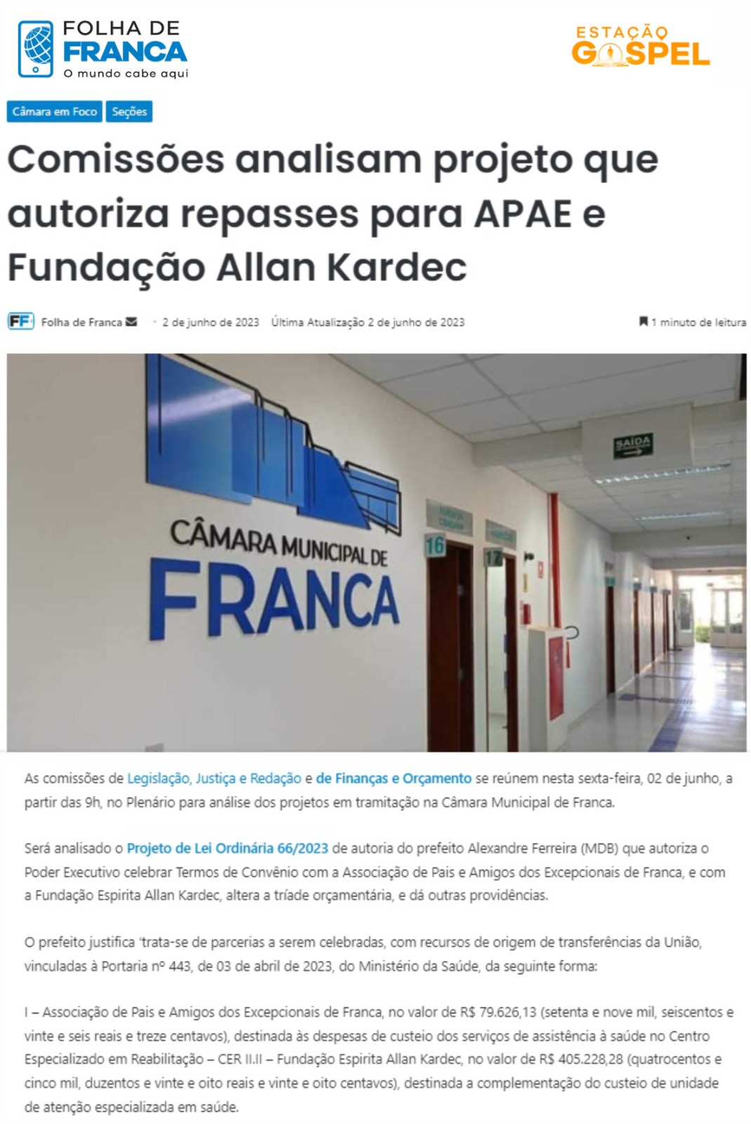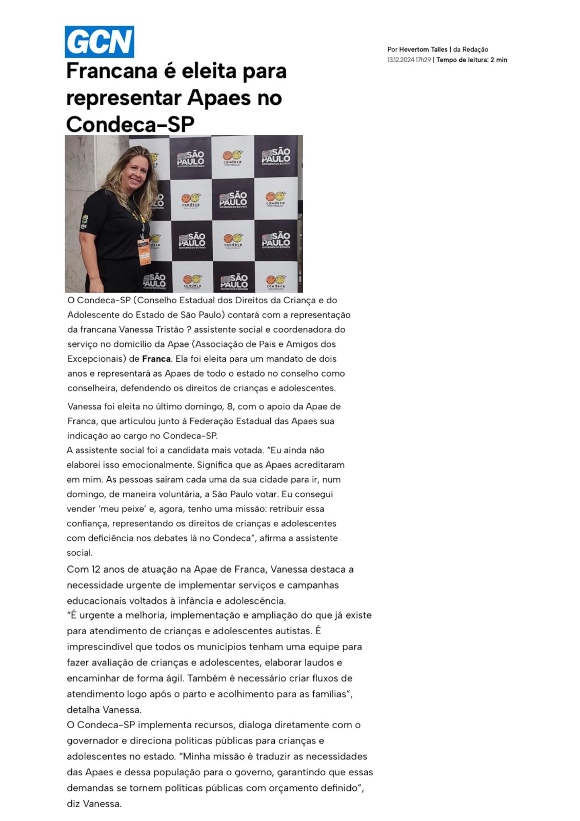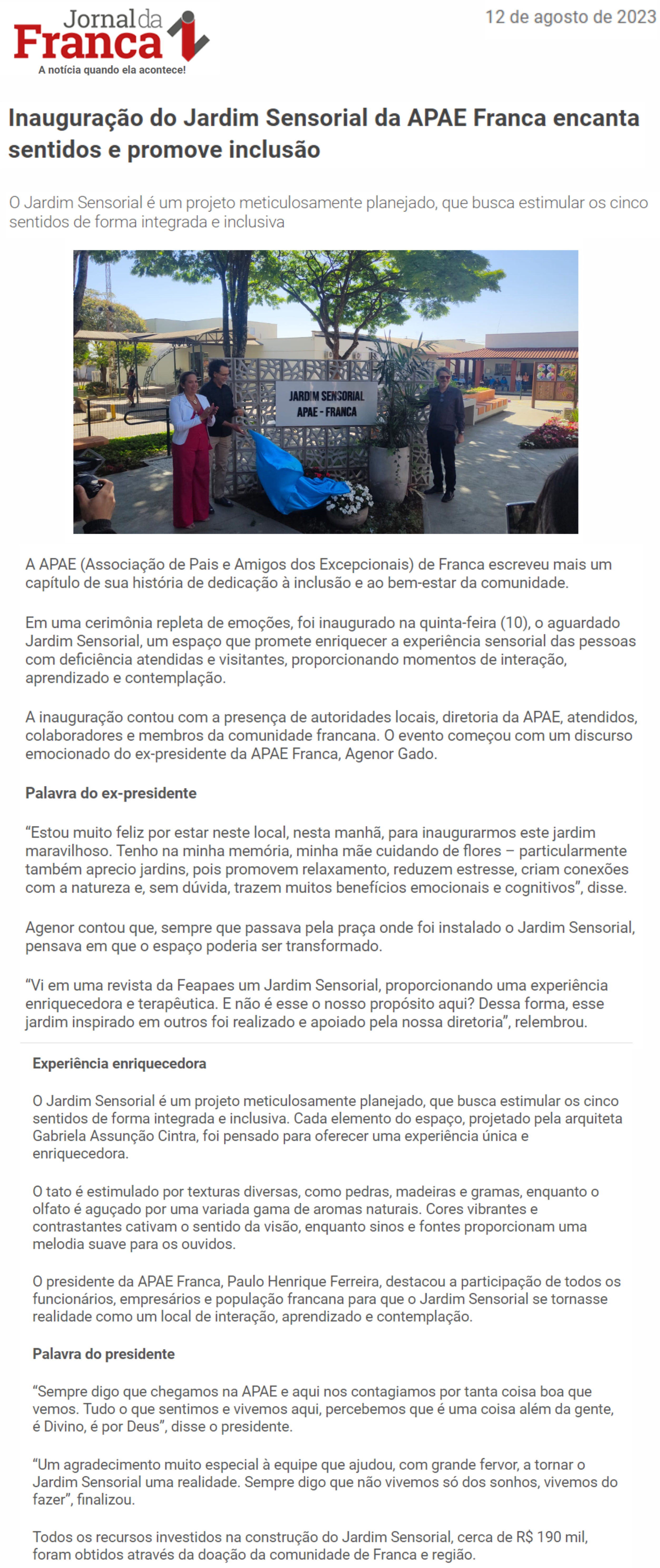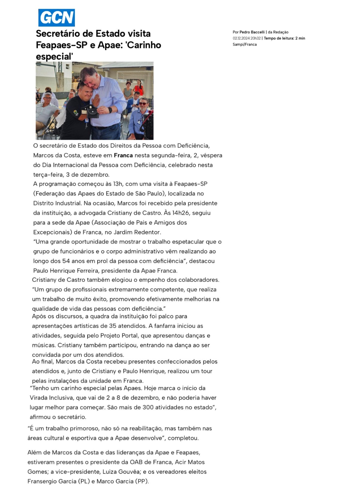 Publicações sobre a APAE-Franca nos veículos de comunicação de Franca e Região.