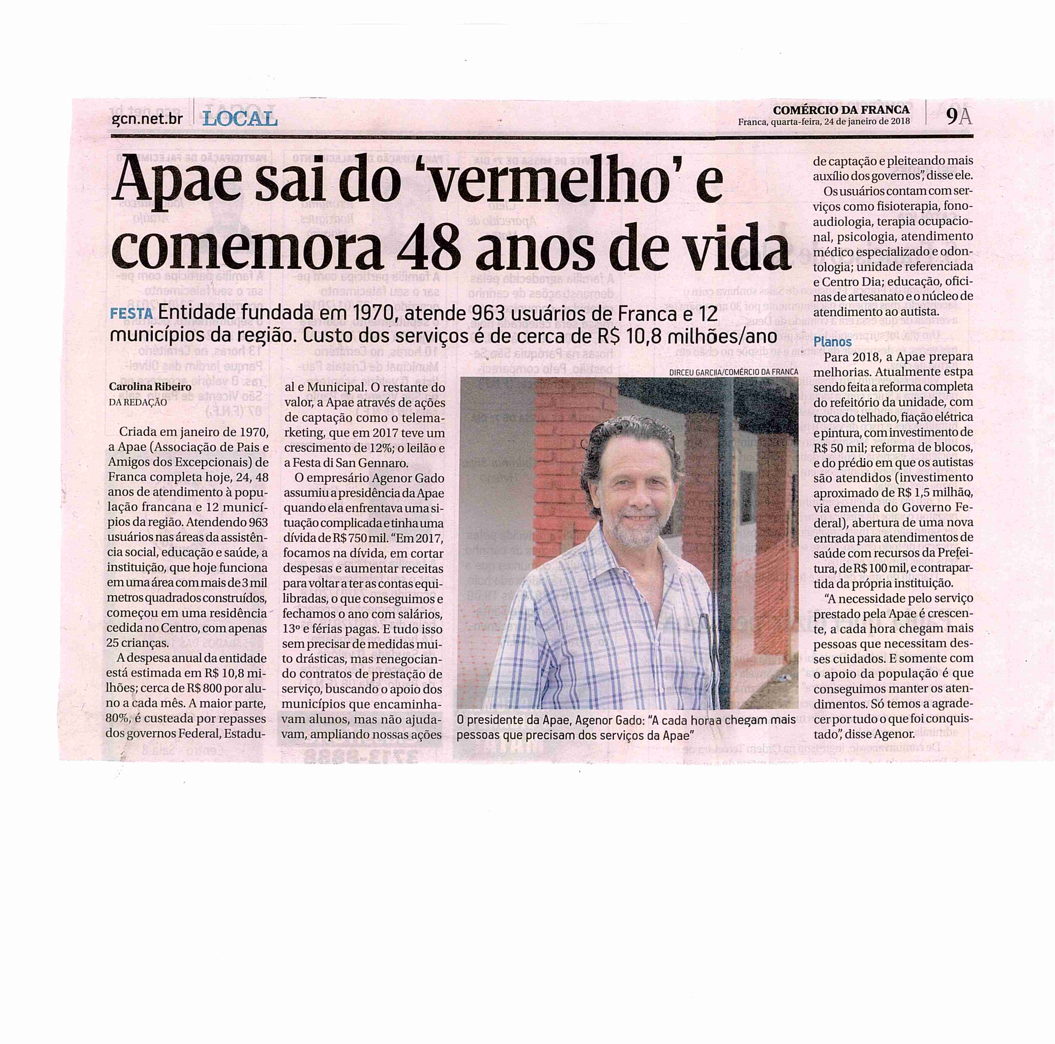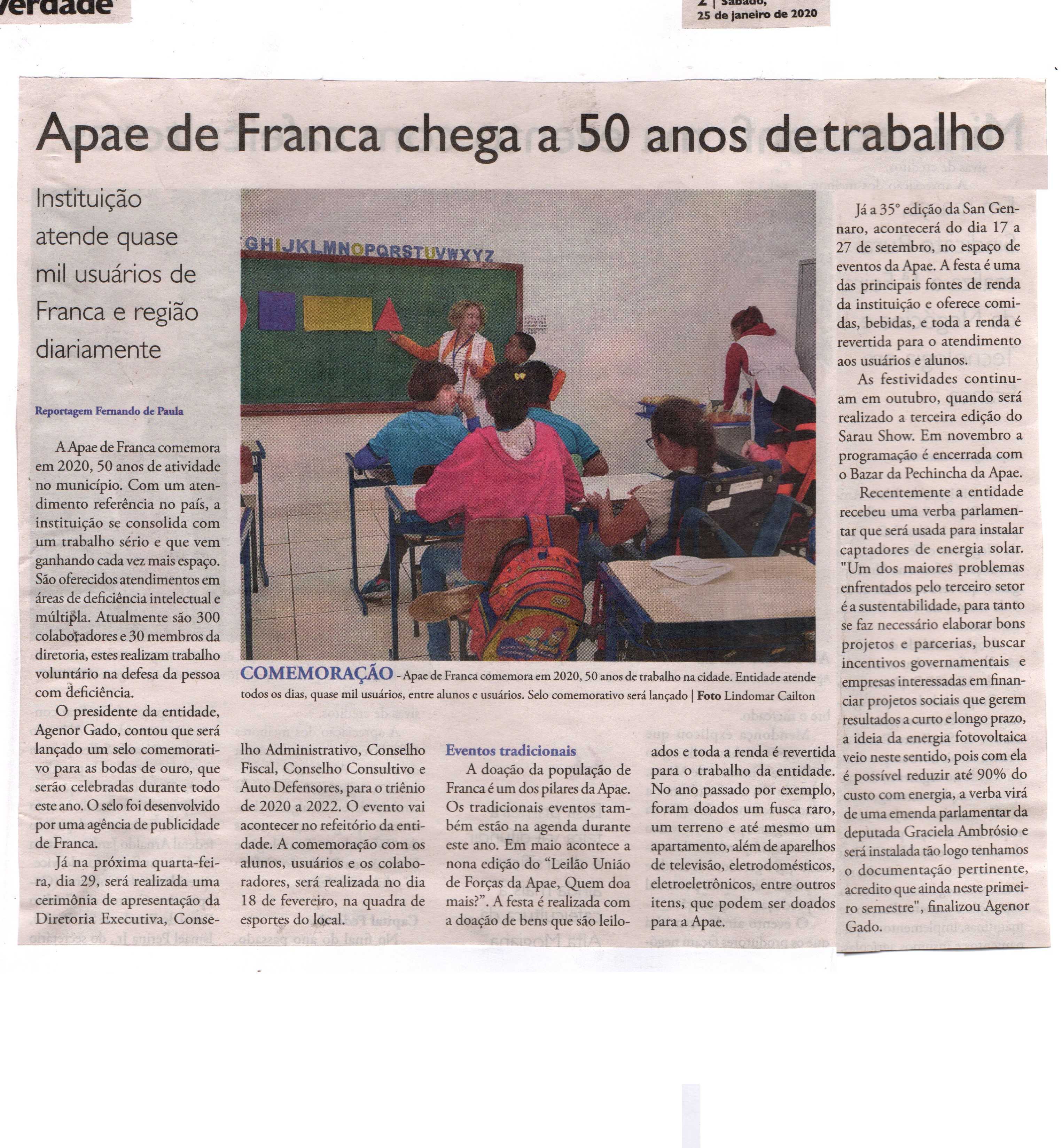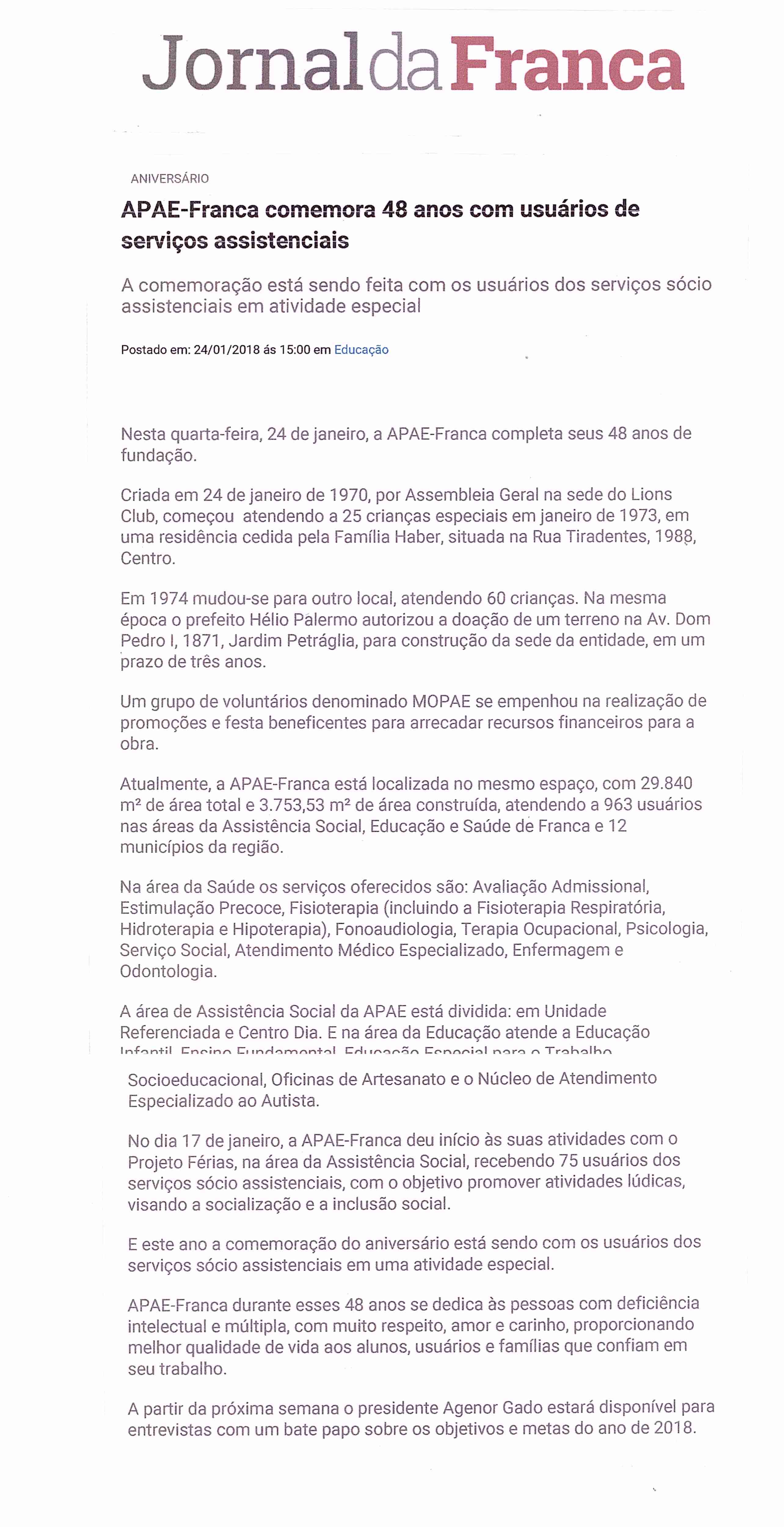 24-25/01/16 - COMÉRCIO DA FRANCA - Apae de Franca completa hoje 46 anos de fundação - 24-...