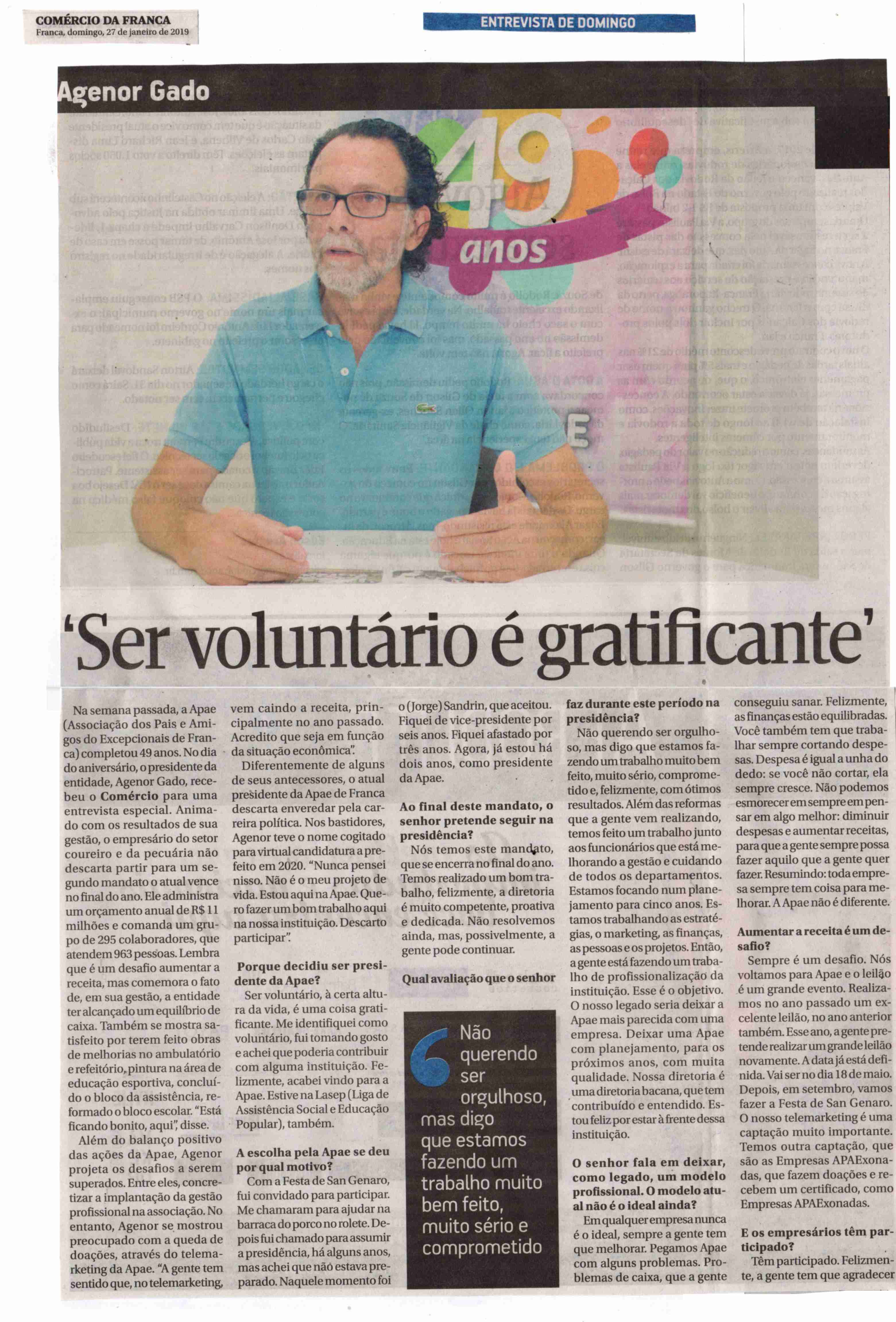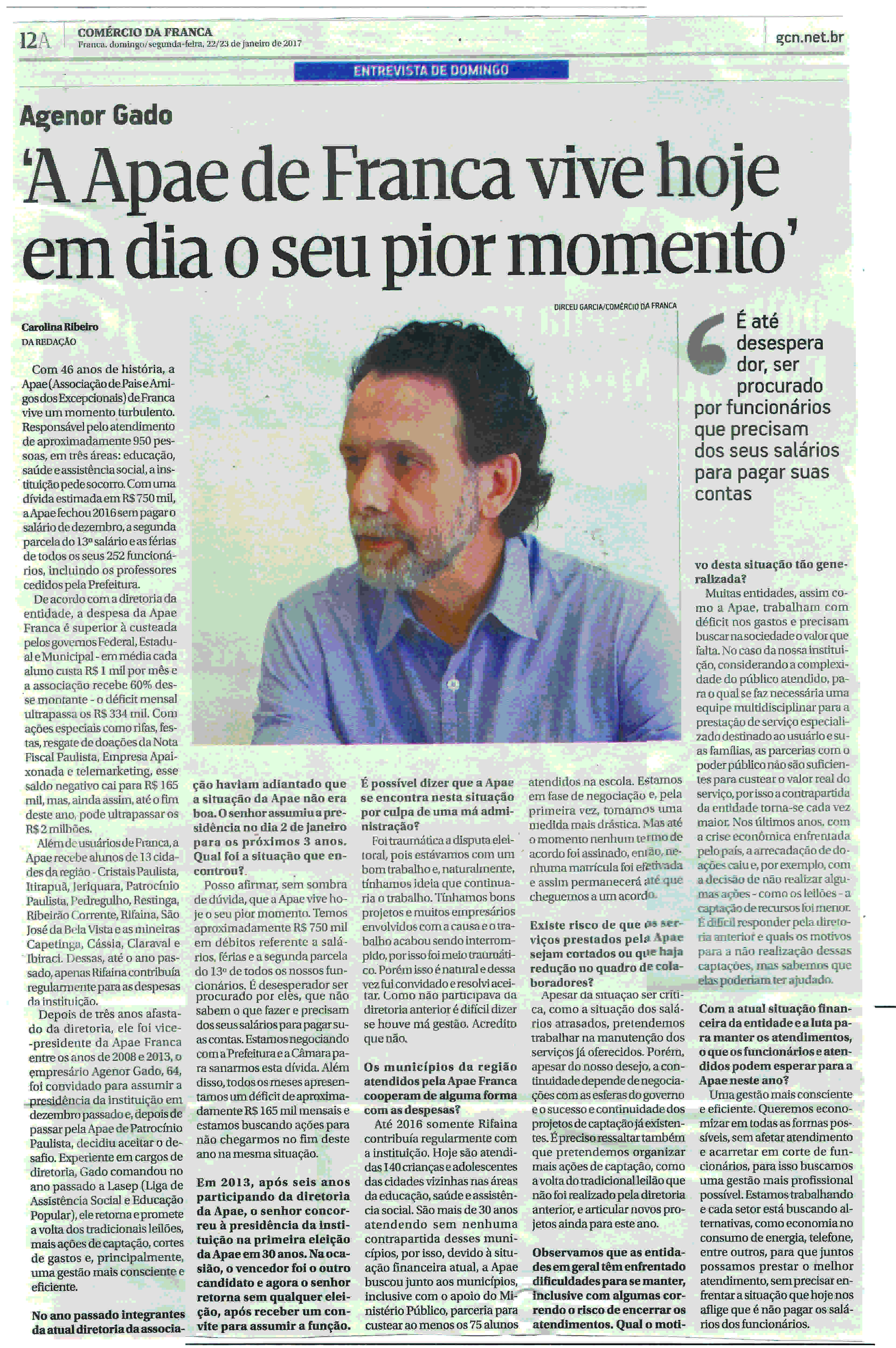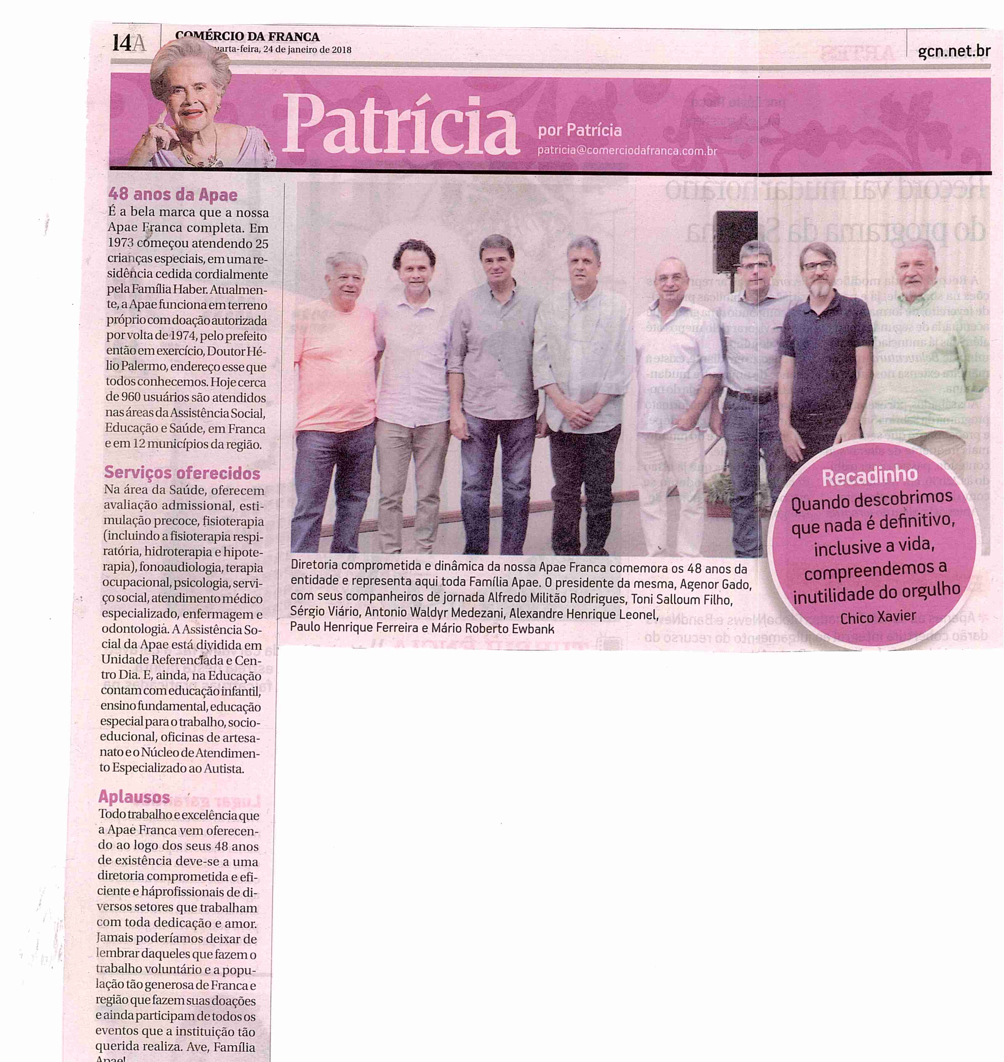 24-25/01/16 - COMÉRCIO DA FRANCA - Apae de Franca completa hoje 46 anos de fundação - 24-...