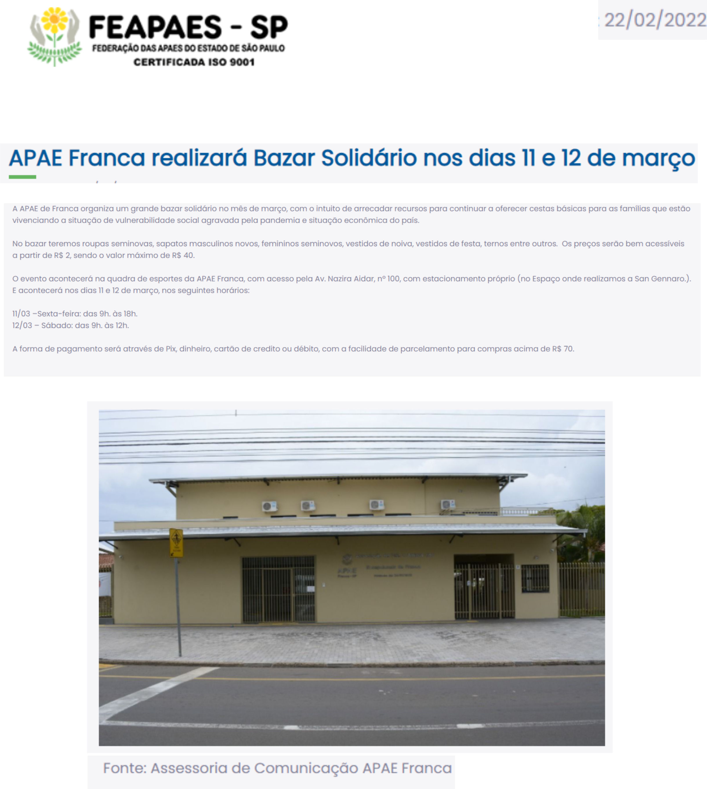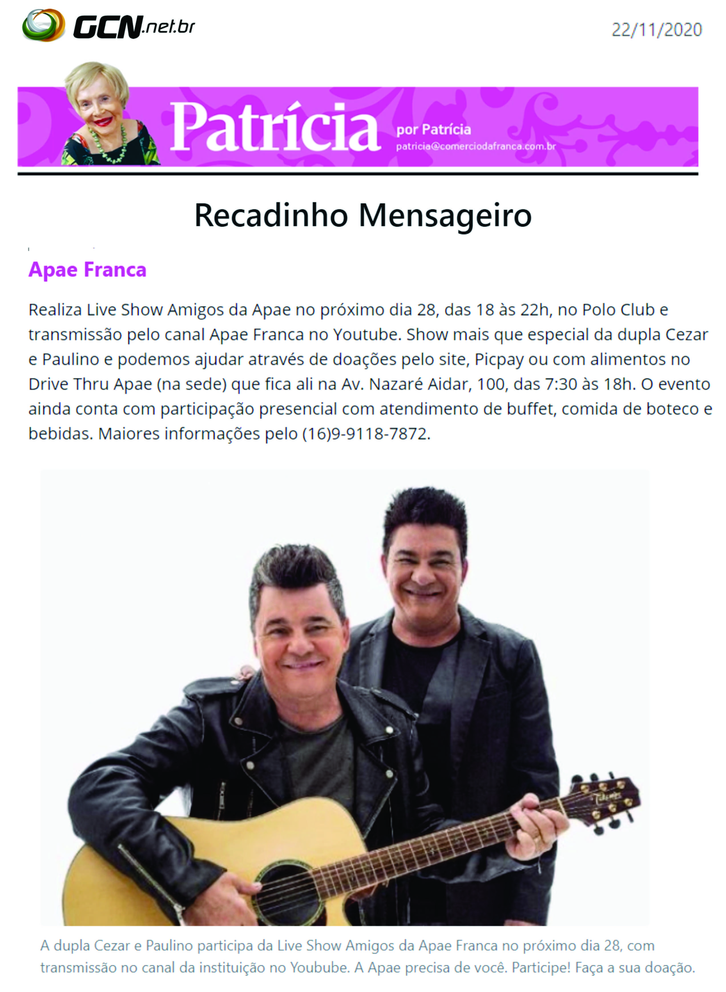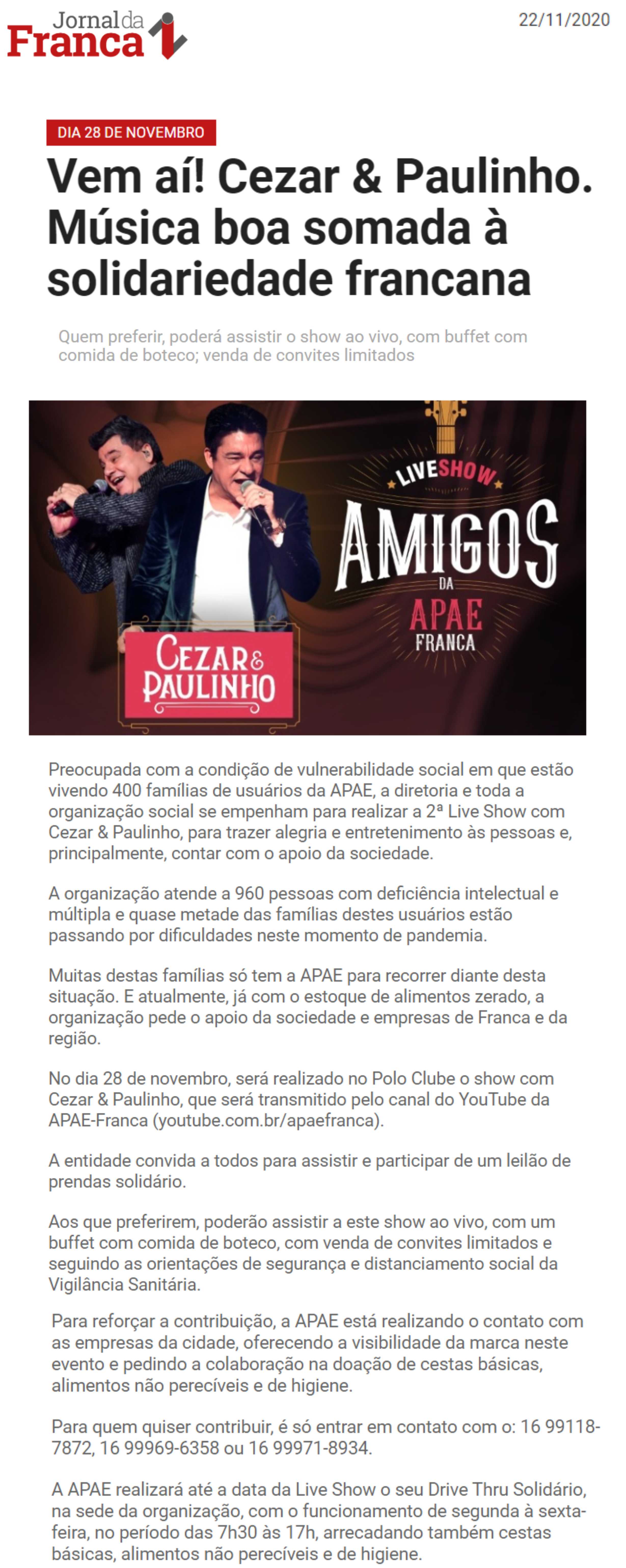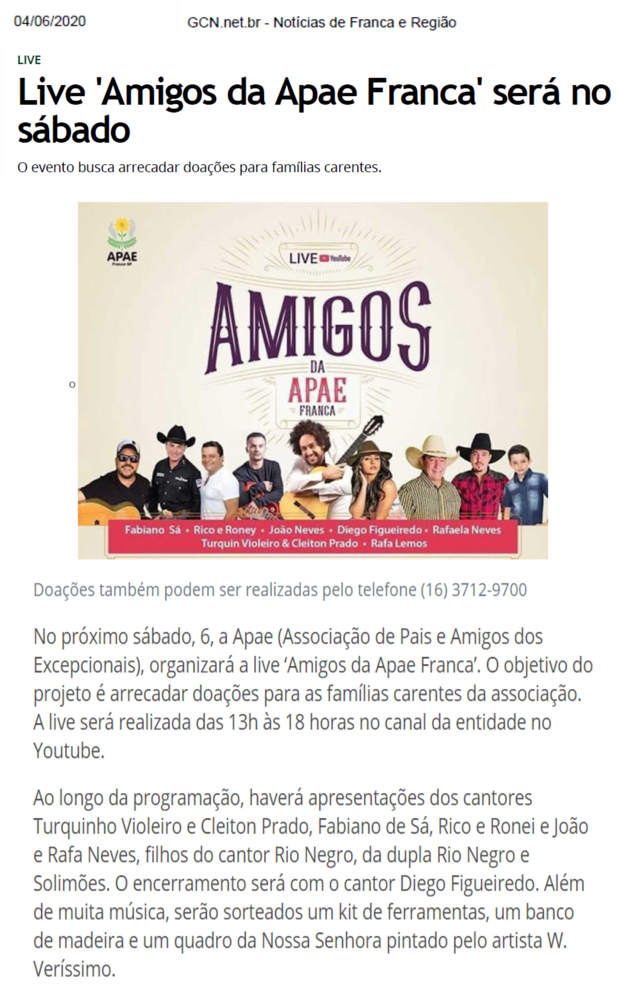 15.05.25 F3 Notícias APAE Franca faz leilão no dia 24.5 para ampliar atendimento para mais...