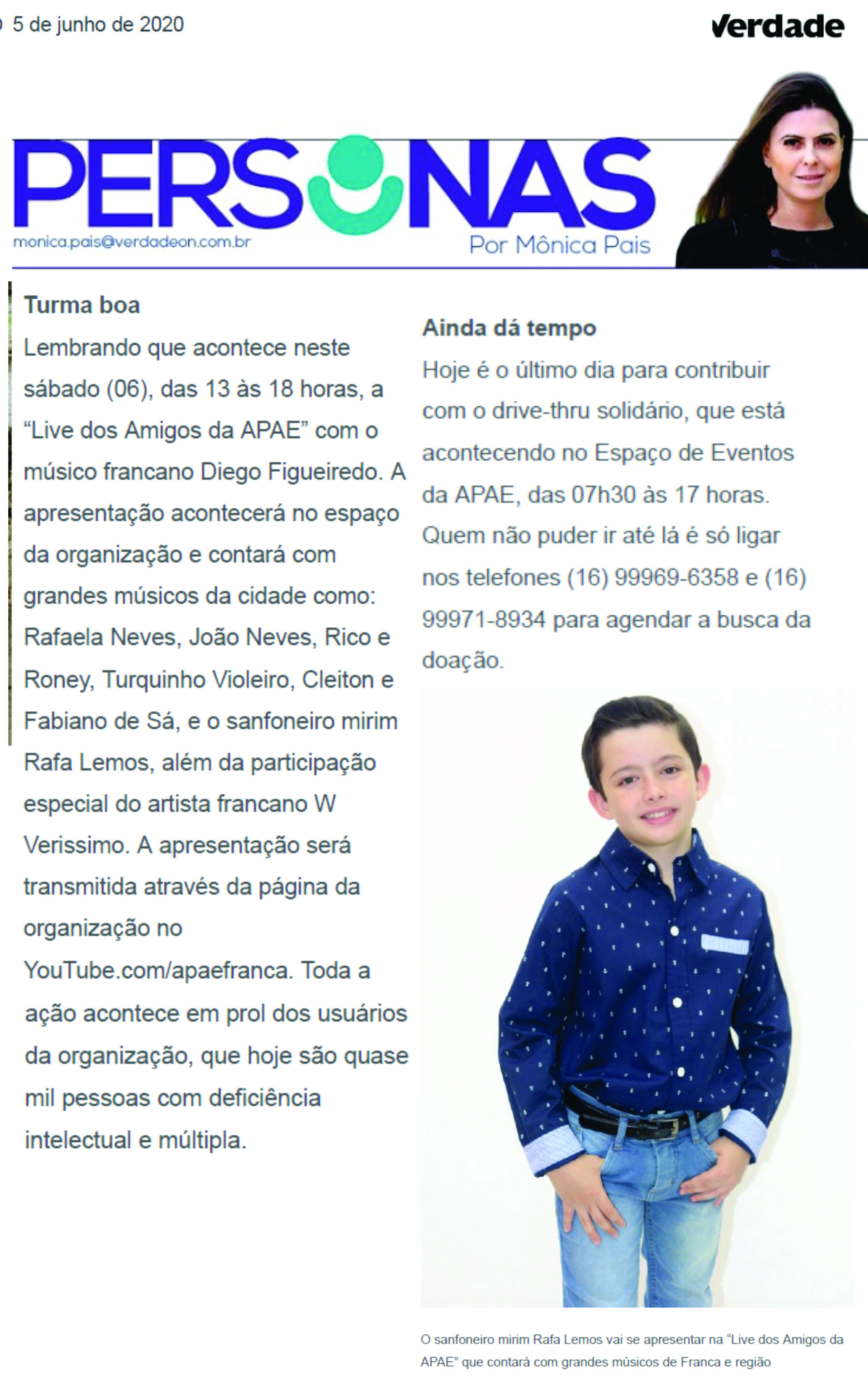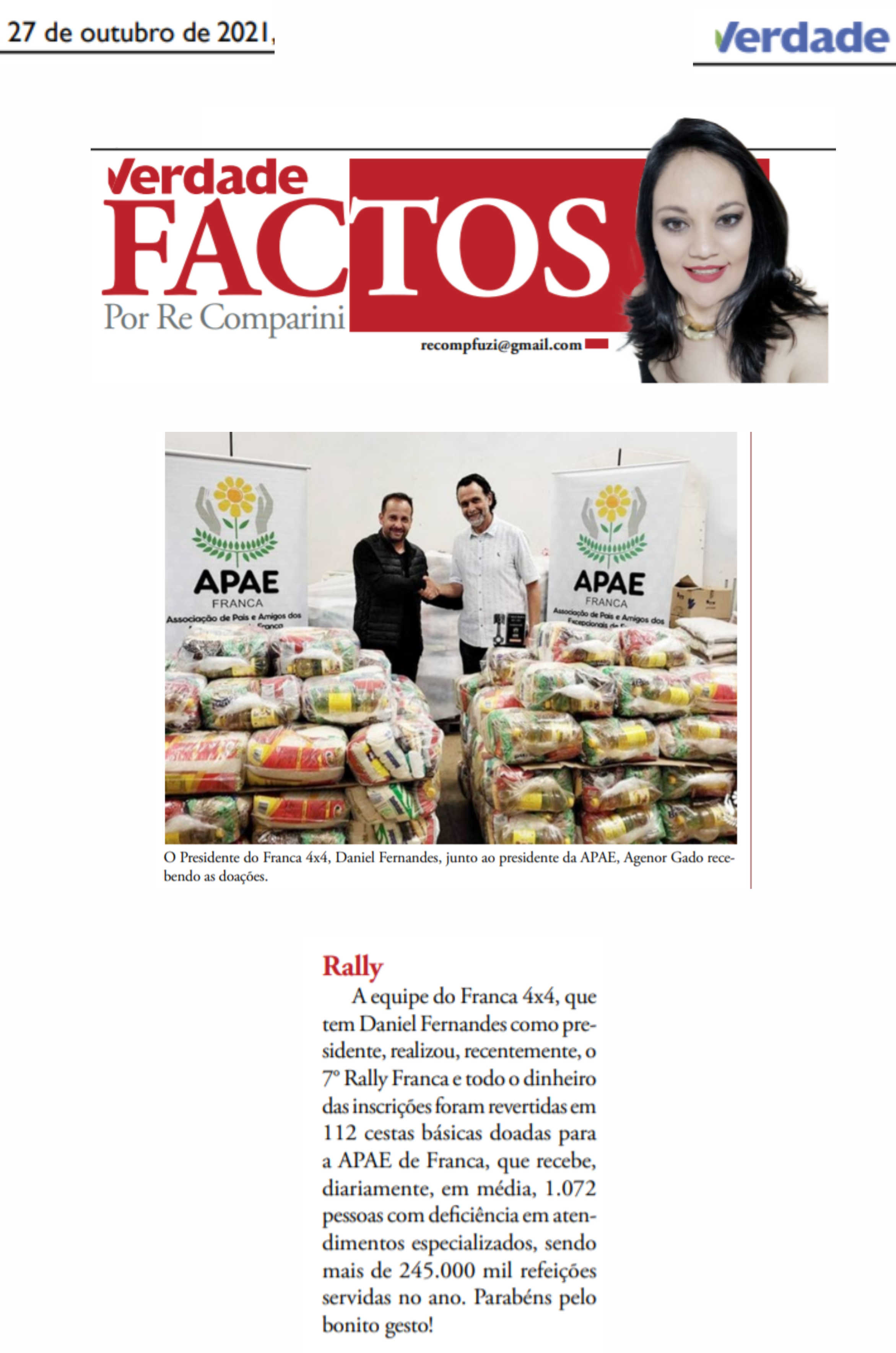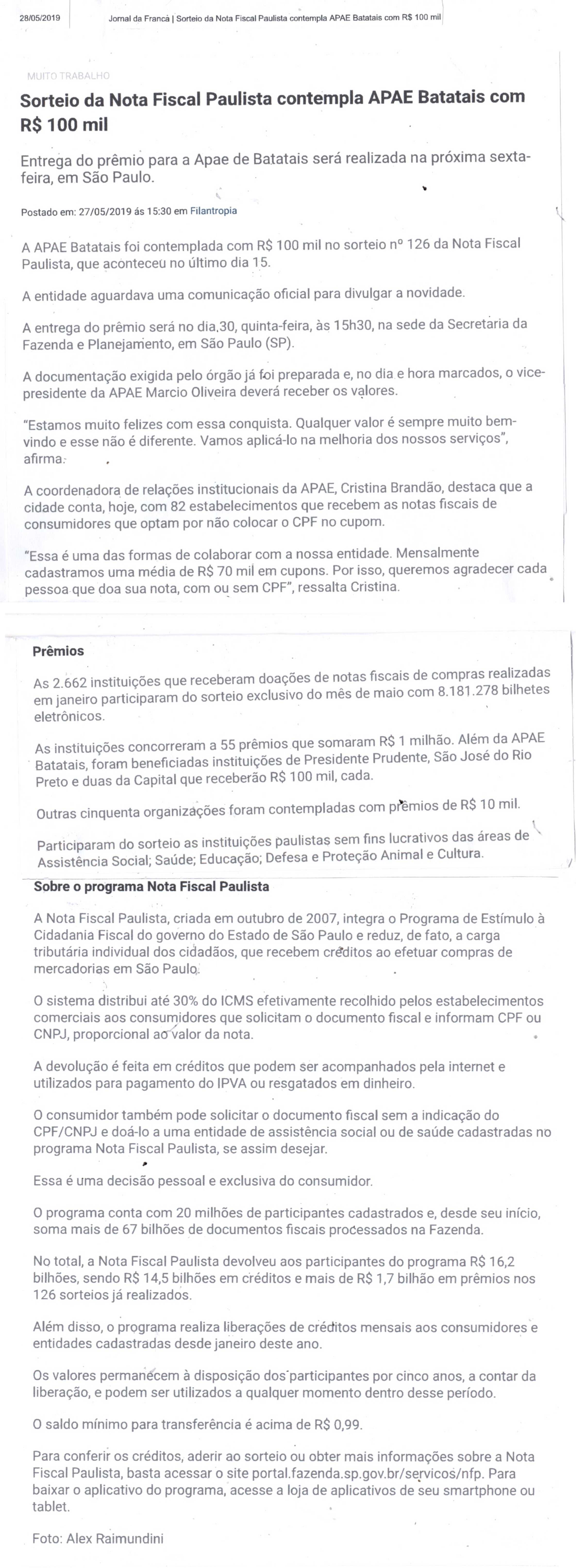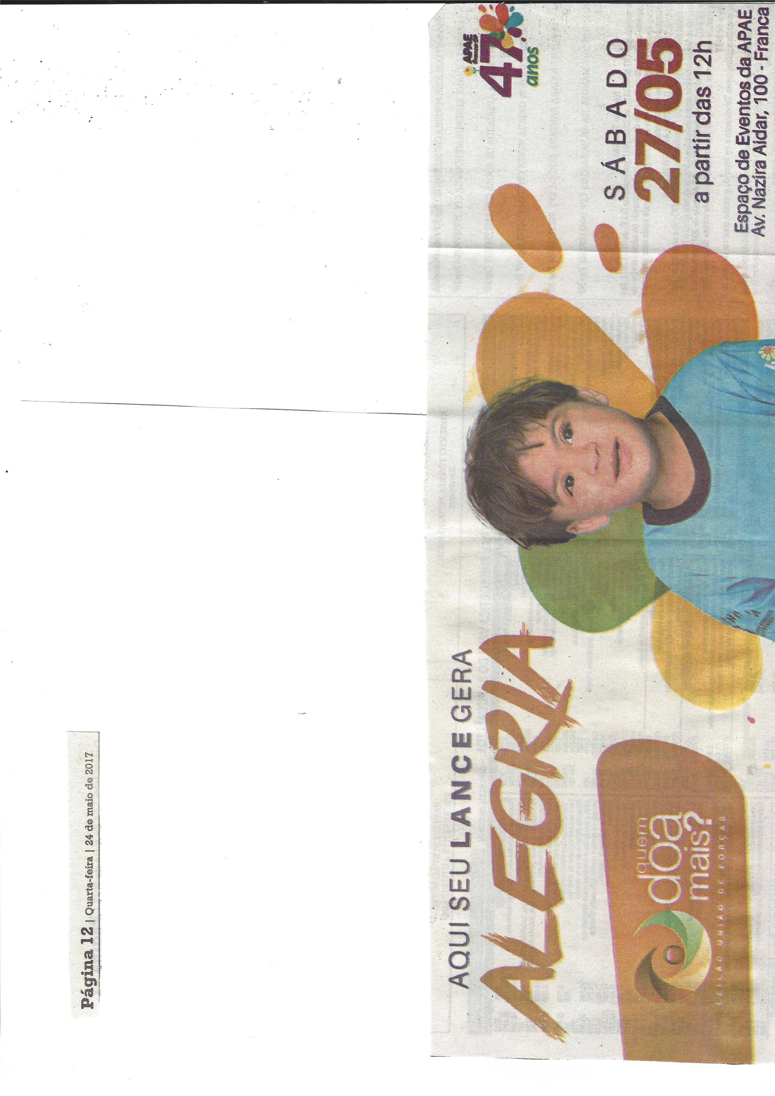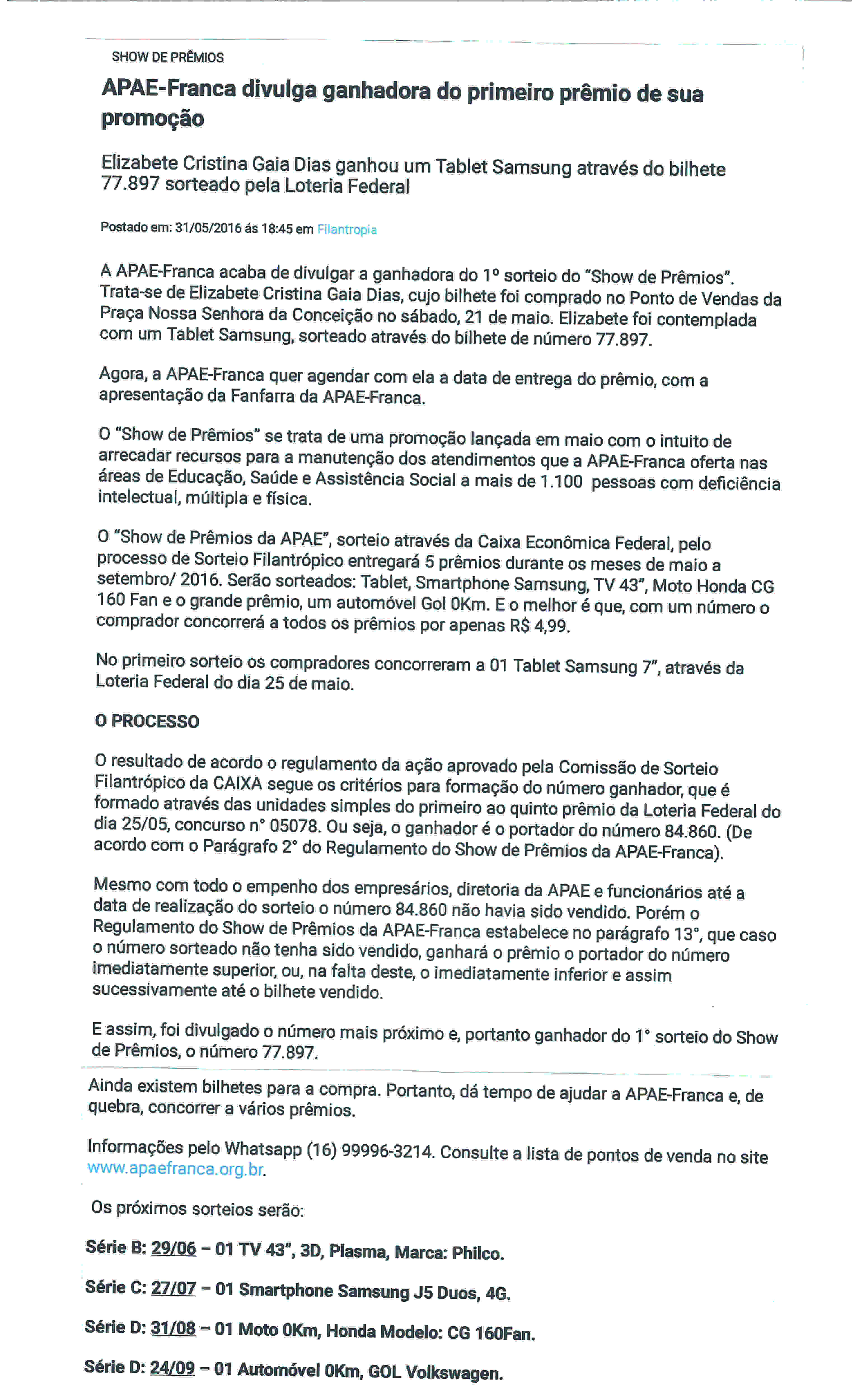 31/05/16 - JORNAL DA FRANCA - Apae Franca divulga ganhadora do primeiro prêmio de sua prom...