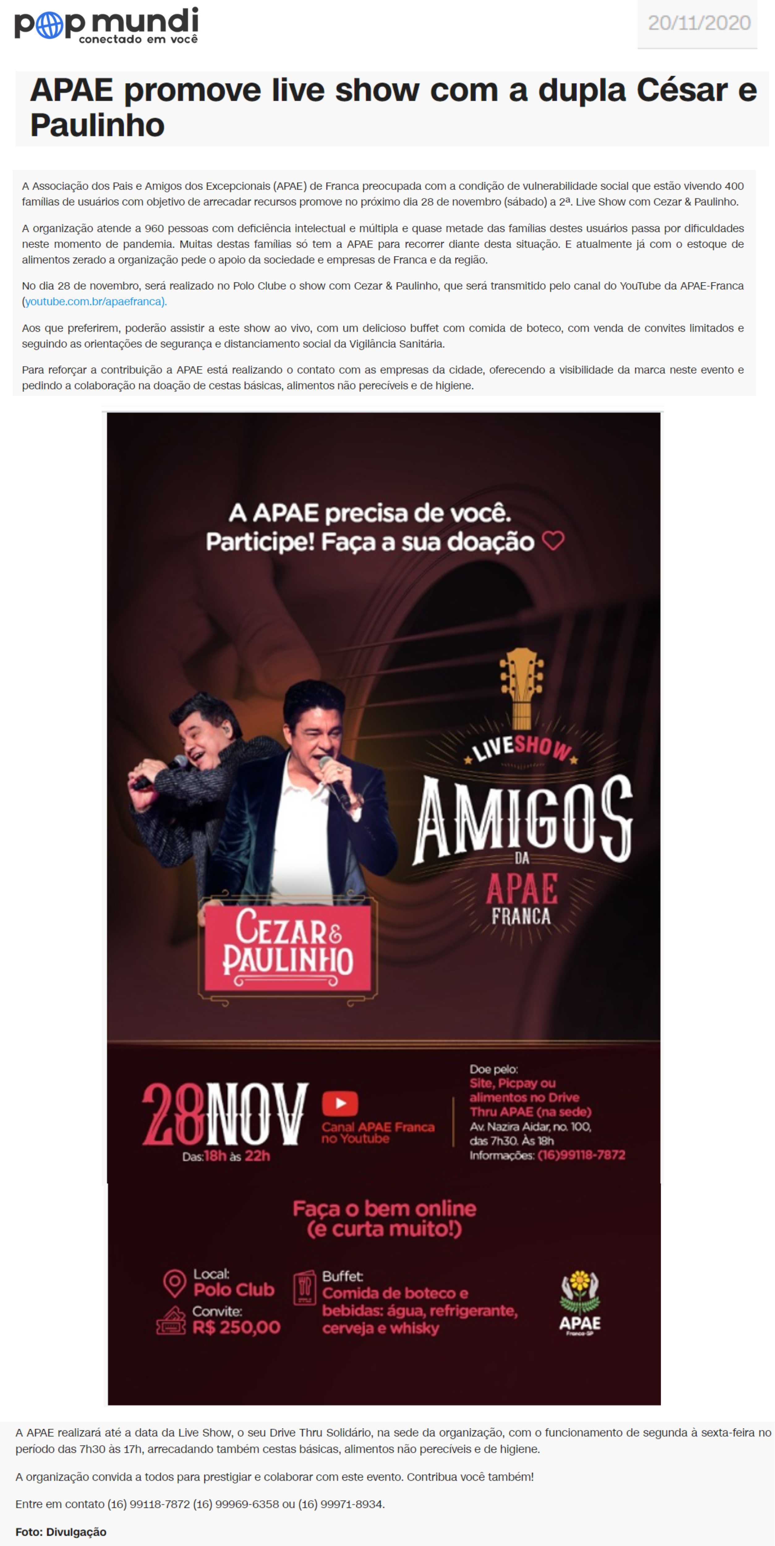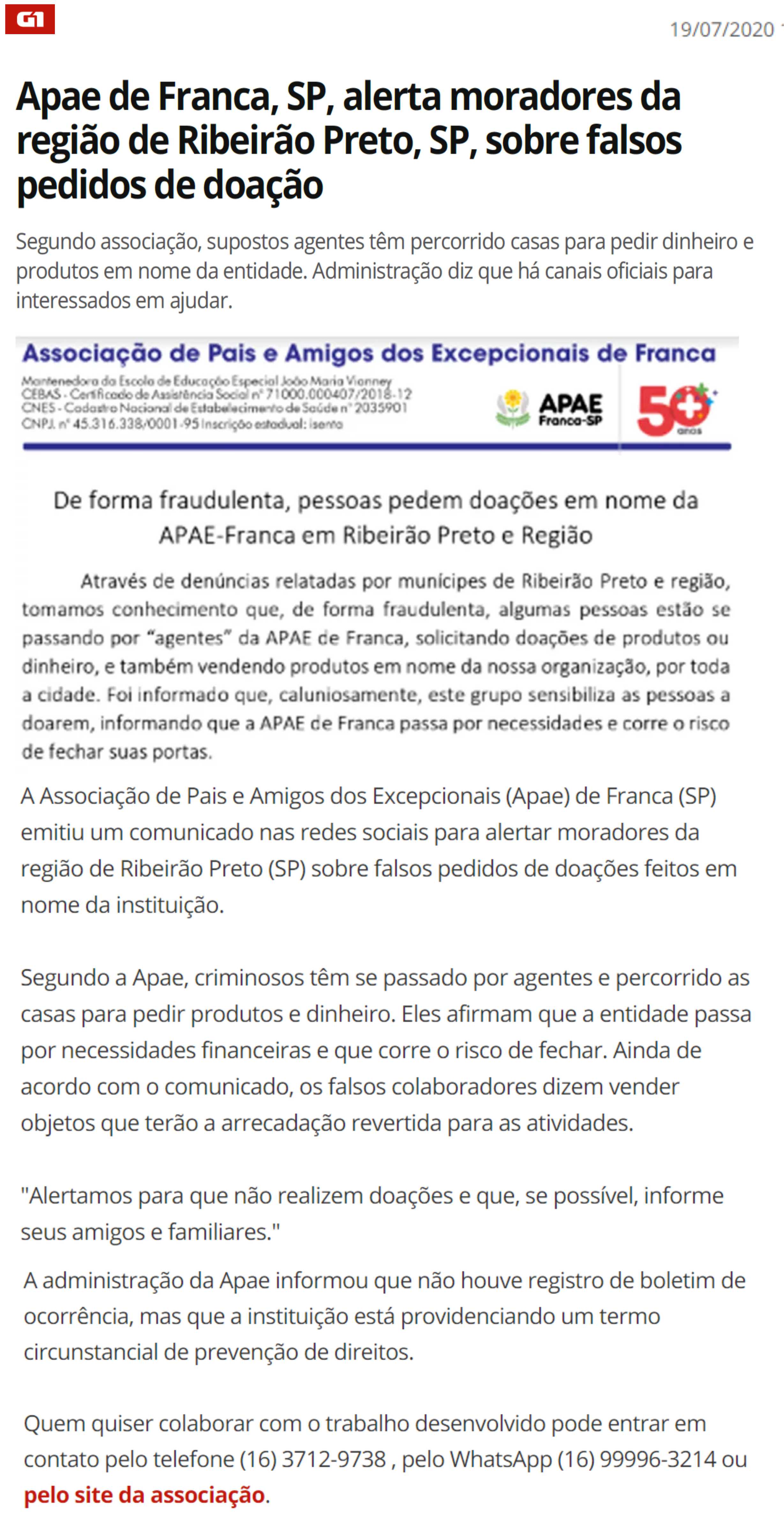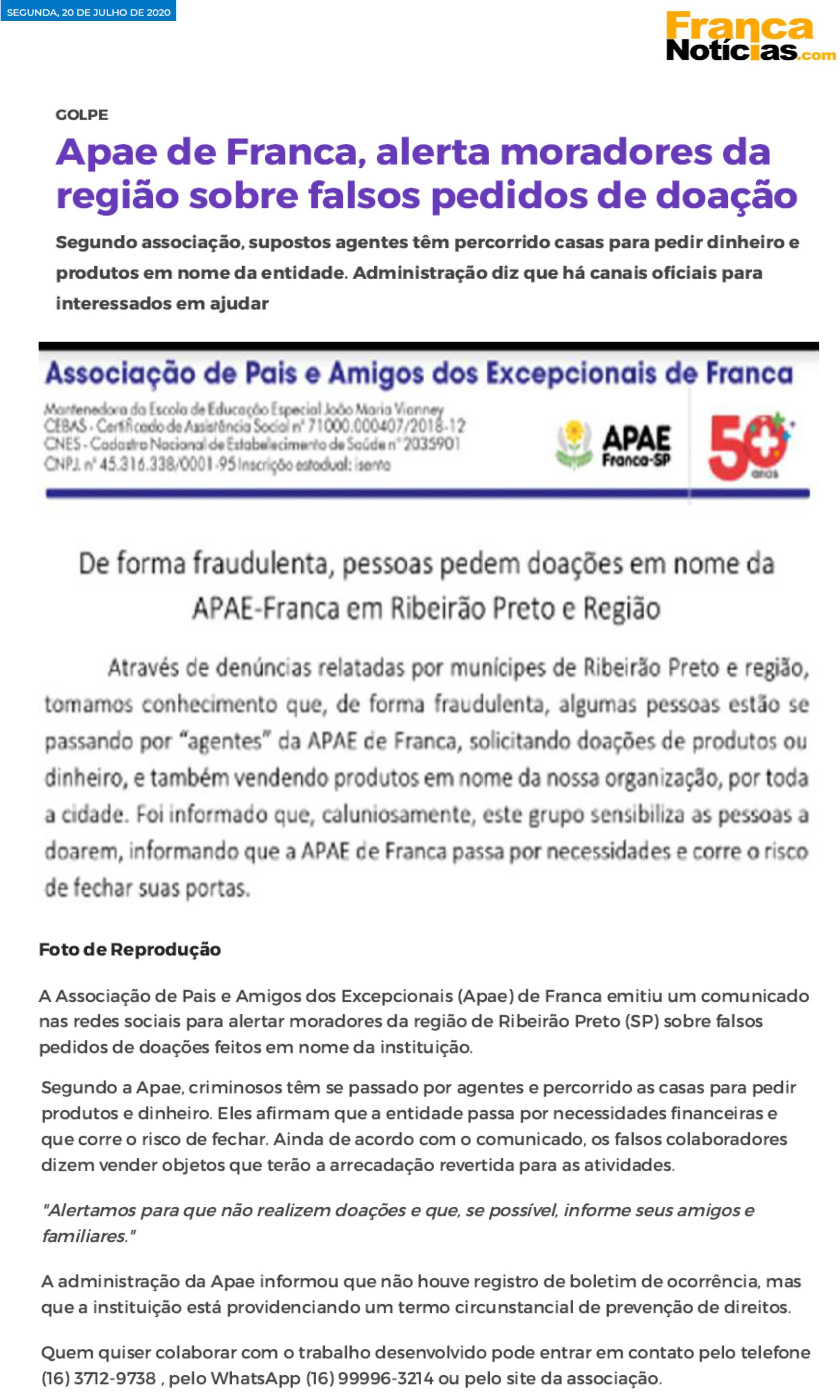 07.07.25 Portal Fato no Ato Apae mobiliza solidariedade em Franca com Campanha “Doe Amor,...