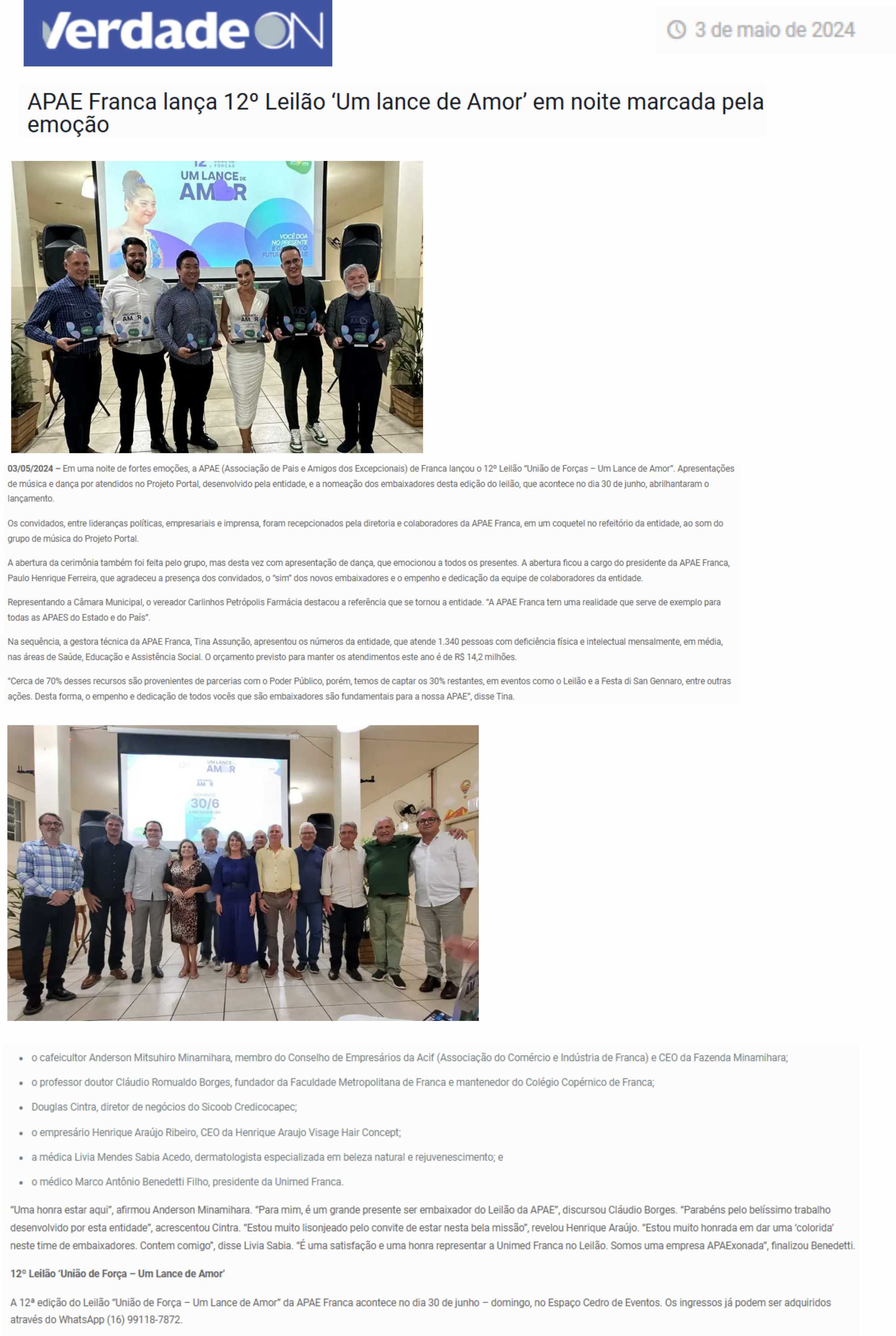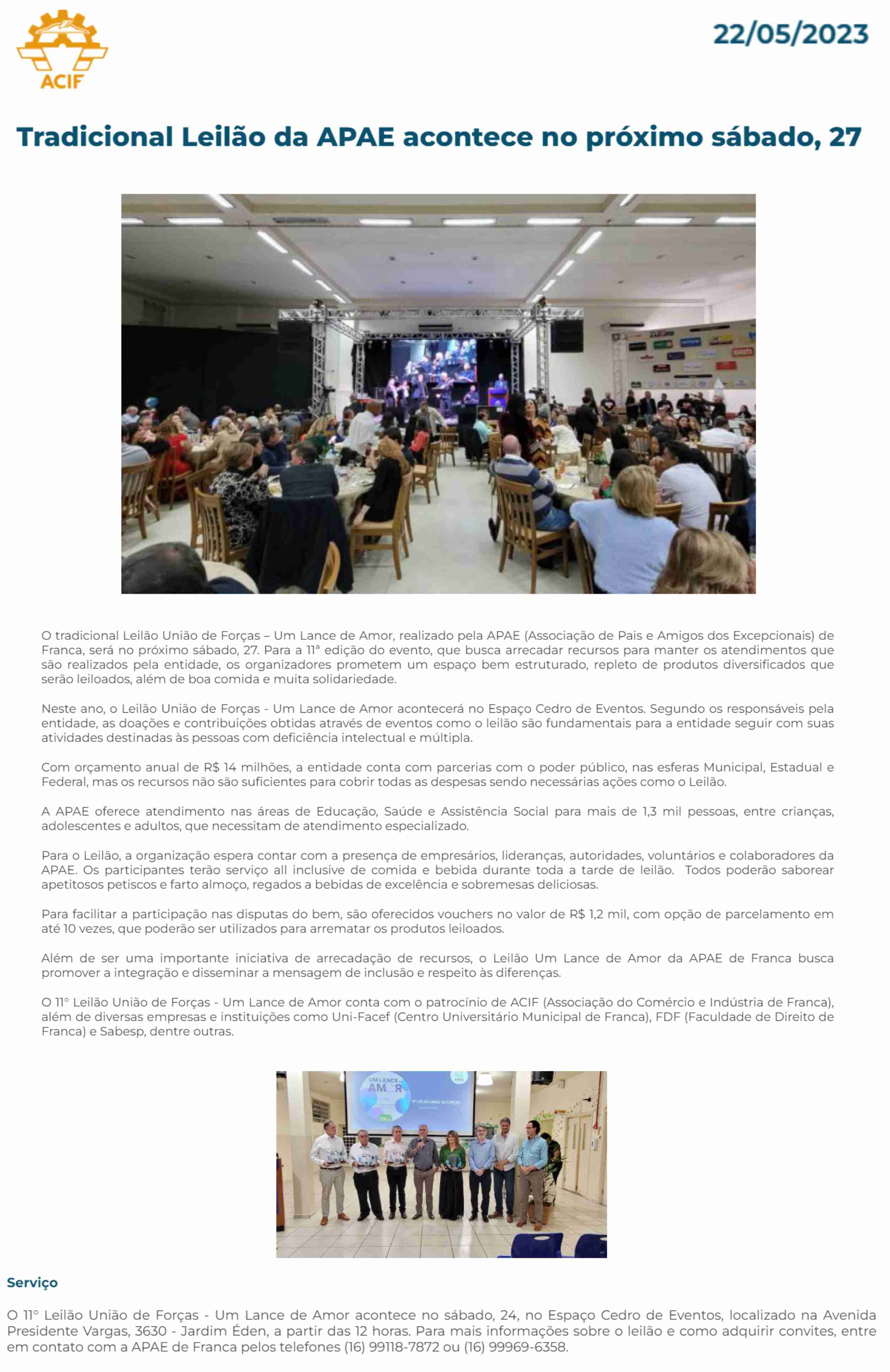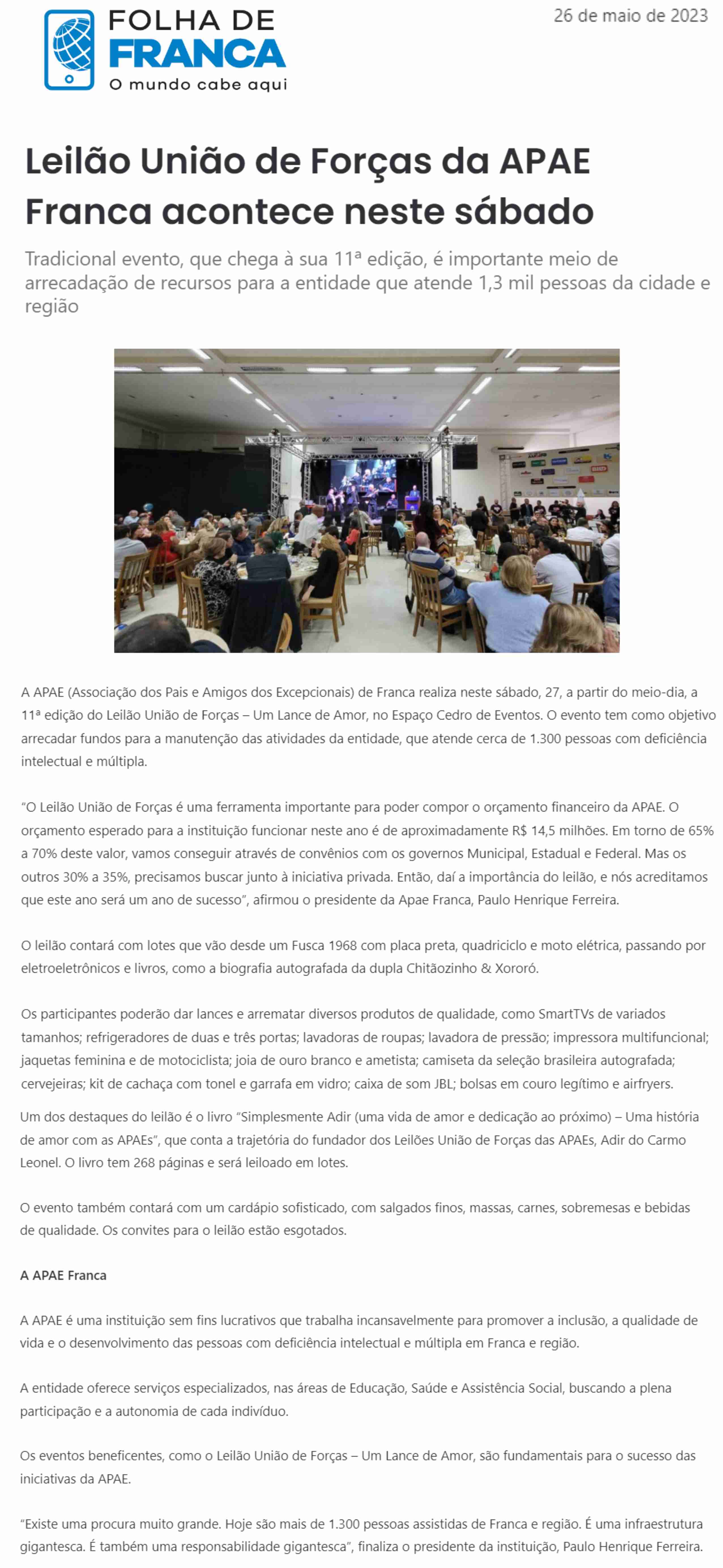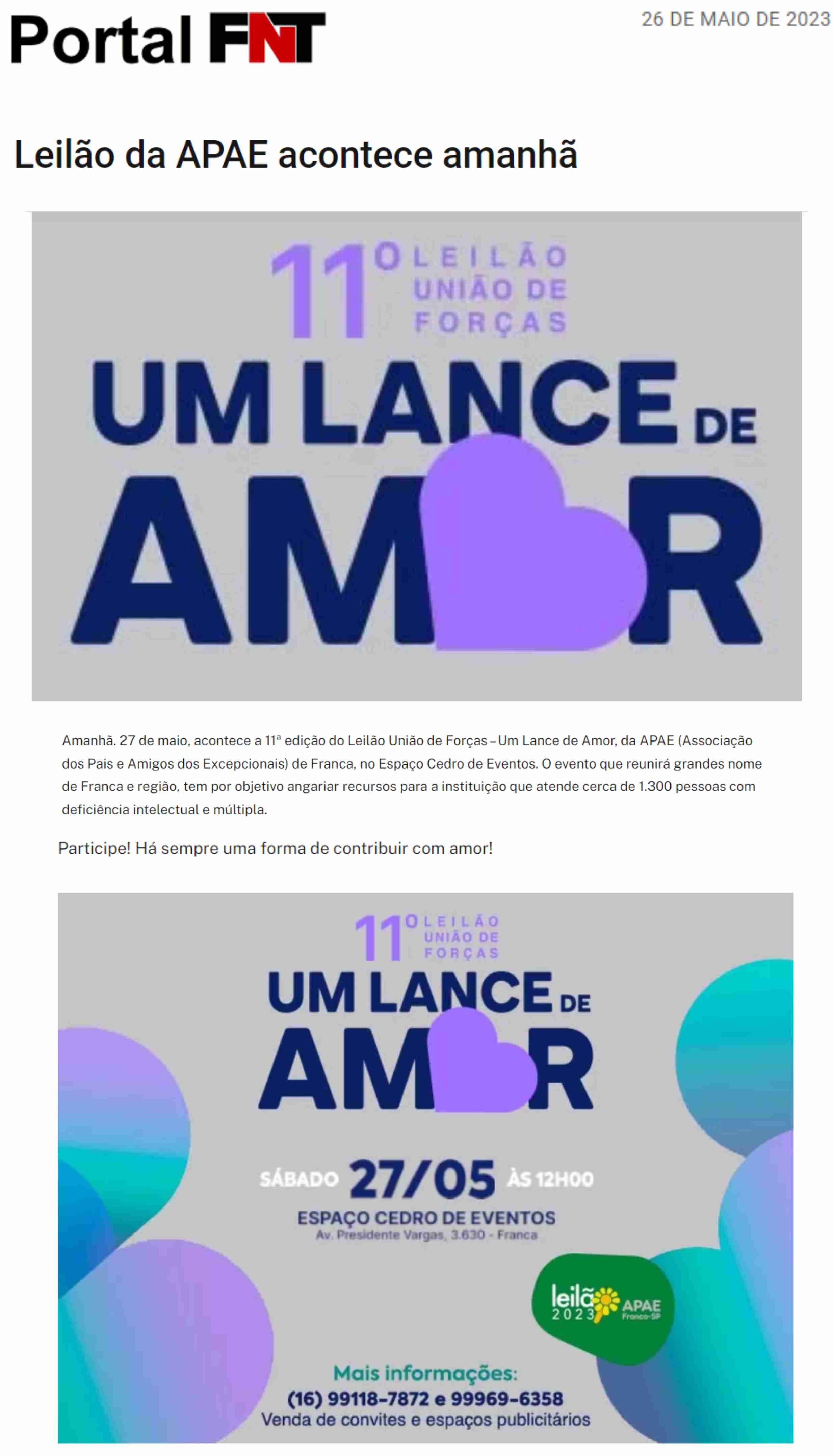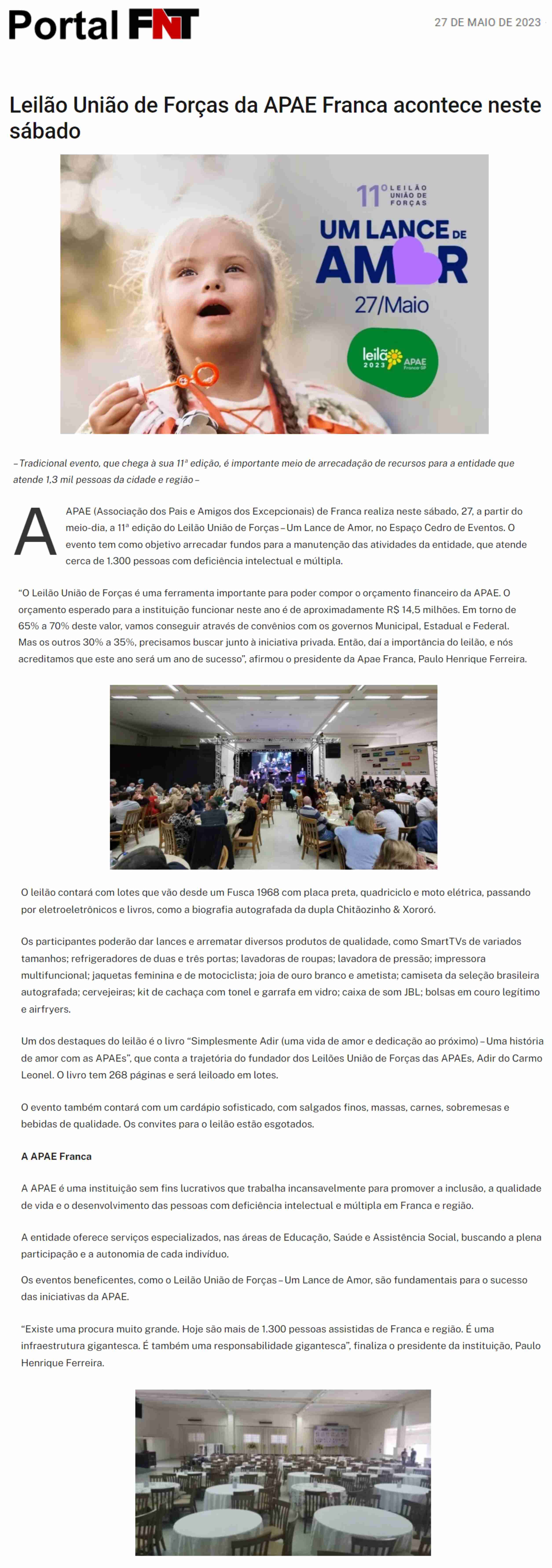 14.05.25 Portal Forte Expressão APAE Franca promove 13º Leilão .Um Lance de Amor, para am...