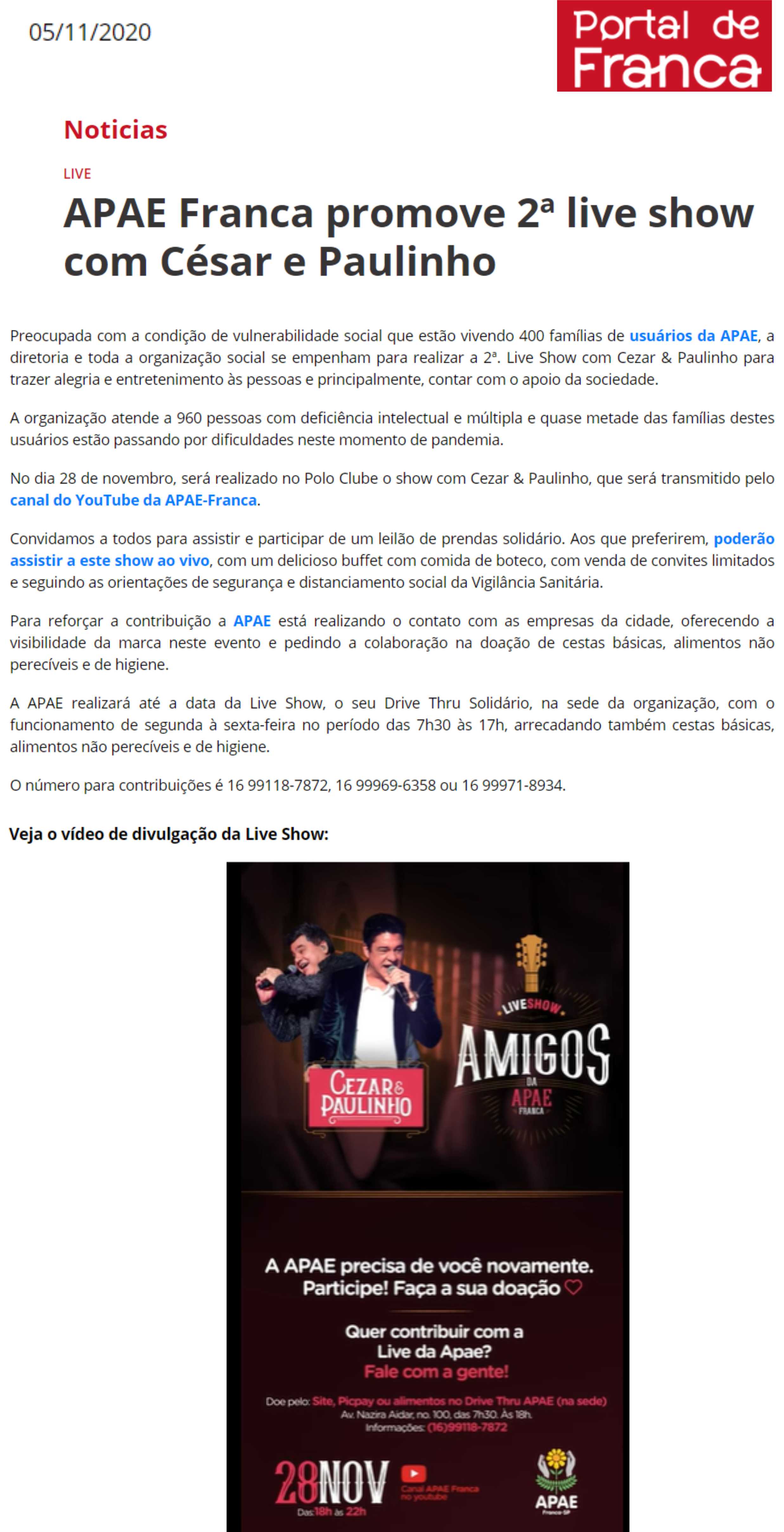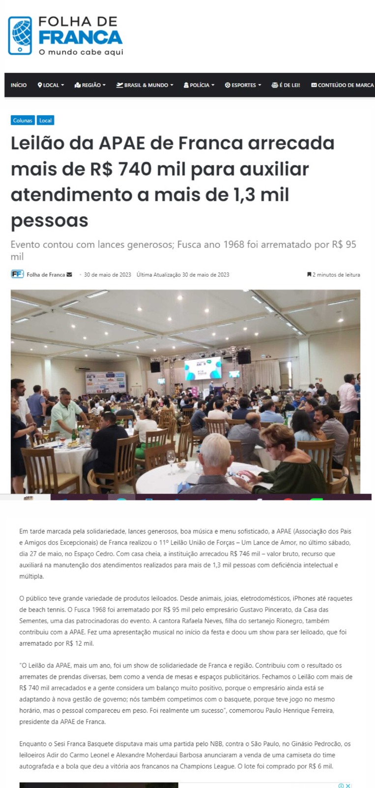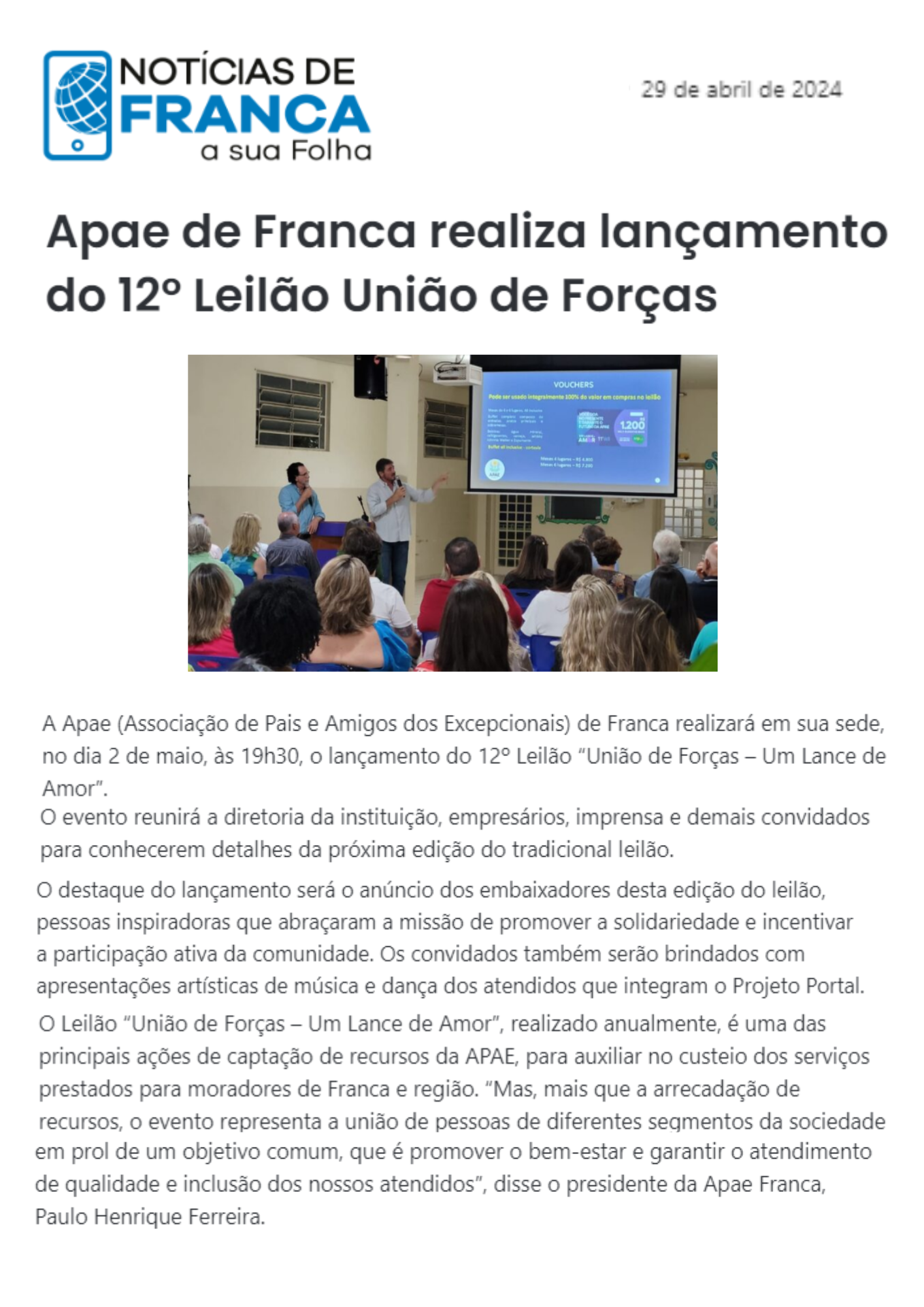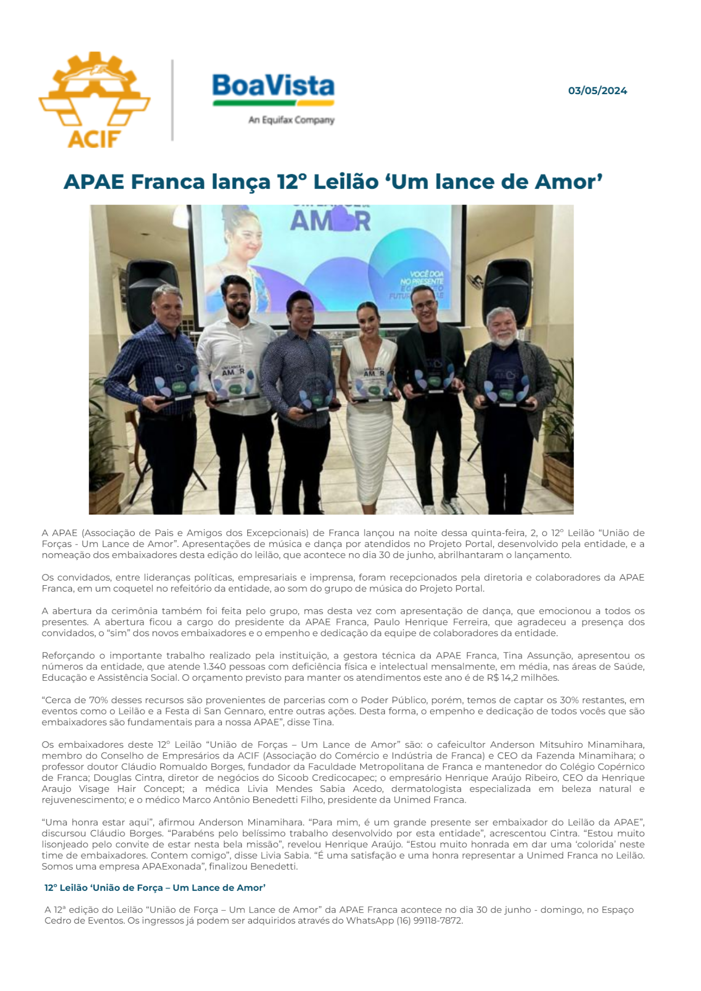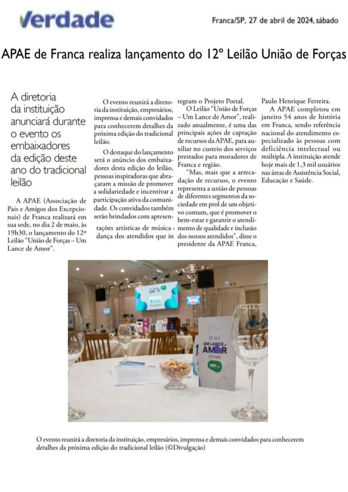 14.05.25 Portal Forte Expressão APAE Franca promove 13º Leilão .Um Lance de Amor, para am...