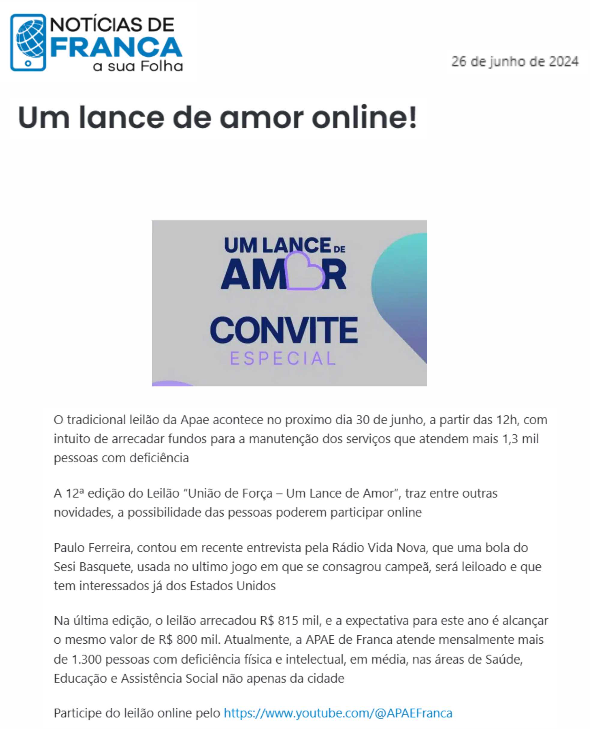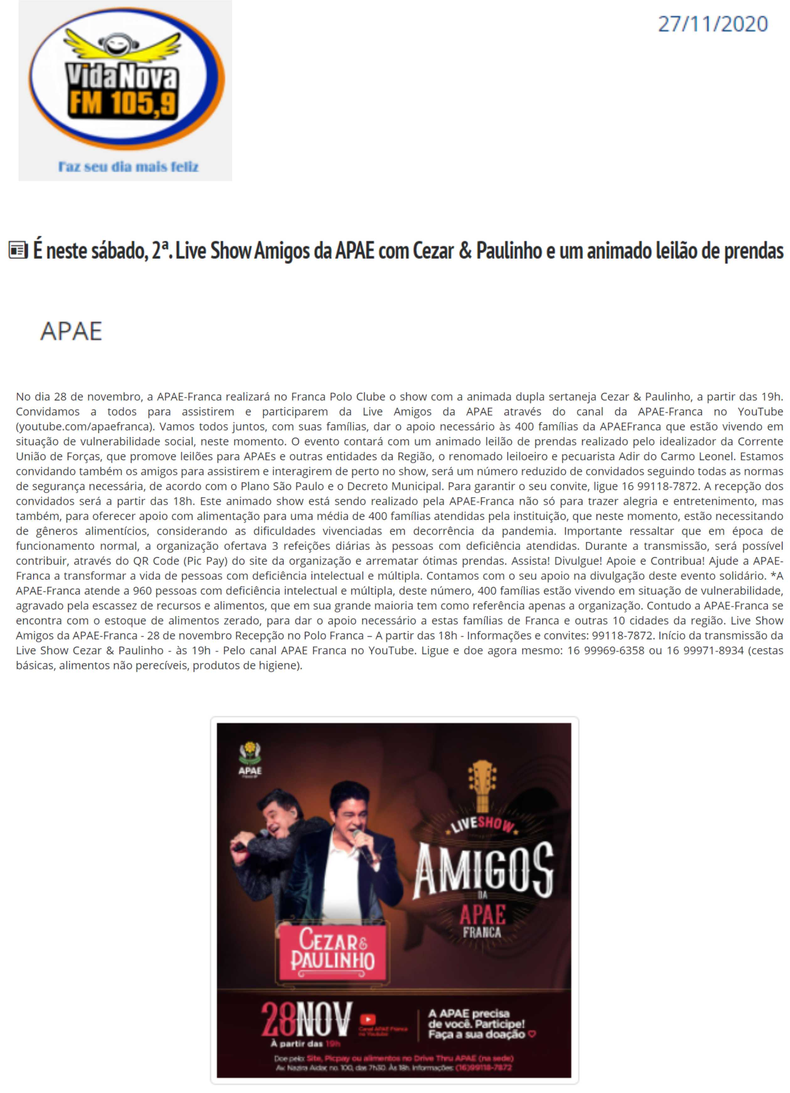 13.05.25 Radio vida Nova APAE franca promove 13 leilão um lance de amor para ampliar atend...