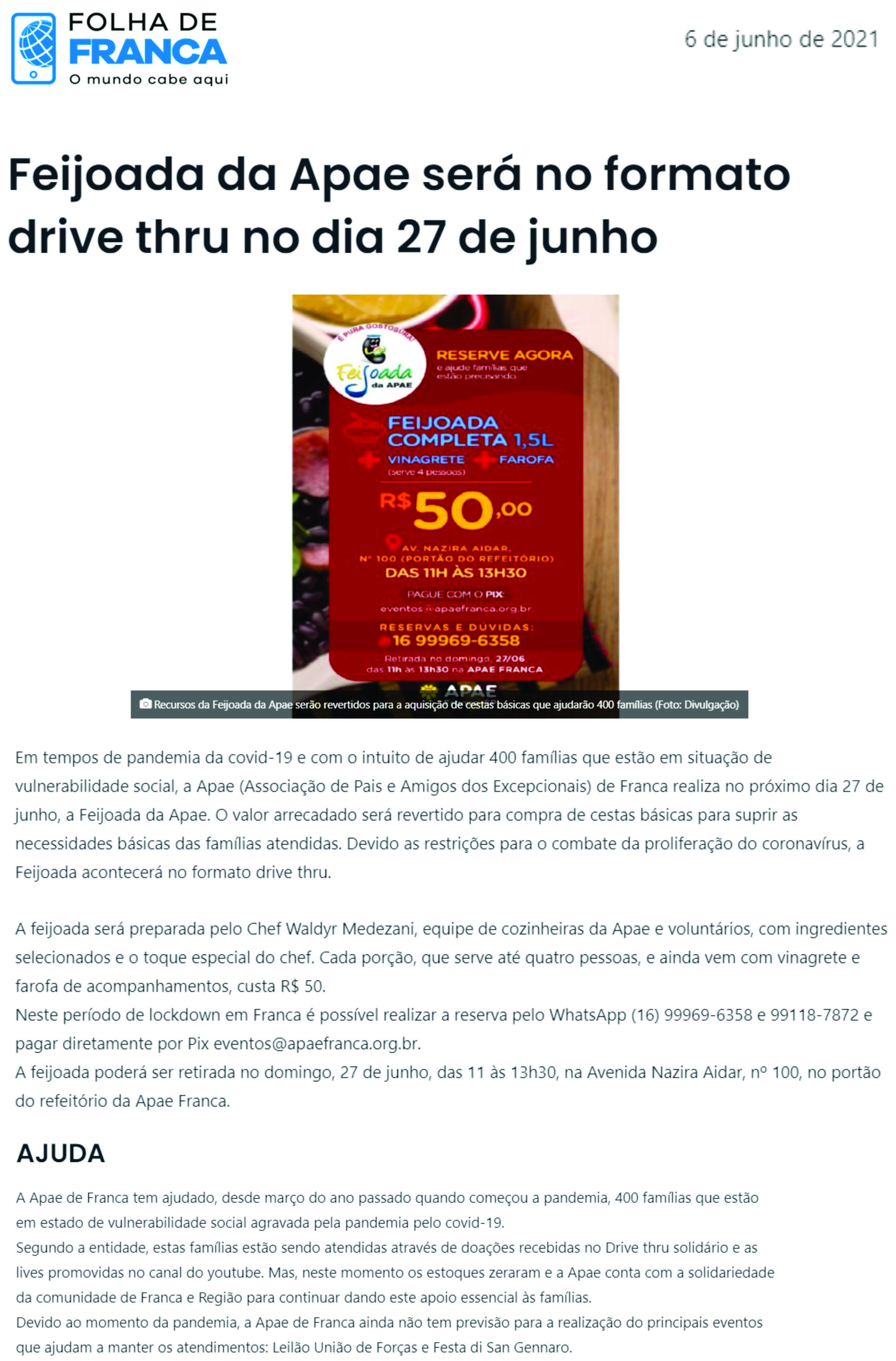 02/07/16 - JORNAL DA FRANCA - Apae Batatais promove 1º Festival de Feijoada no dia 17 de j...