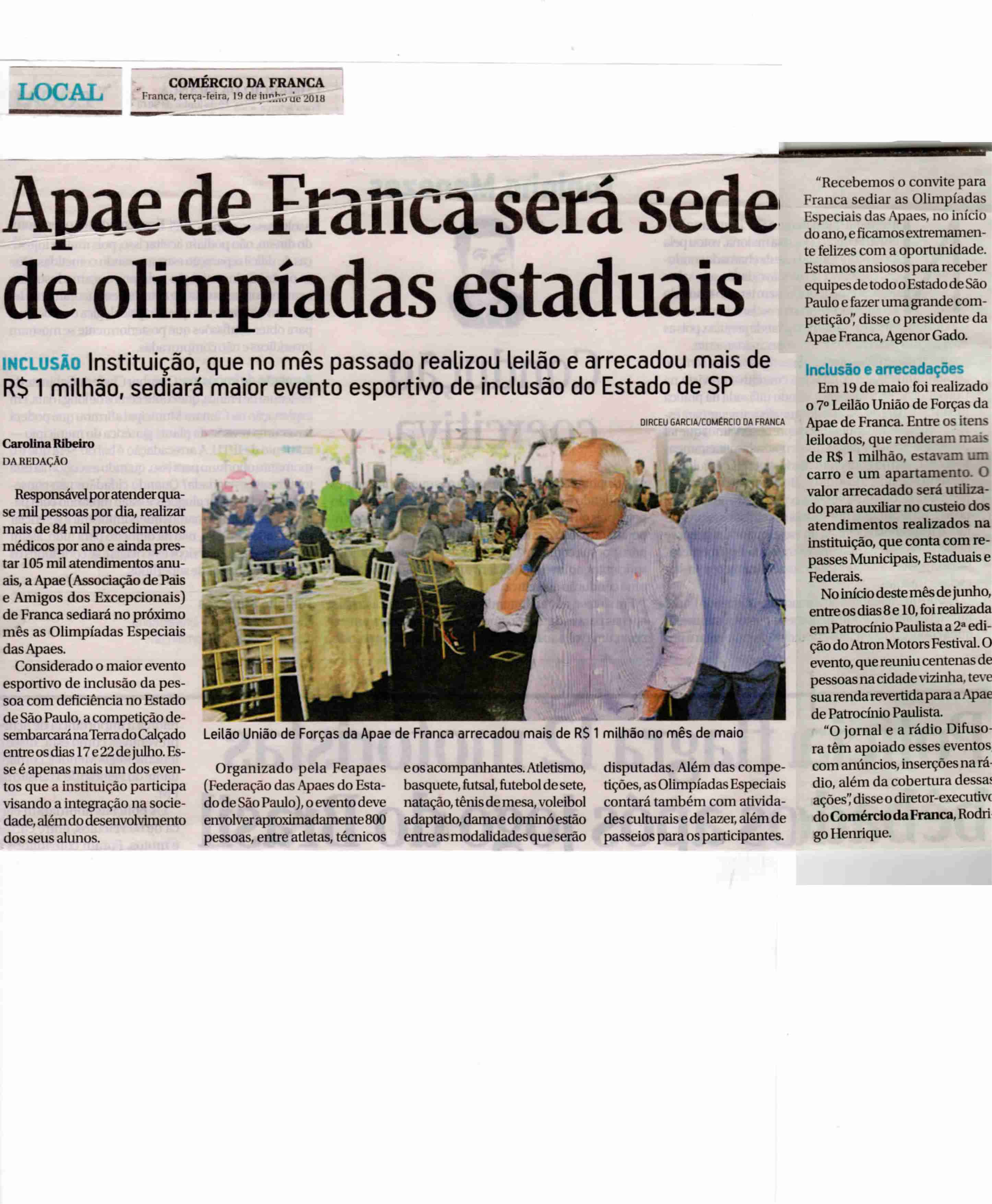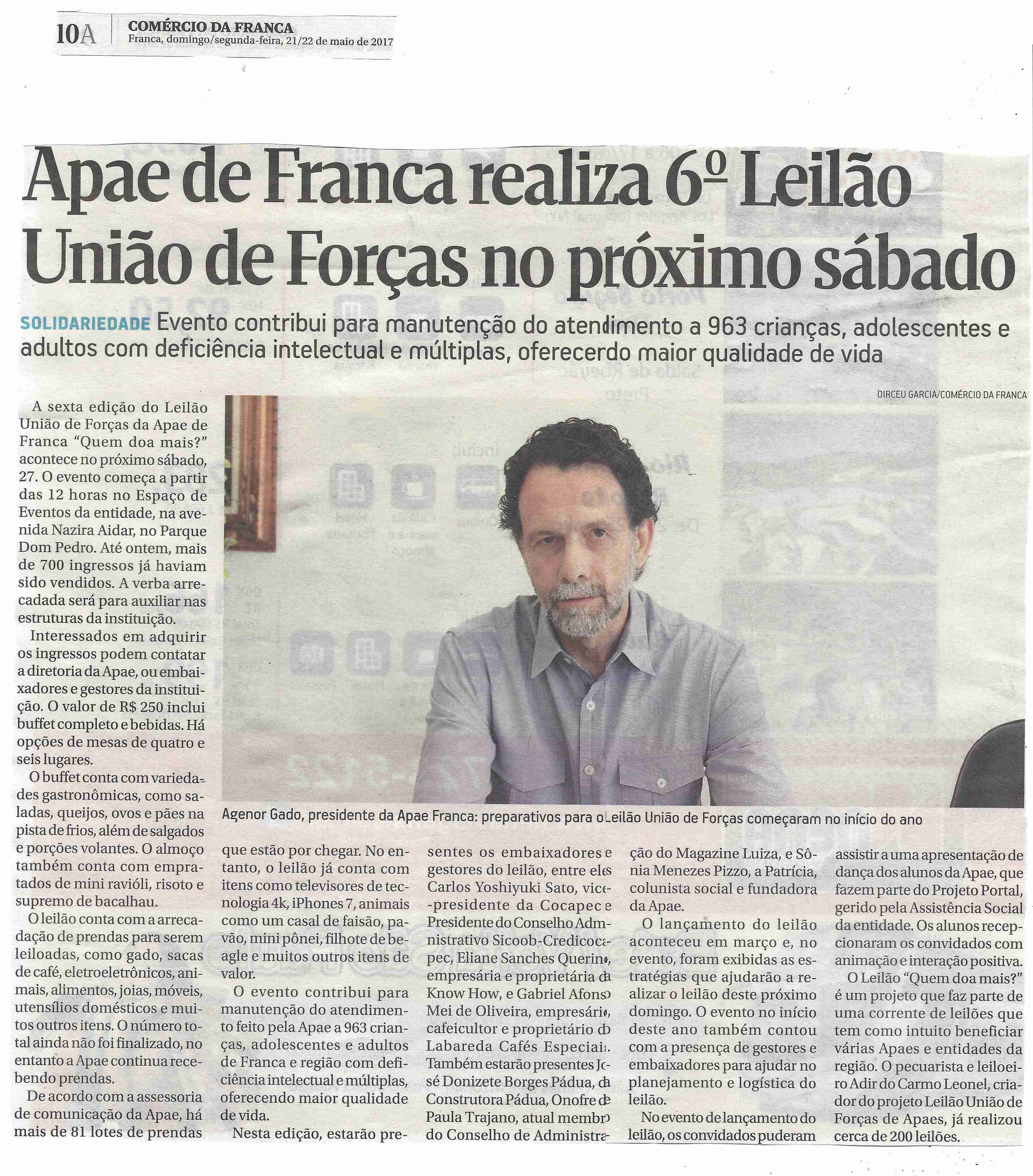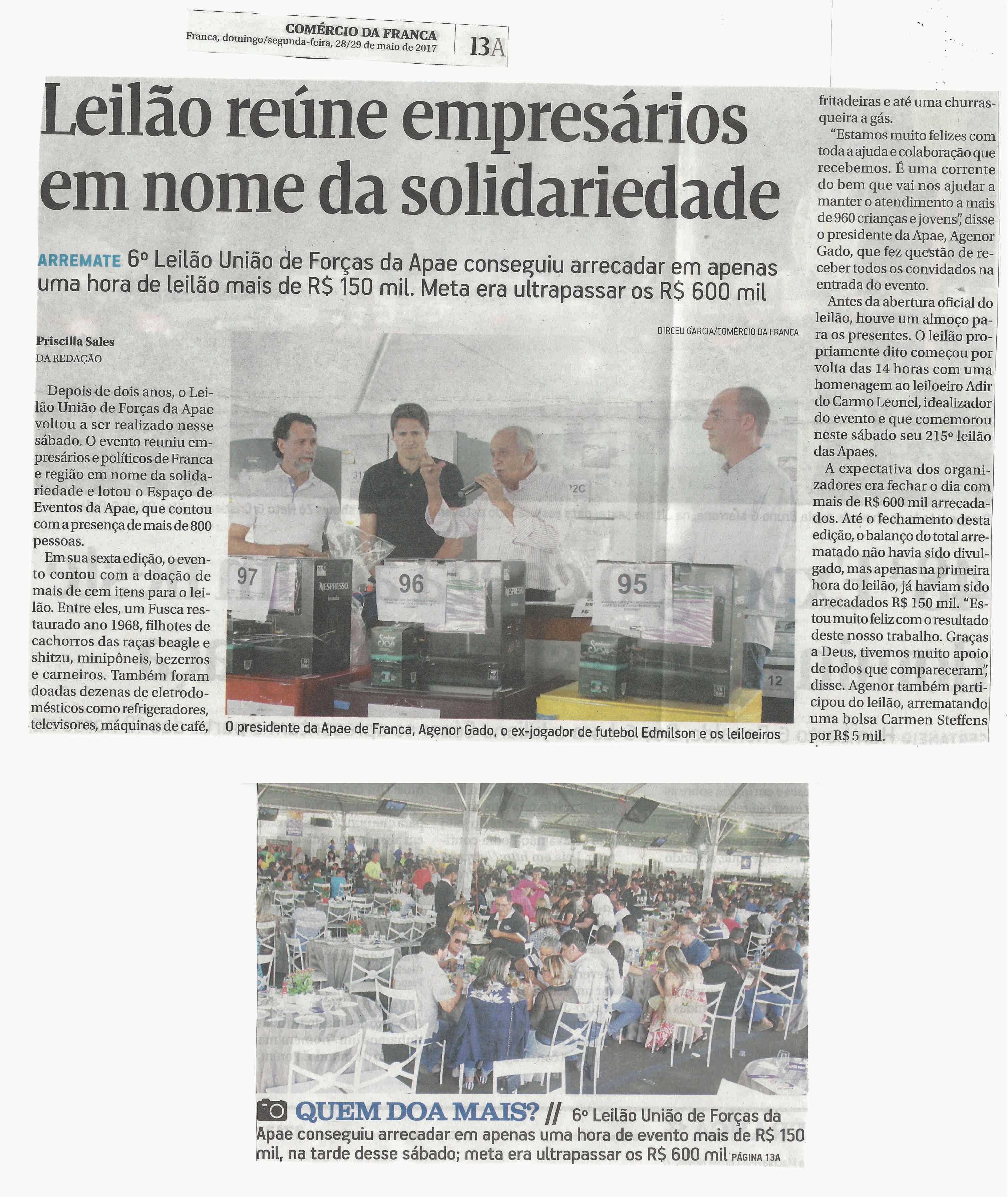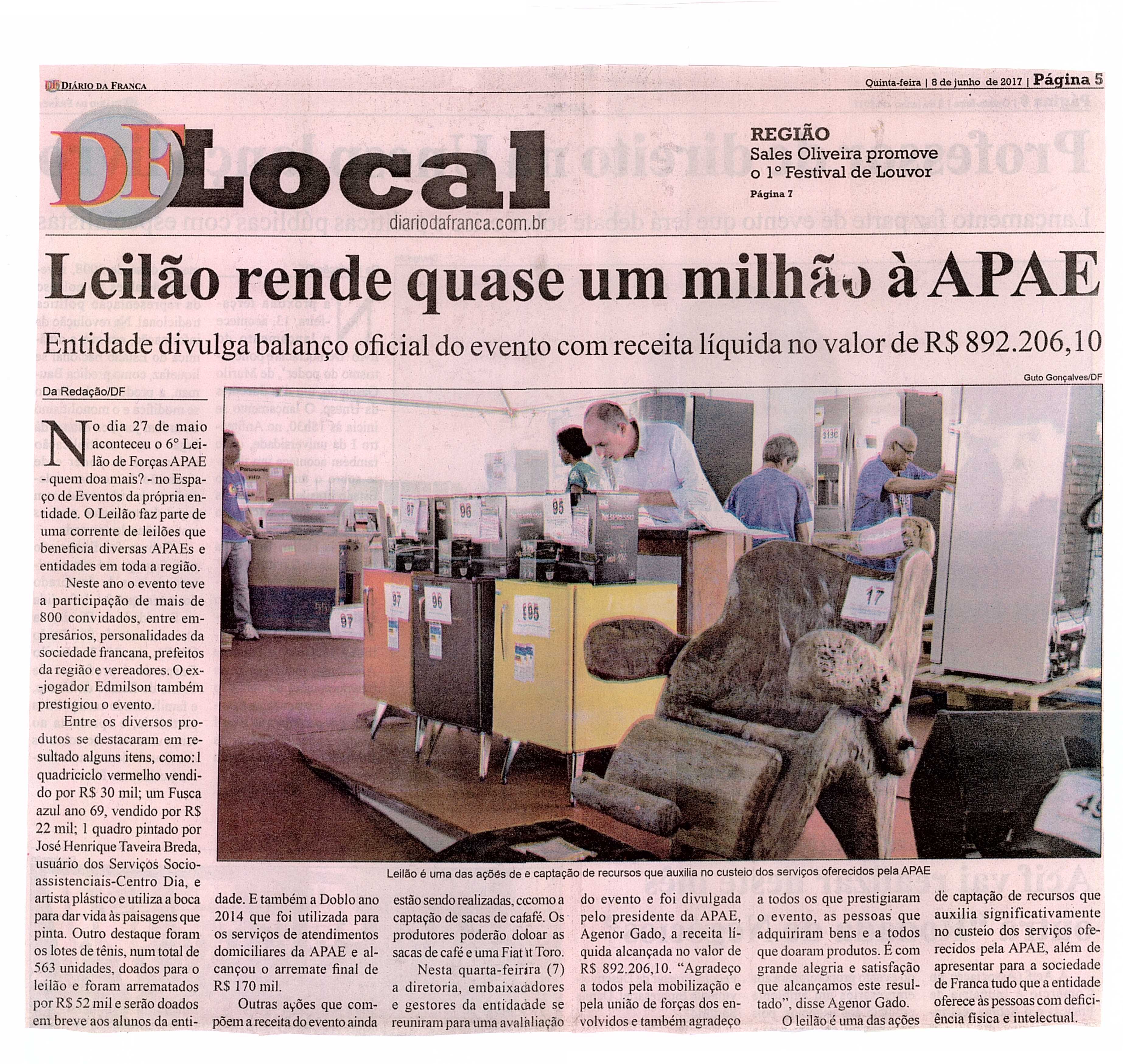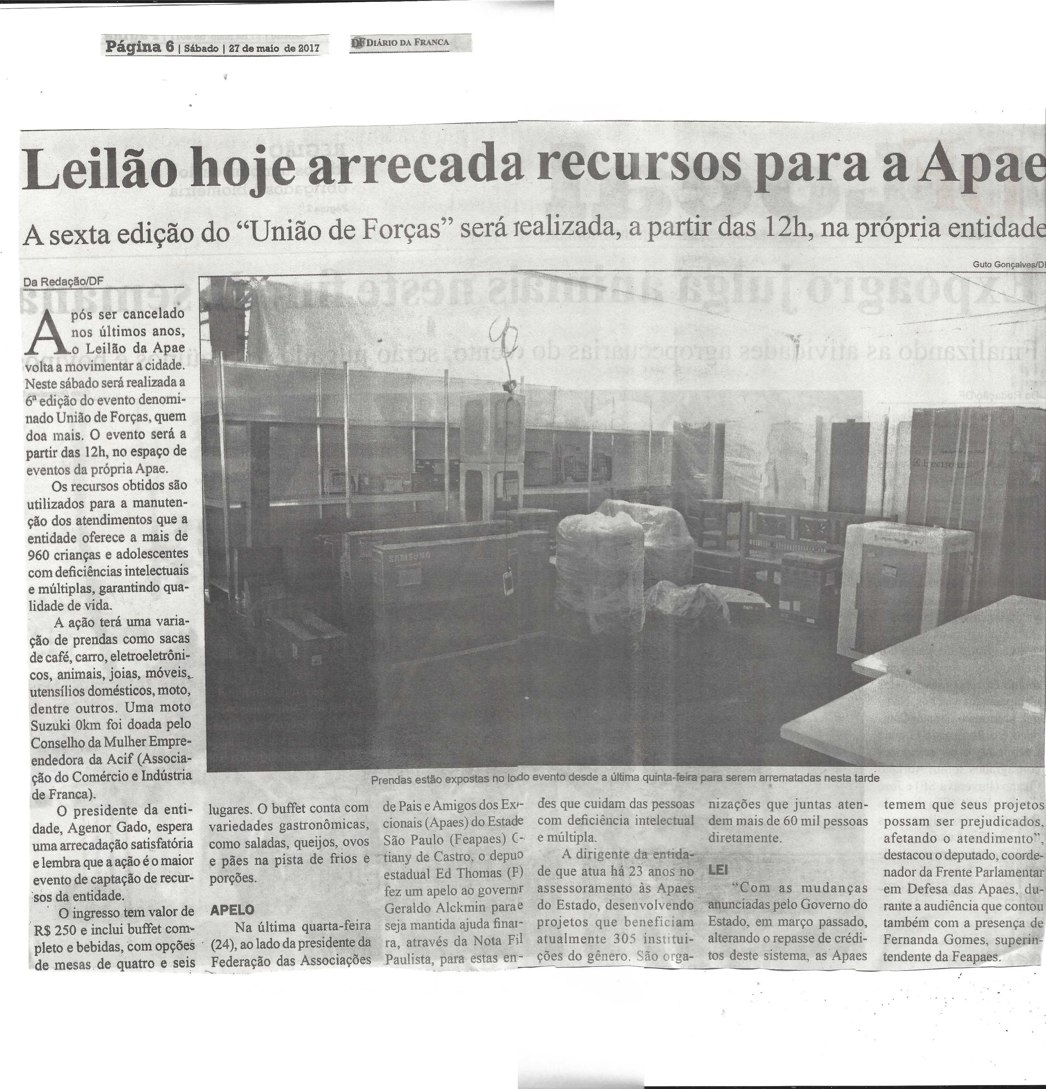 06/08/16 - DIÁRIO DA FRANCA - Apae arrecada R$ 300 mil com Leilão União de Forças - 0608-d...