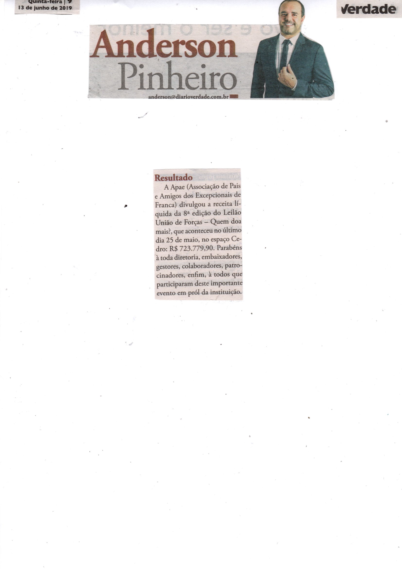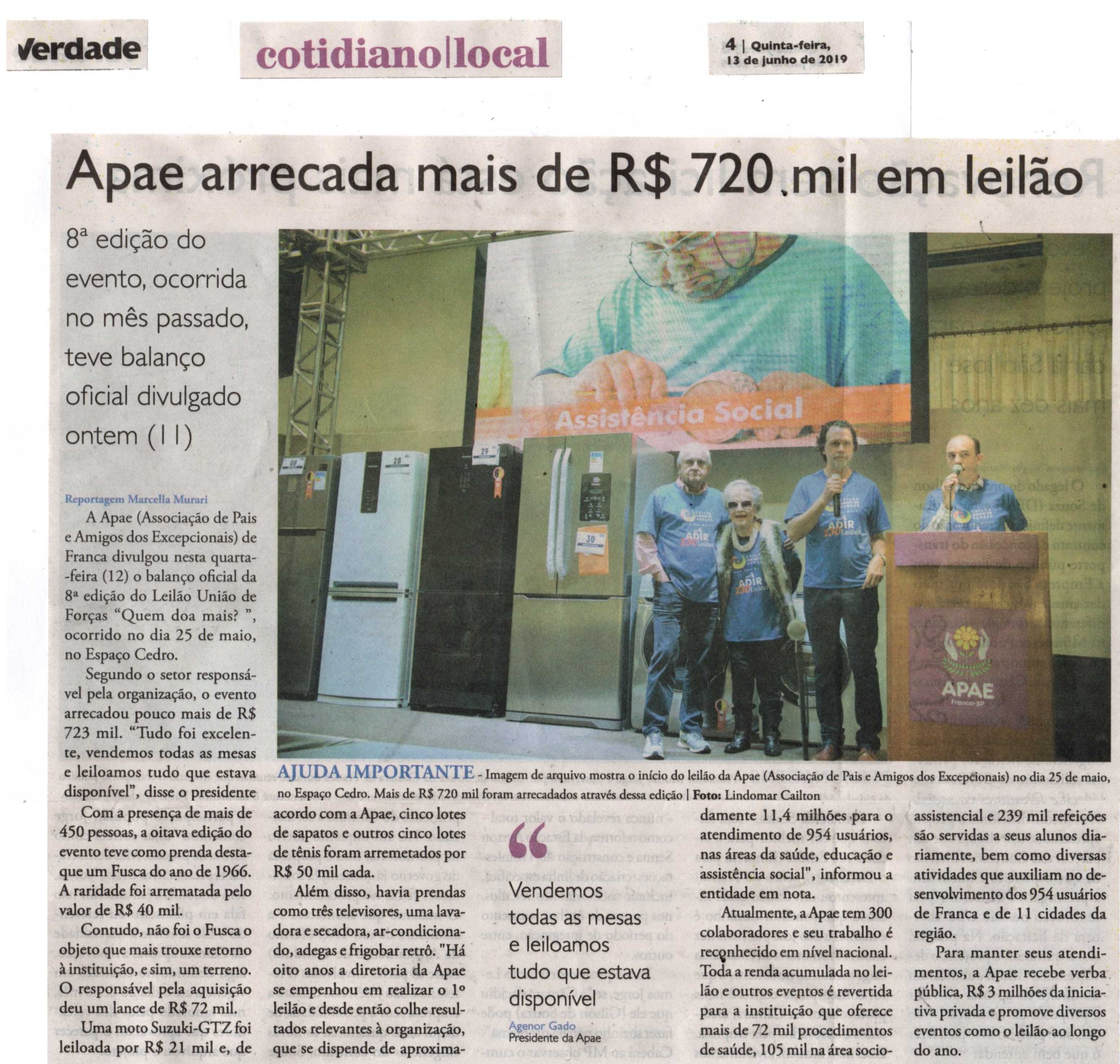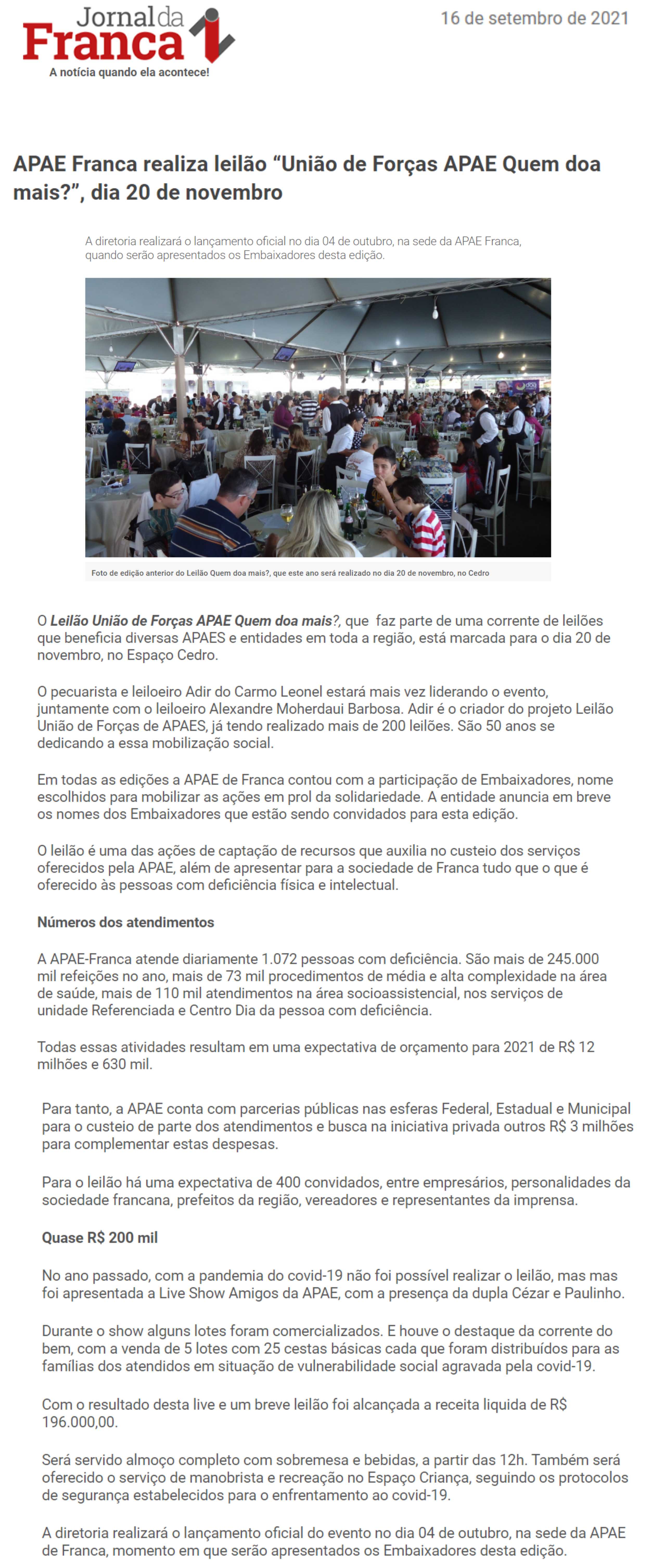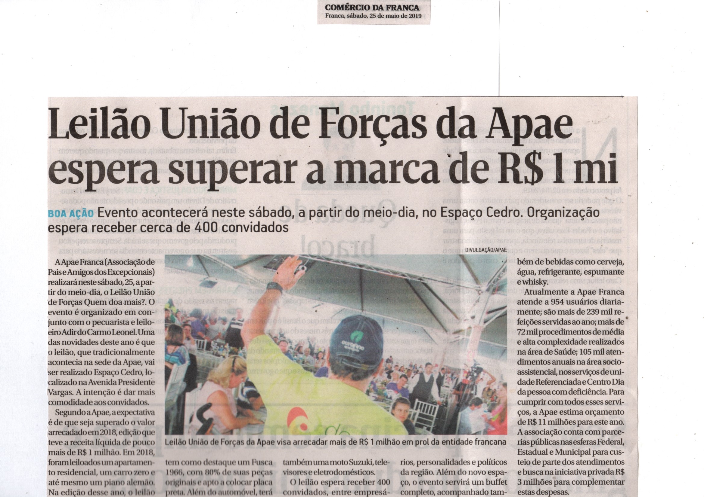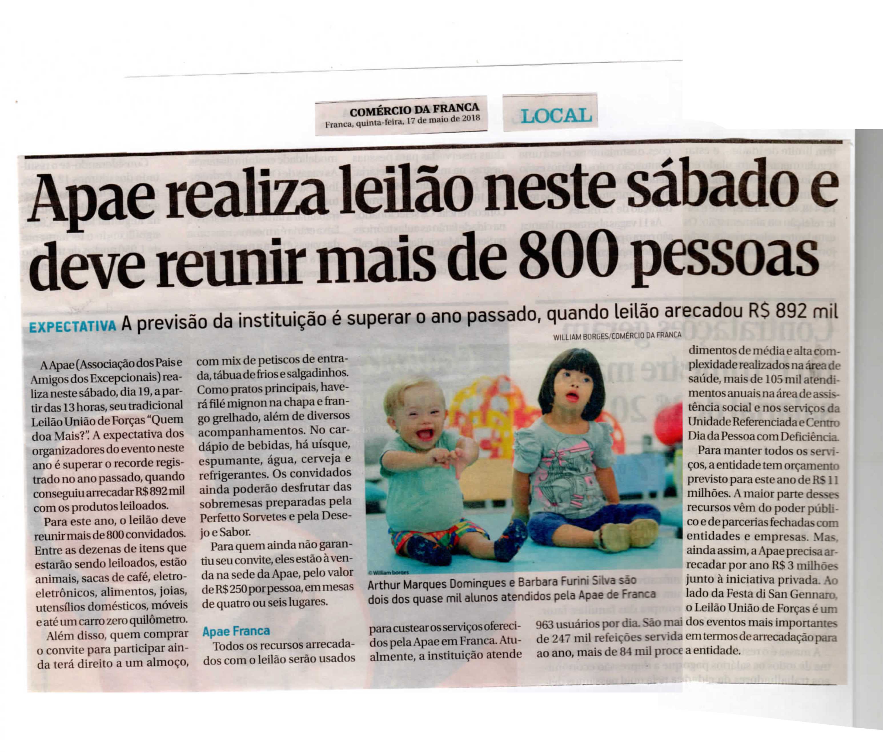 06/08/16 - DIÁRIO DA FRANCA - Apae arrecada R$ 300 mil com Leilão União de Forças - 0608-d...