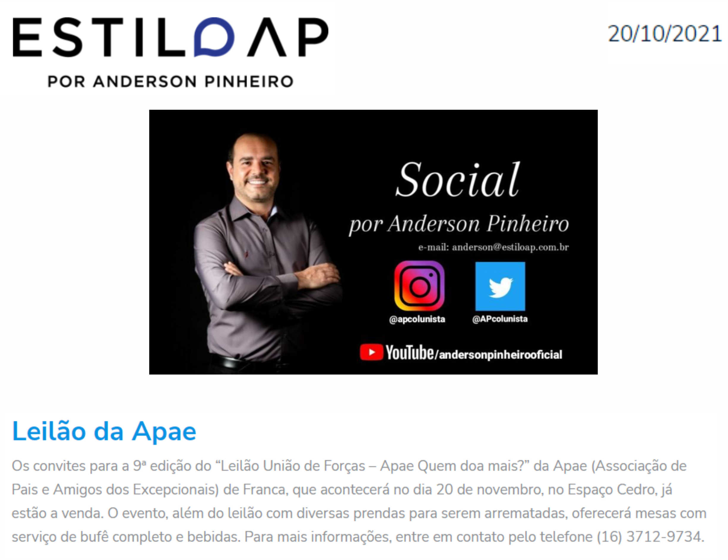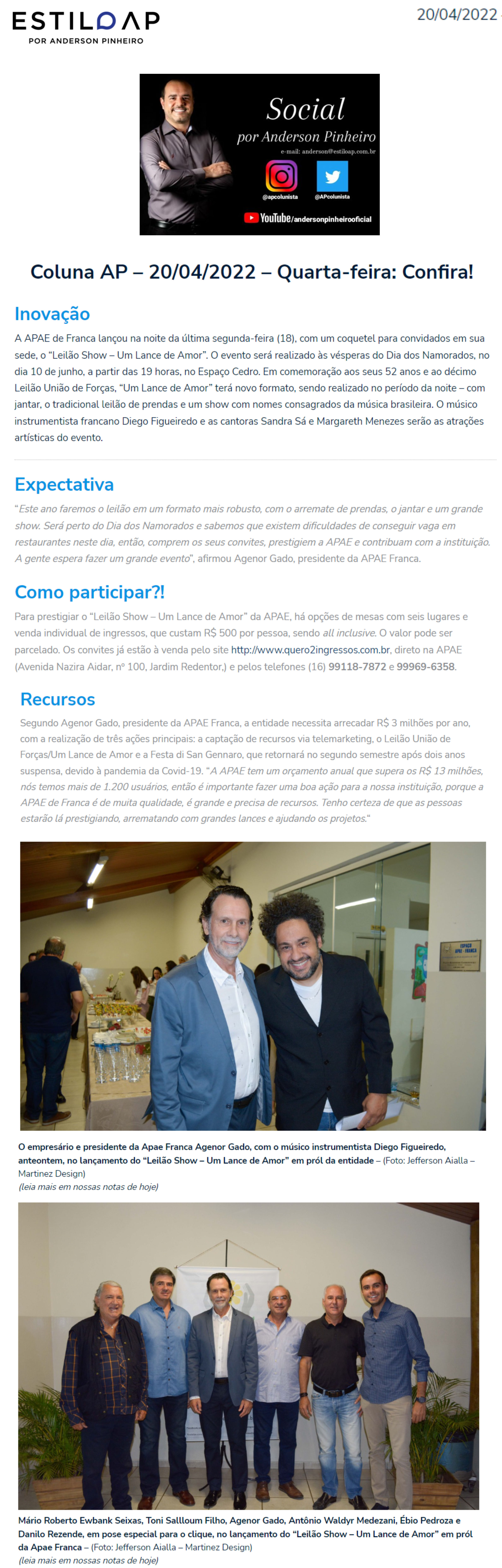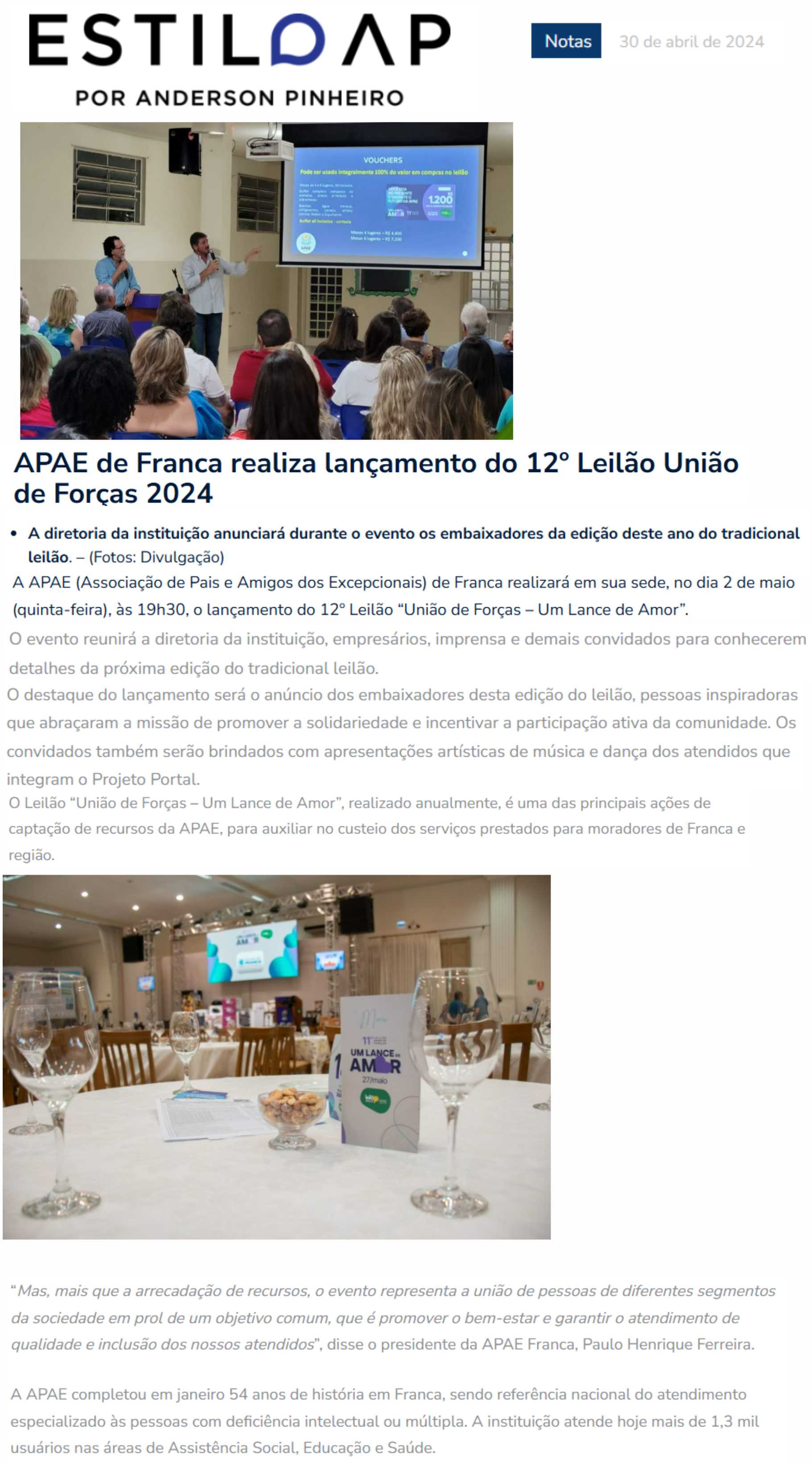 15.05.25 Estilo AP APAE Franca promove 13º Leilão Um Lance de Amor para ampliar atendiment...