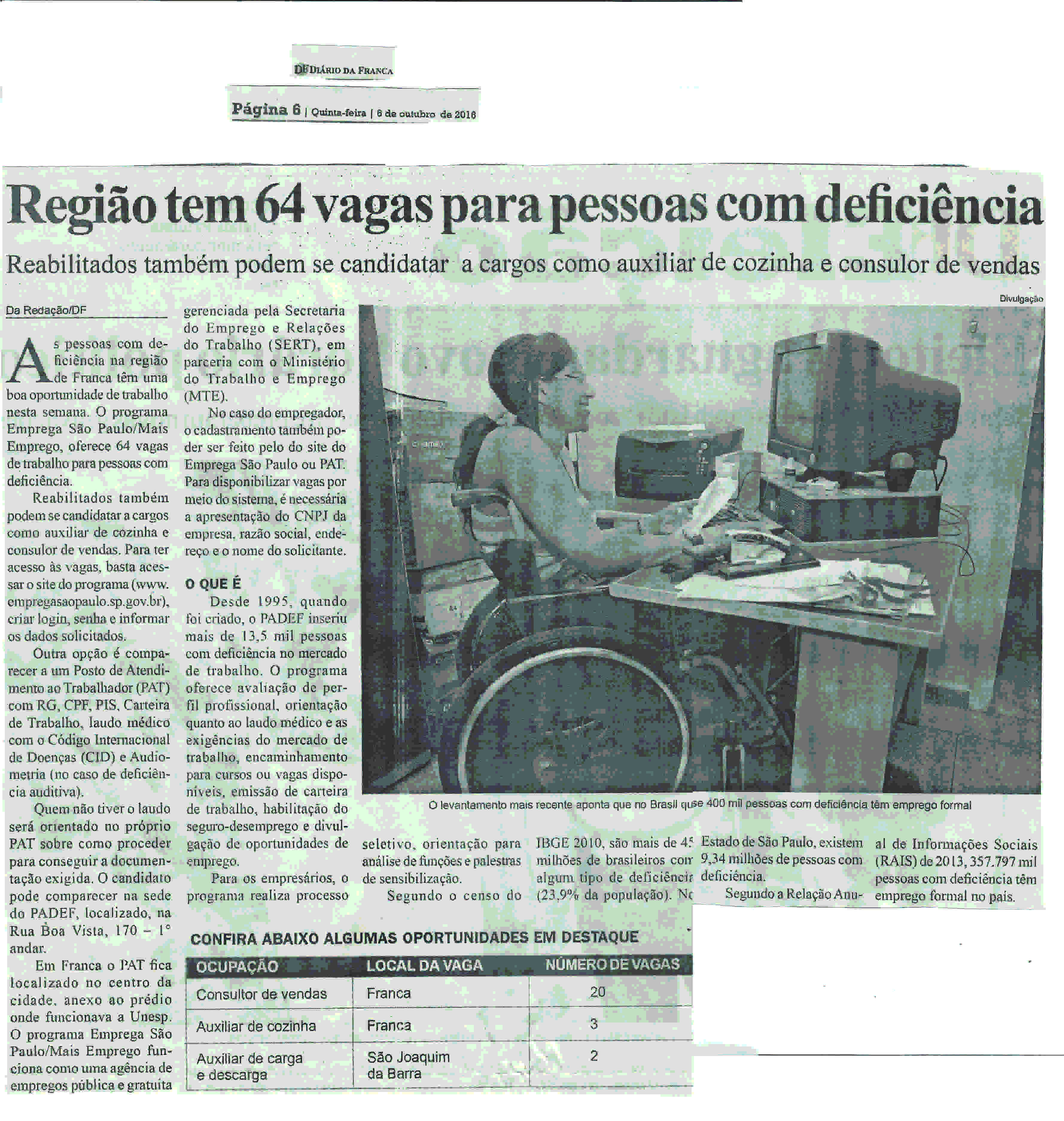06/08/16 - DIÁRIO DA FRANCA - Francanos terão mais academias para deficientes - 0608-diari...