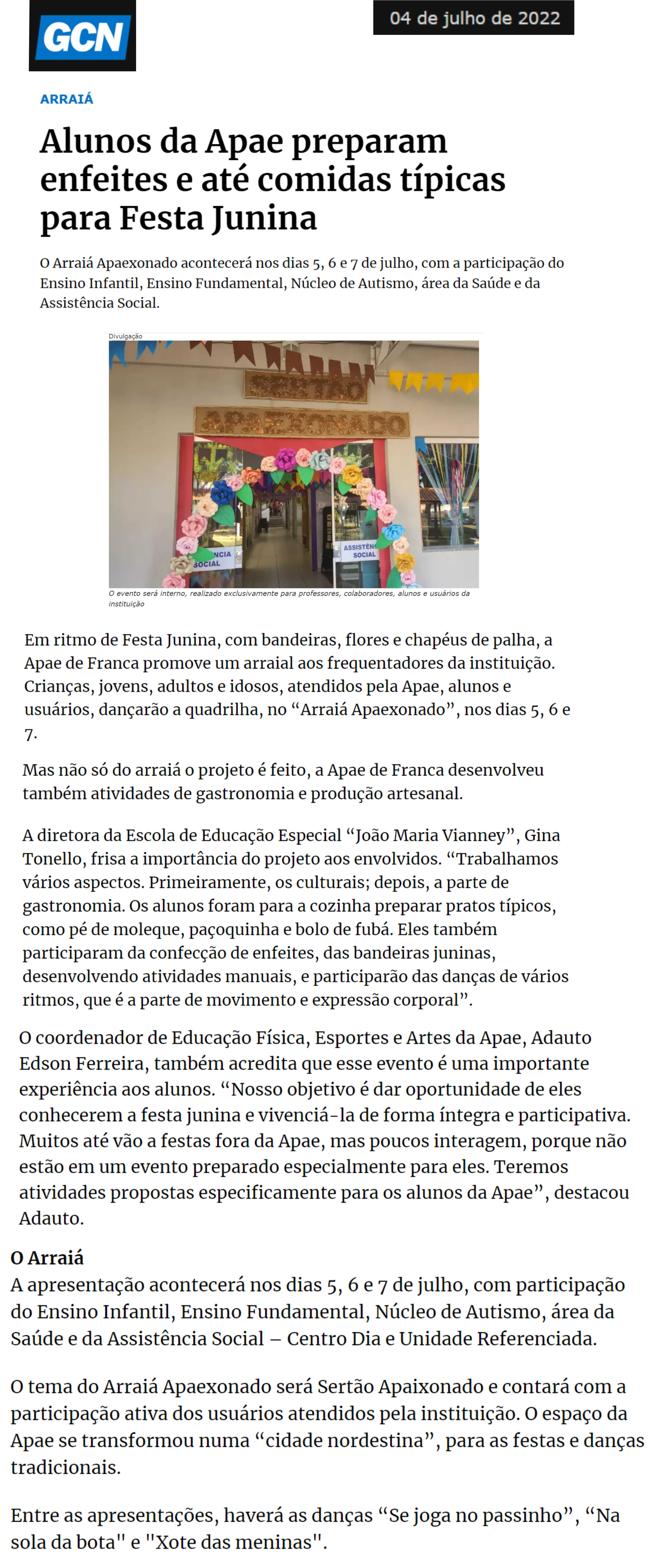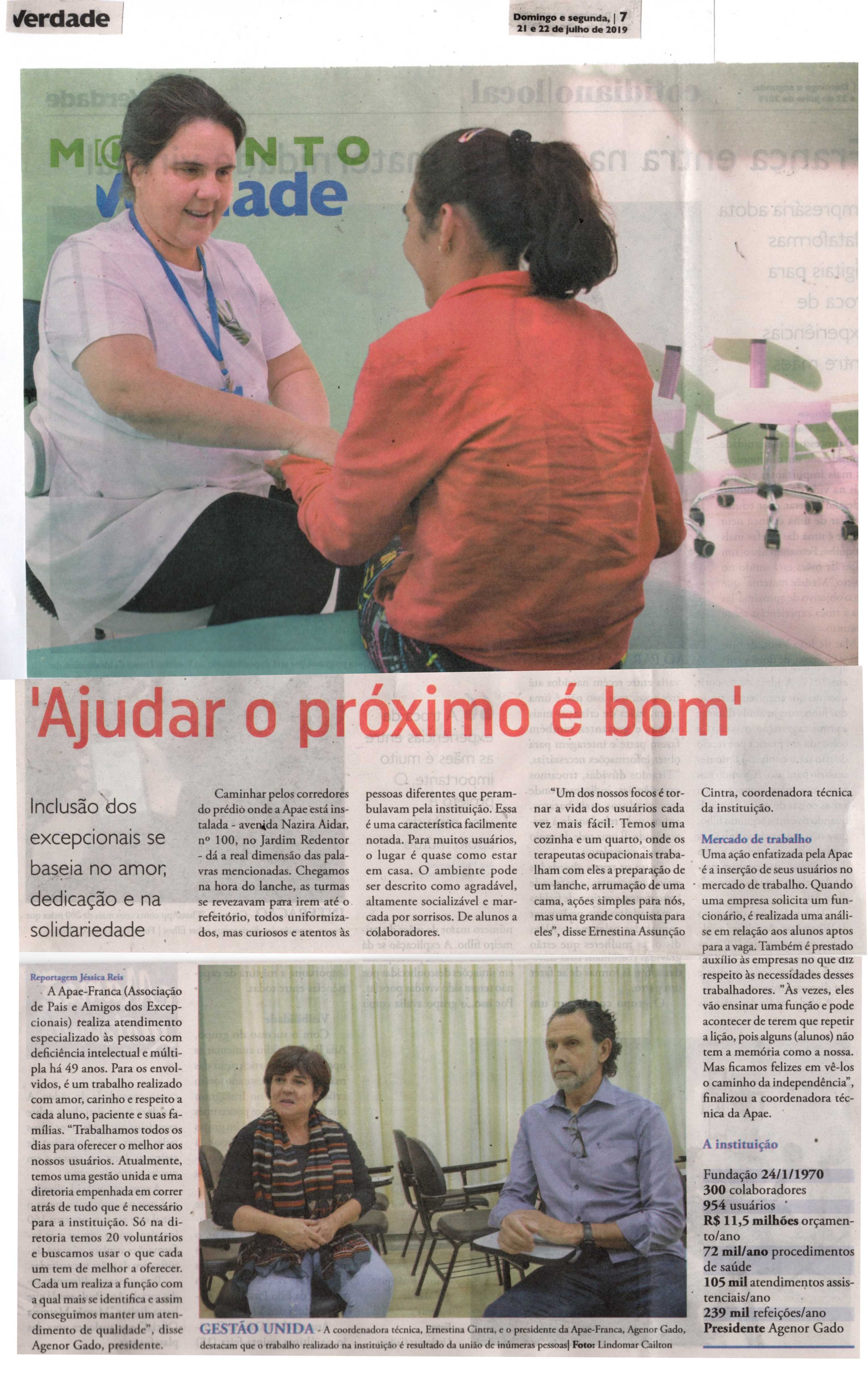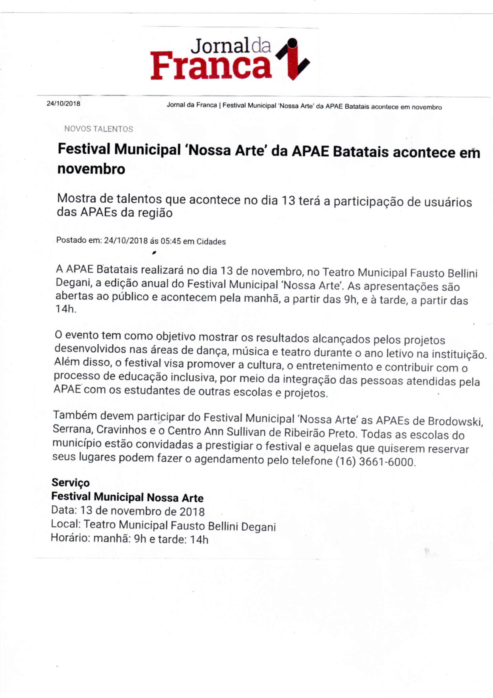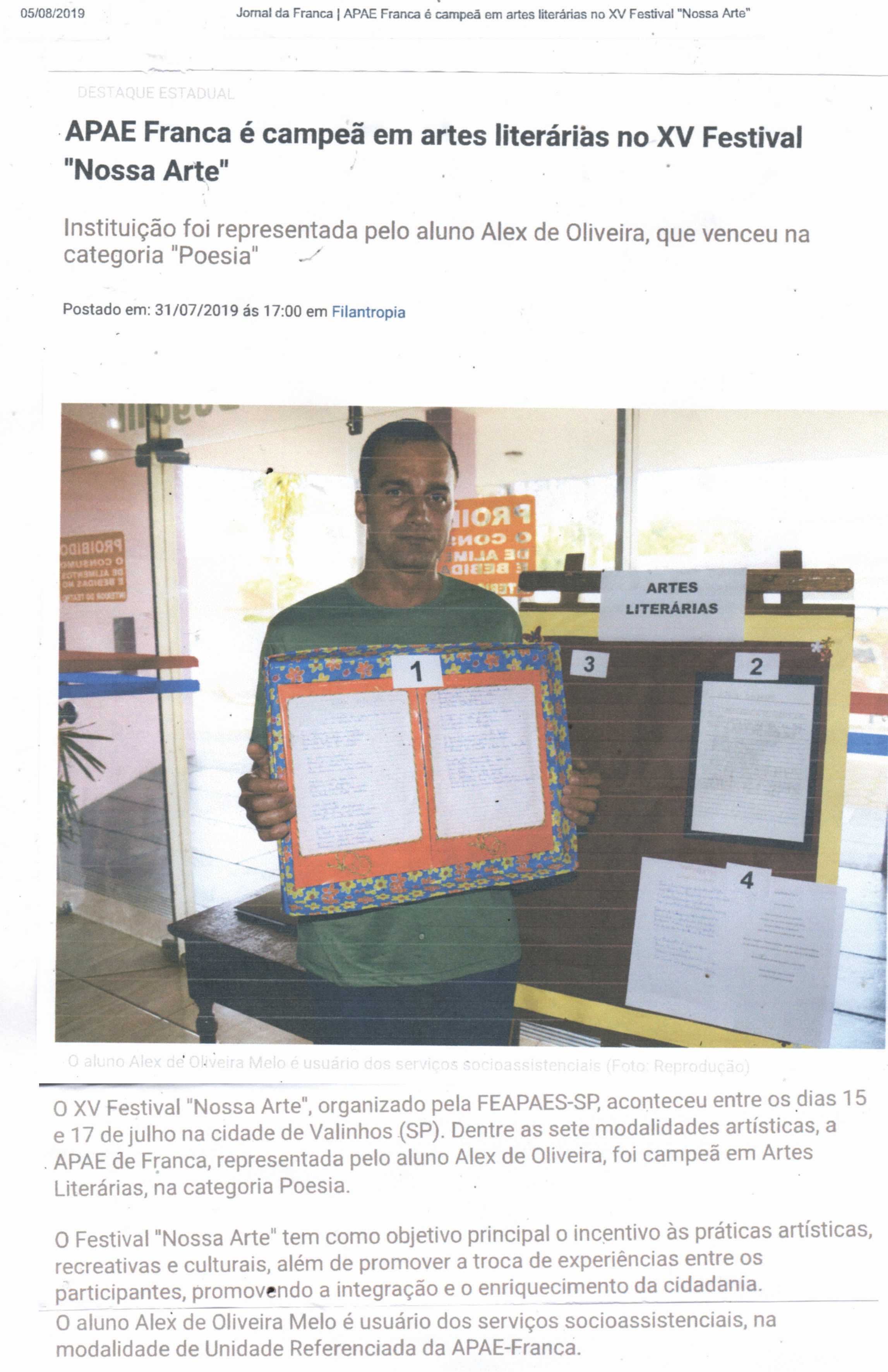 20/07/16 - DIÁRIO DA FRANCA - Apae participará de um festival estadual de artes - 2007-dia...