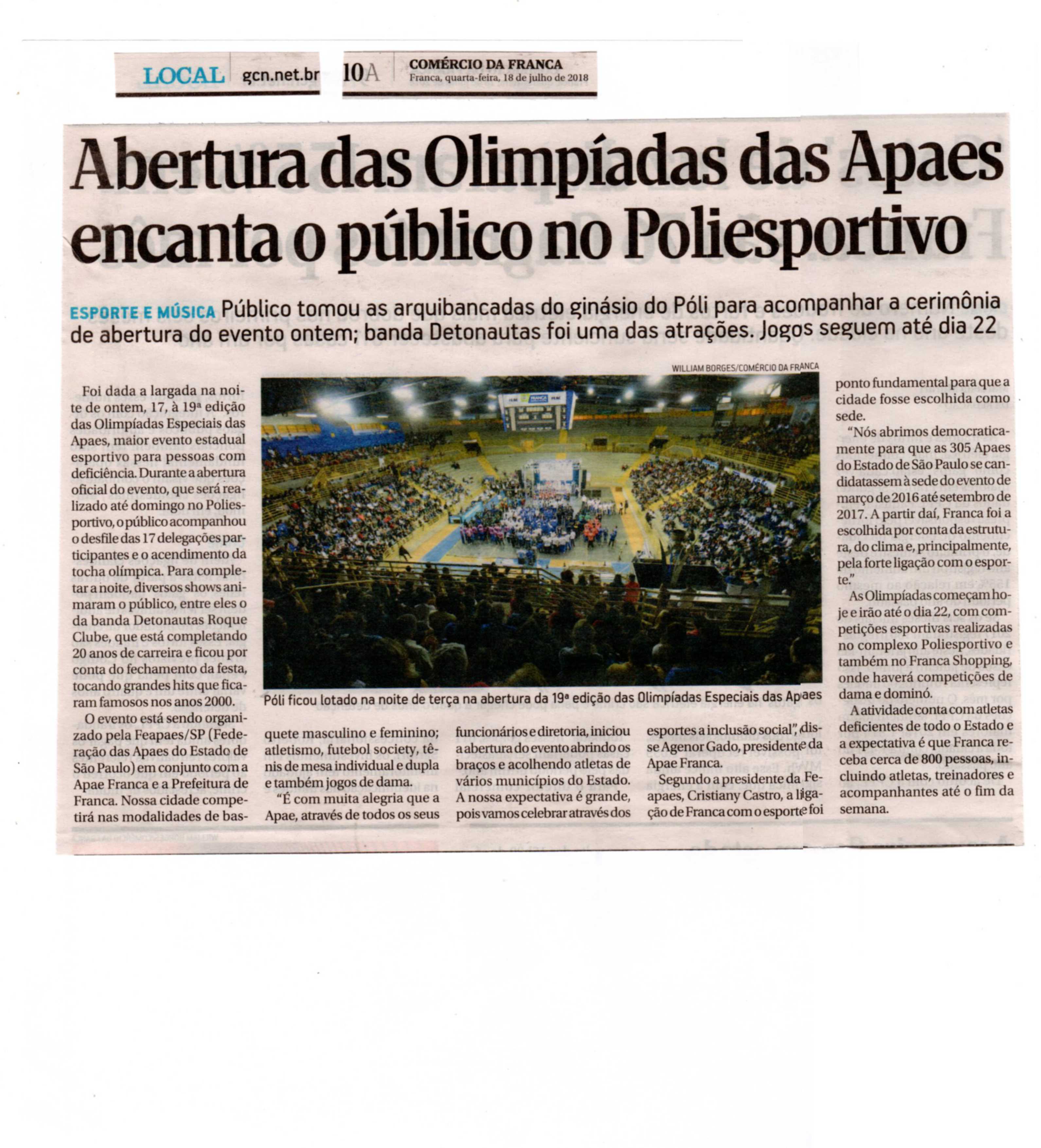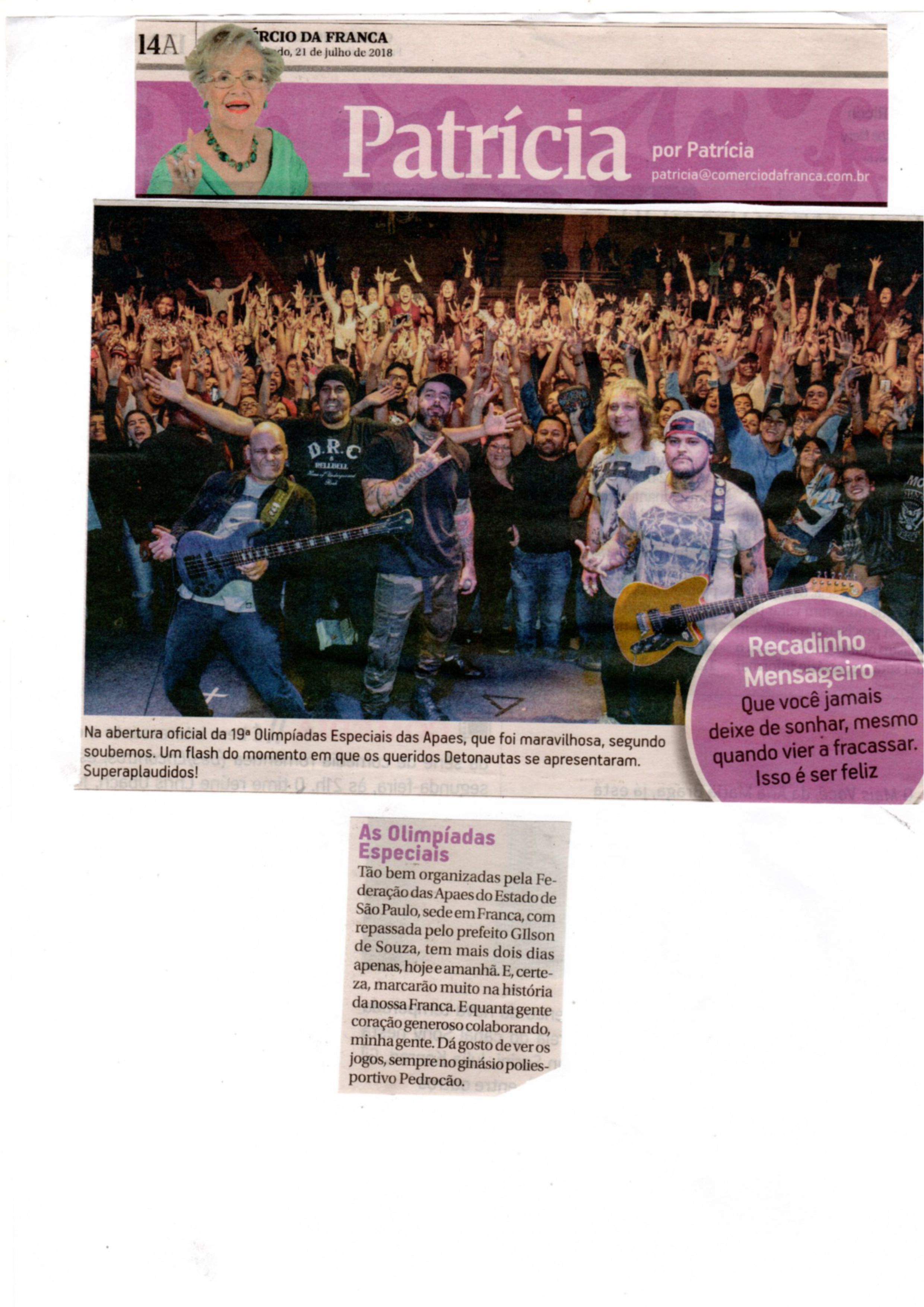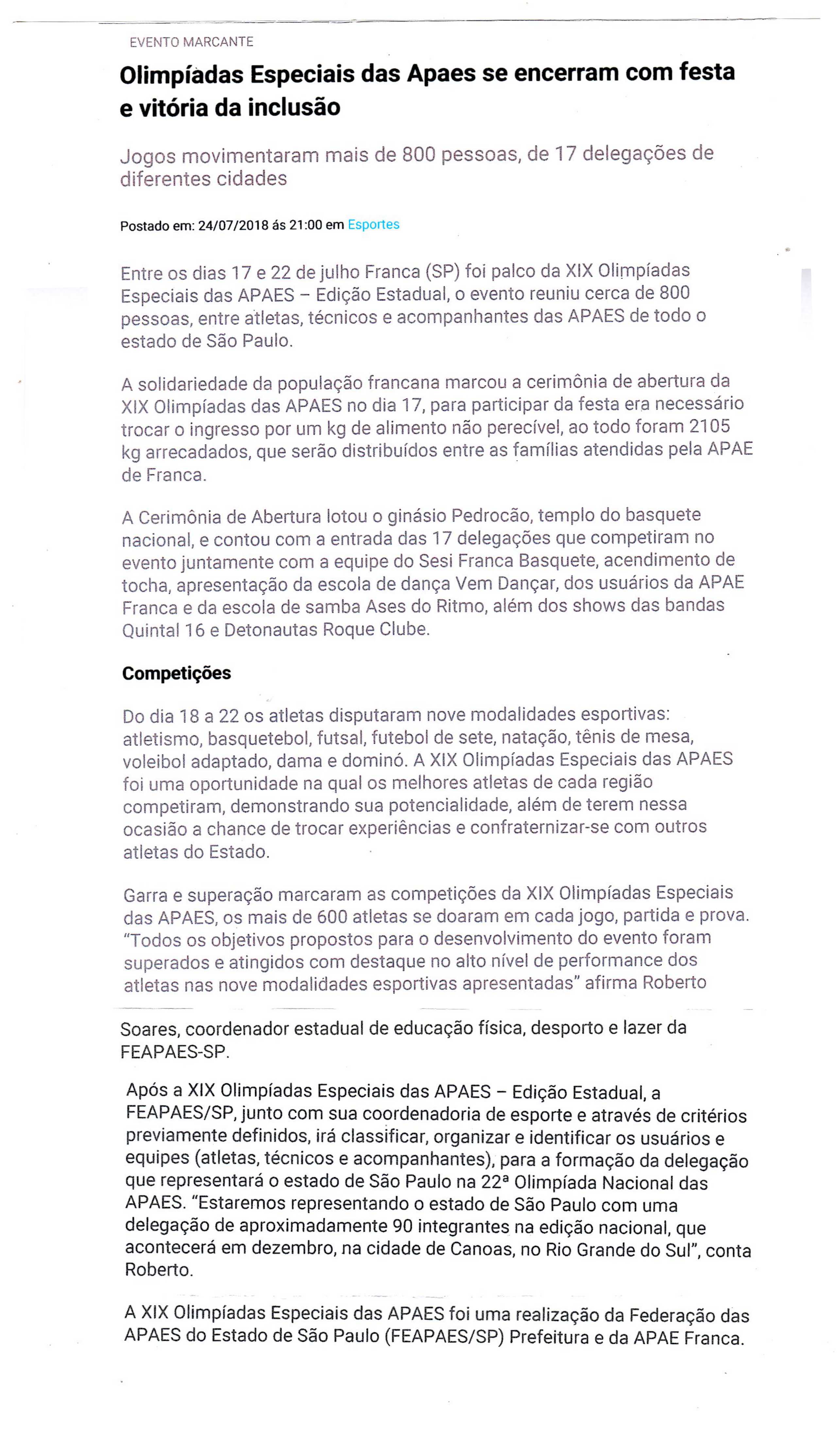 15/07/16 - JORNAL DA FRANCA - Apaes de Patrocínio Paulista e Batatais participam de Festiv...