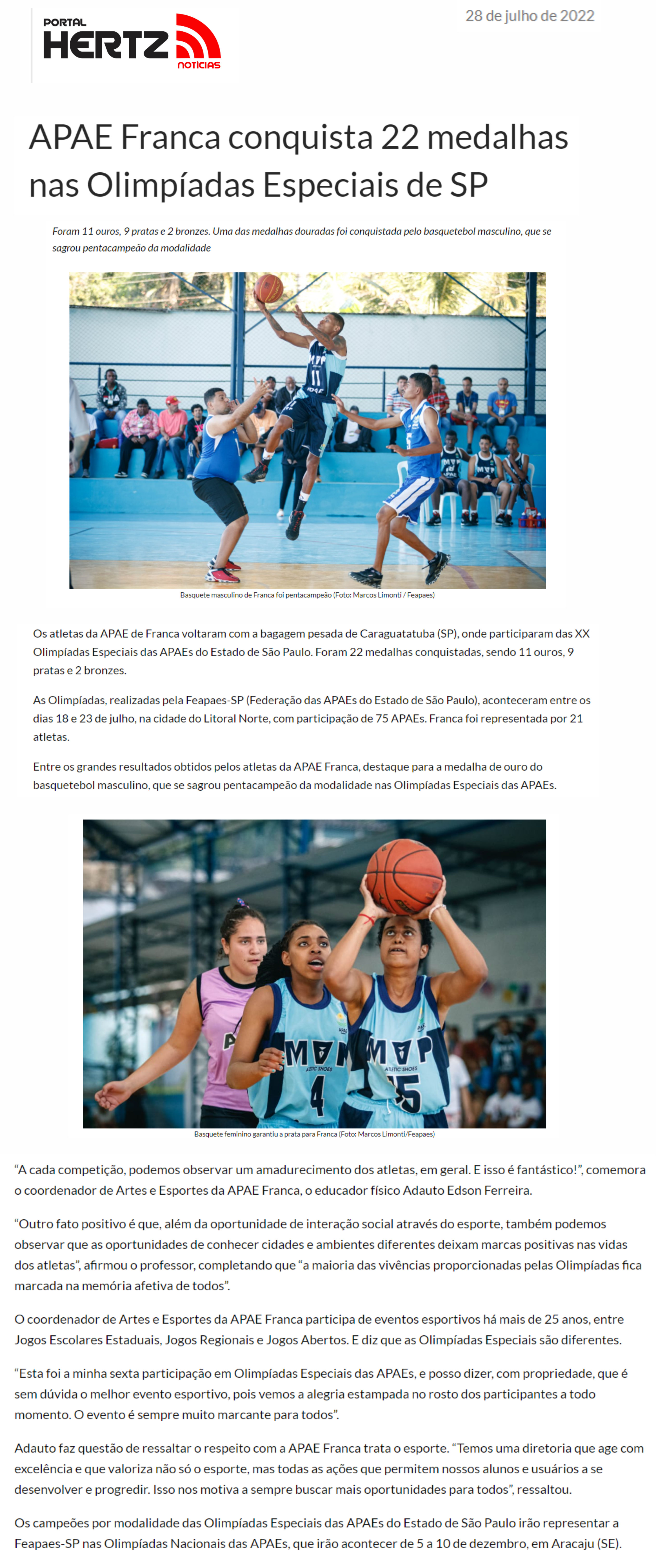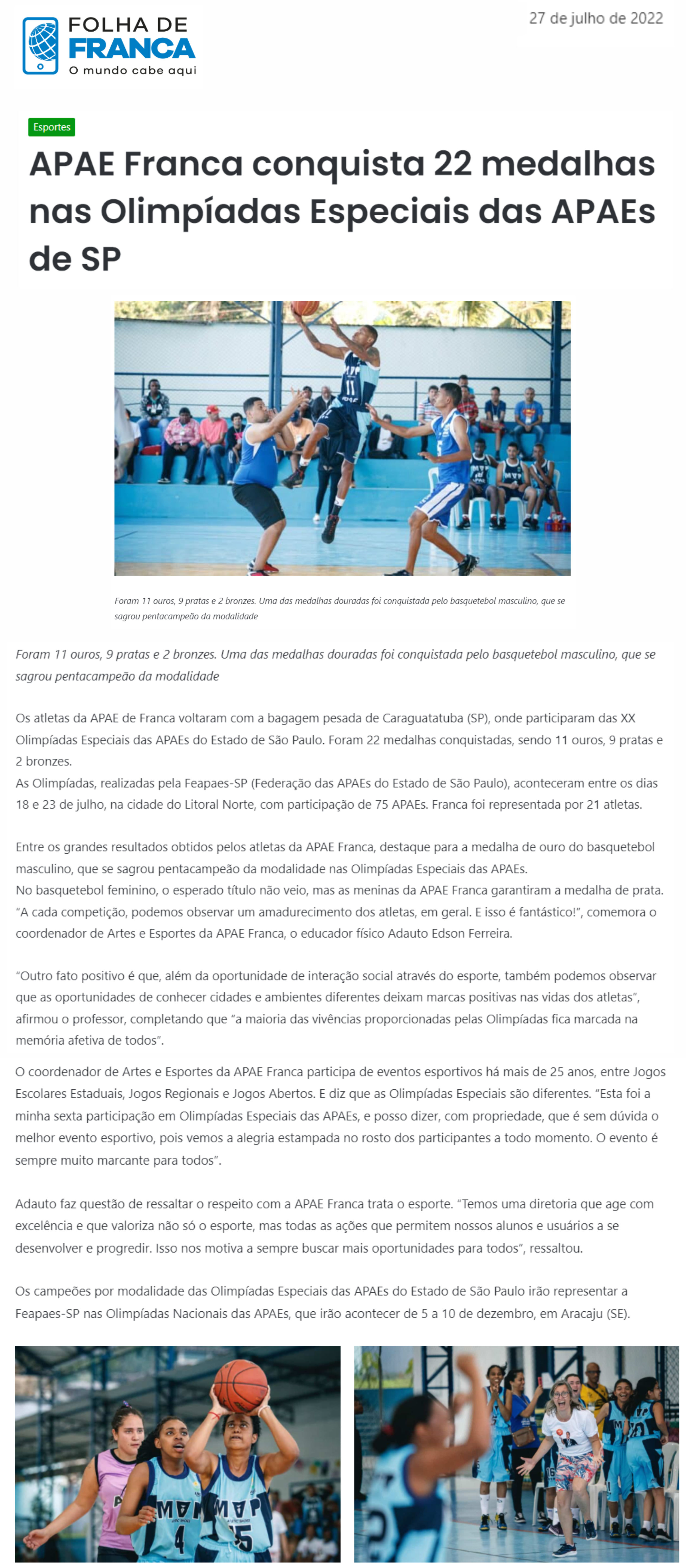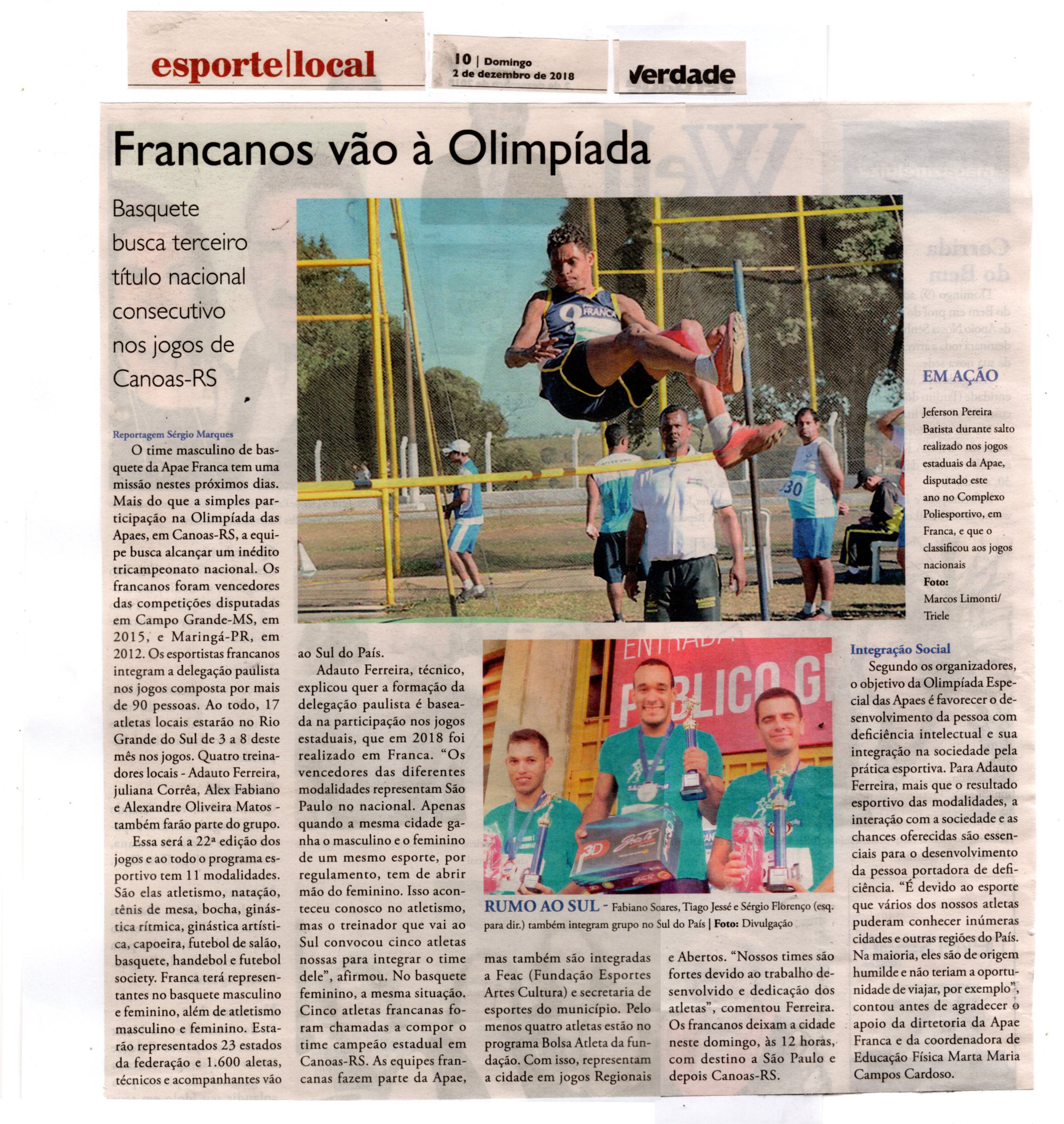 15/07/16 - JORNAL DA FRANCA - Apaes de Patrocínio Paulista e Batatais participam de Festiv...
