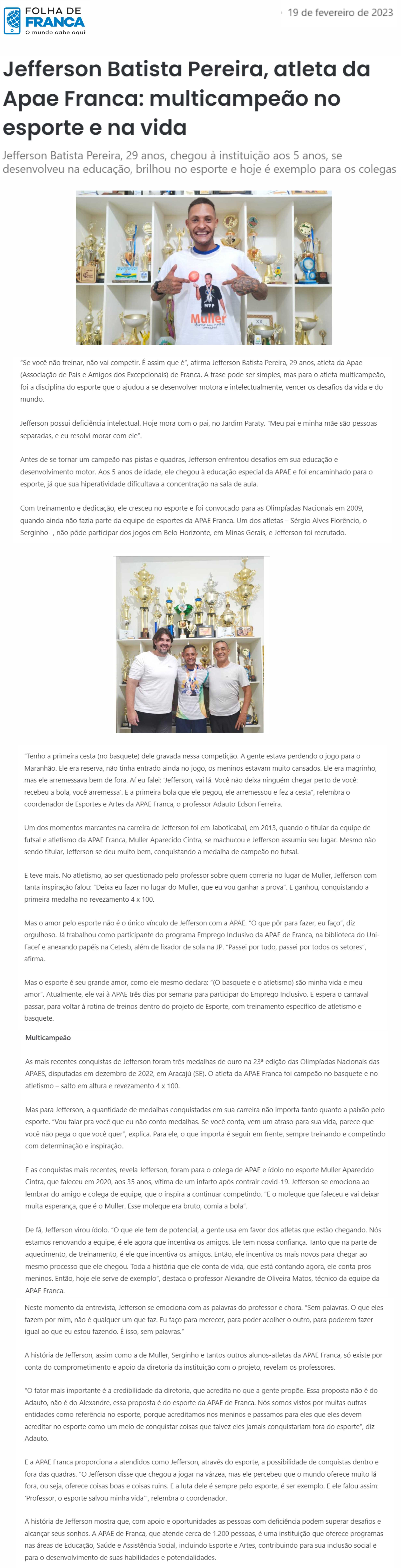 24.06.25 Vi No Site APAE Franca recebe uniformes e equipamentos esportivos para participaç...