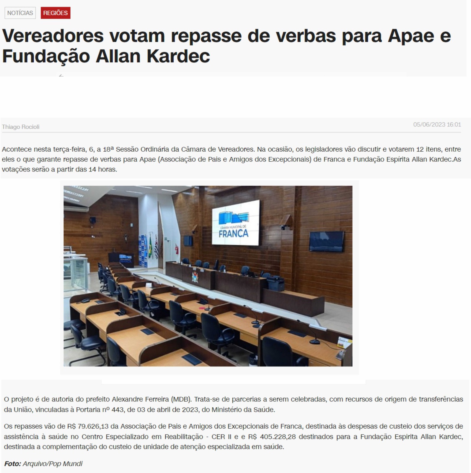 23/01/16 - DIÁRIO DA FRANCA - Projeto de repasses às entidades é adiado - 2301-projeto-de...