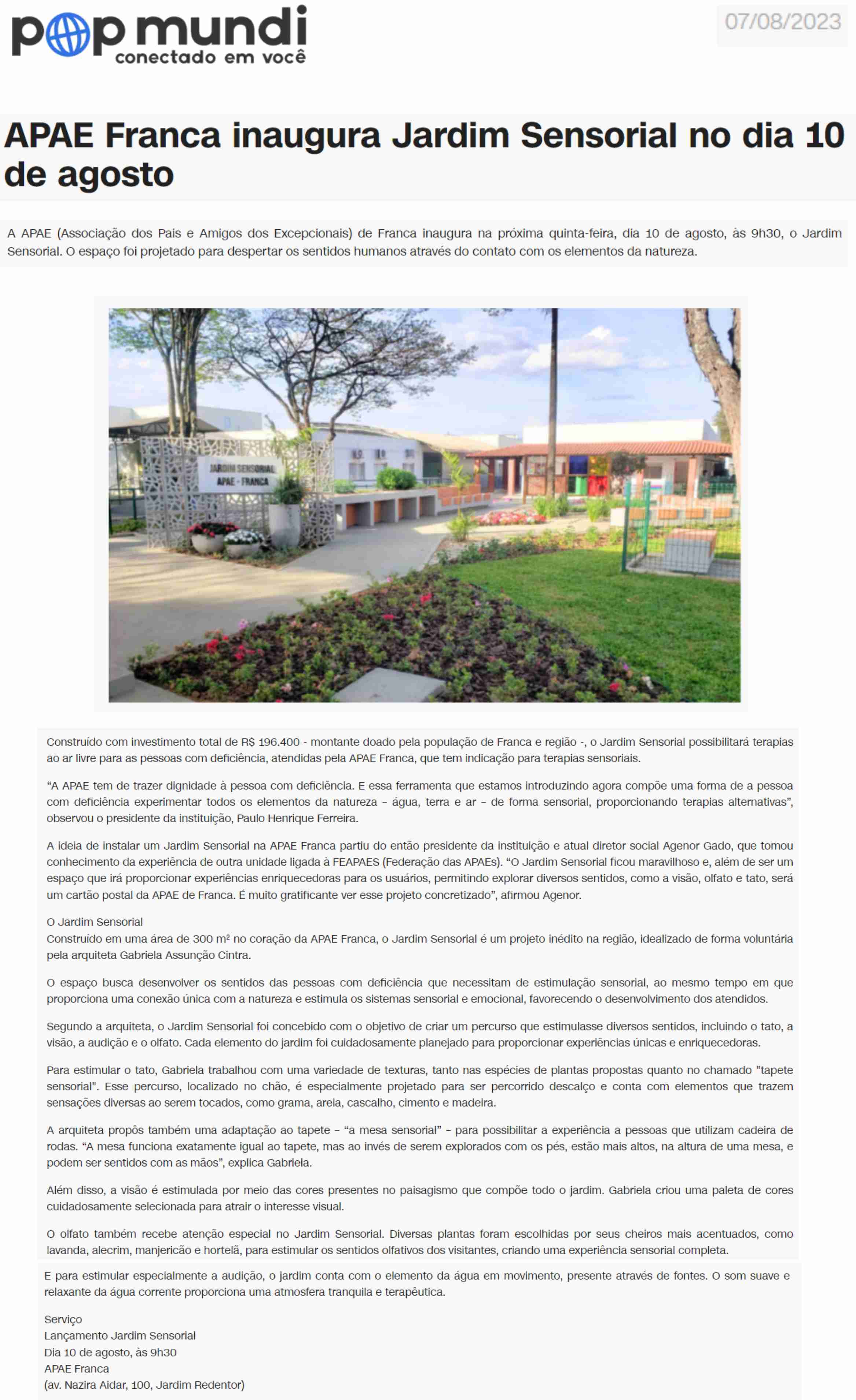 24.07.25 Pop Mundi APAE Franca amplia cuidados na primeira infância com projeto de prevenç...