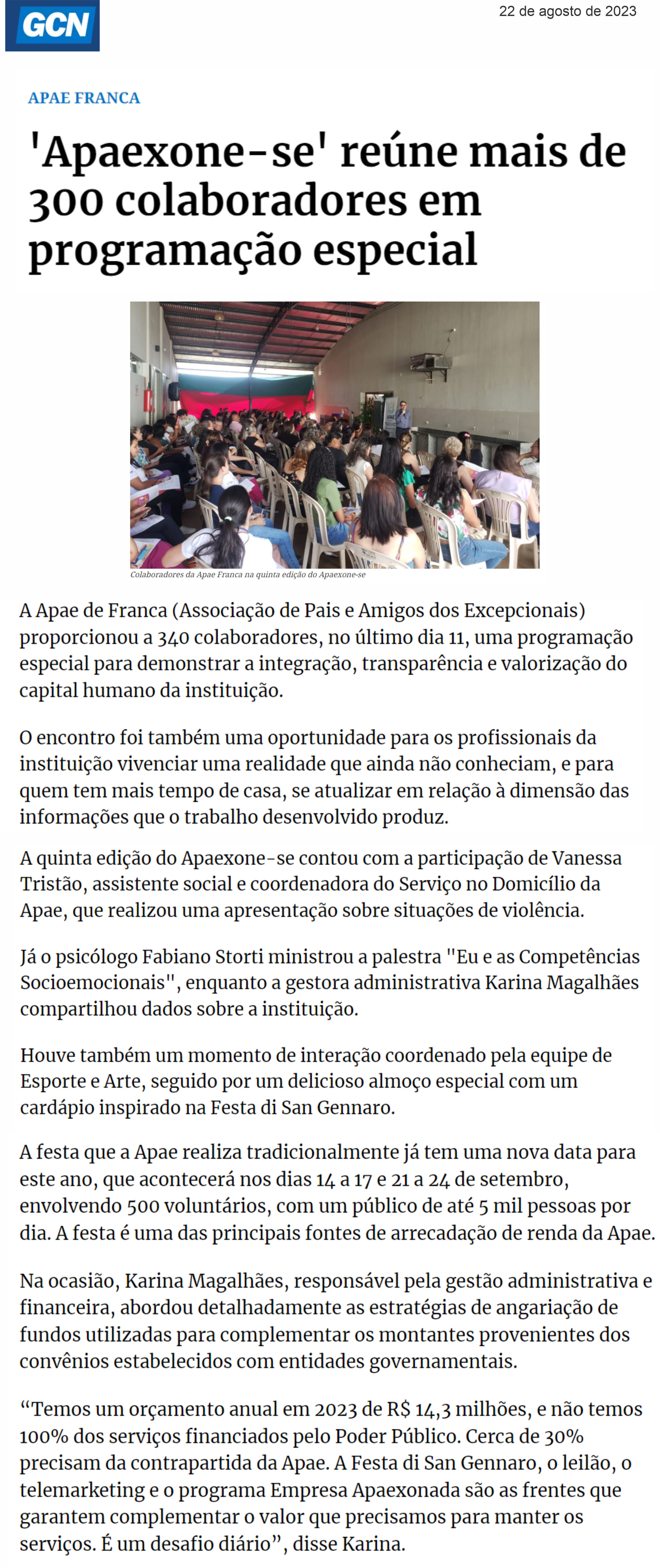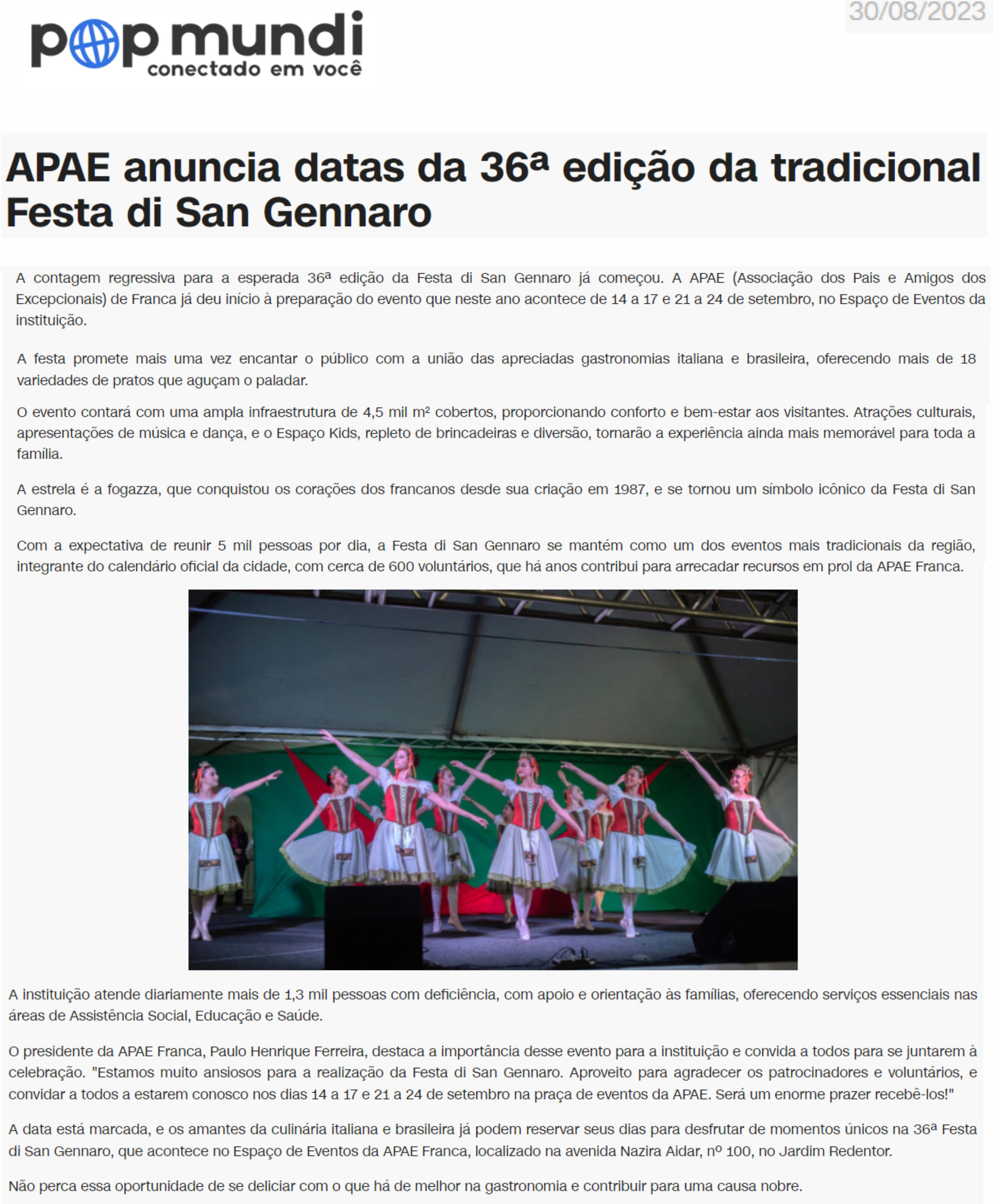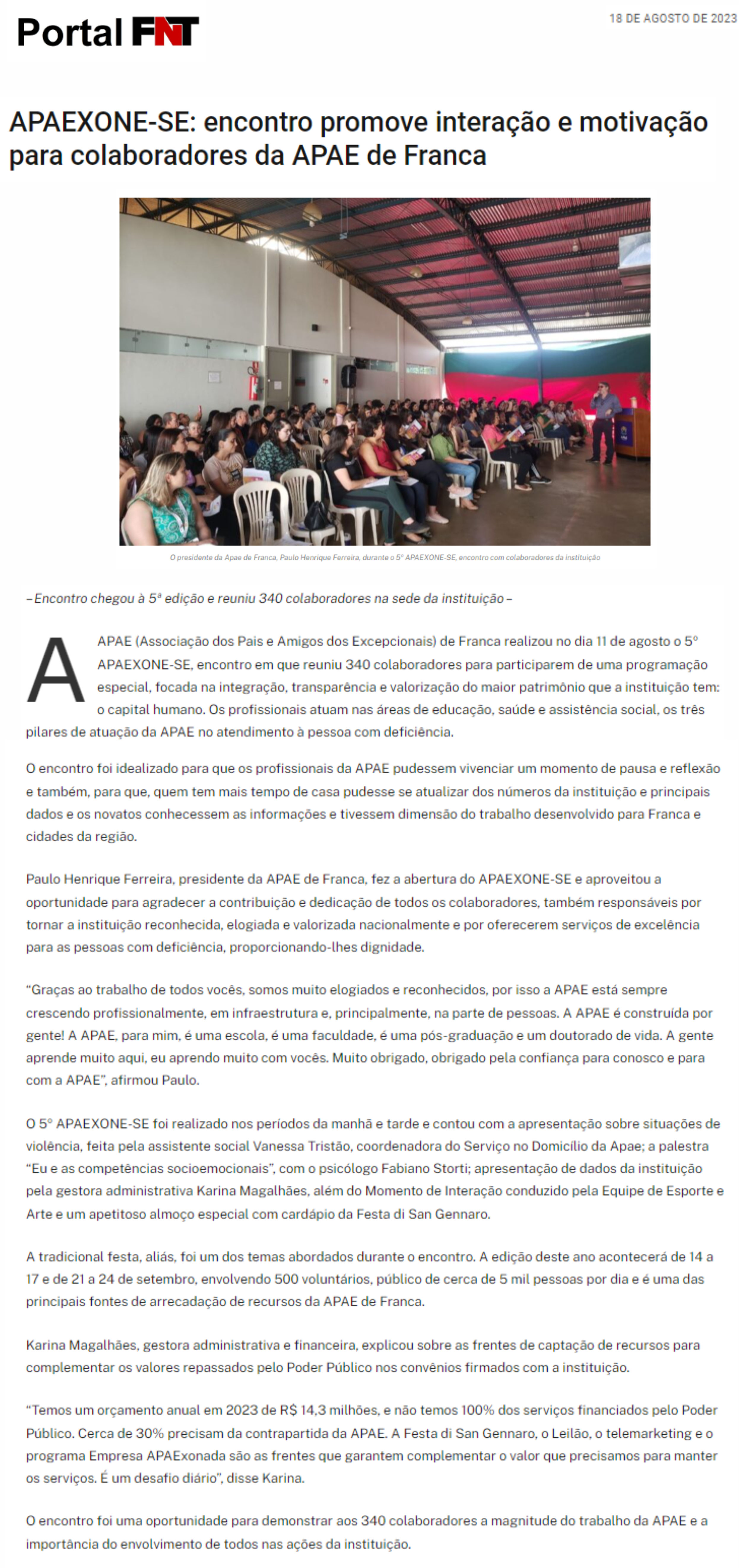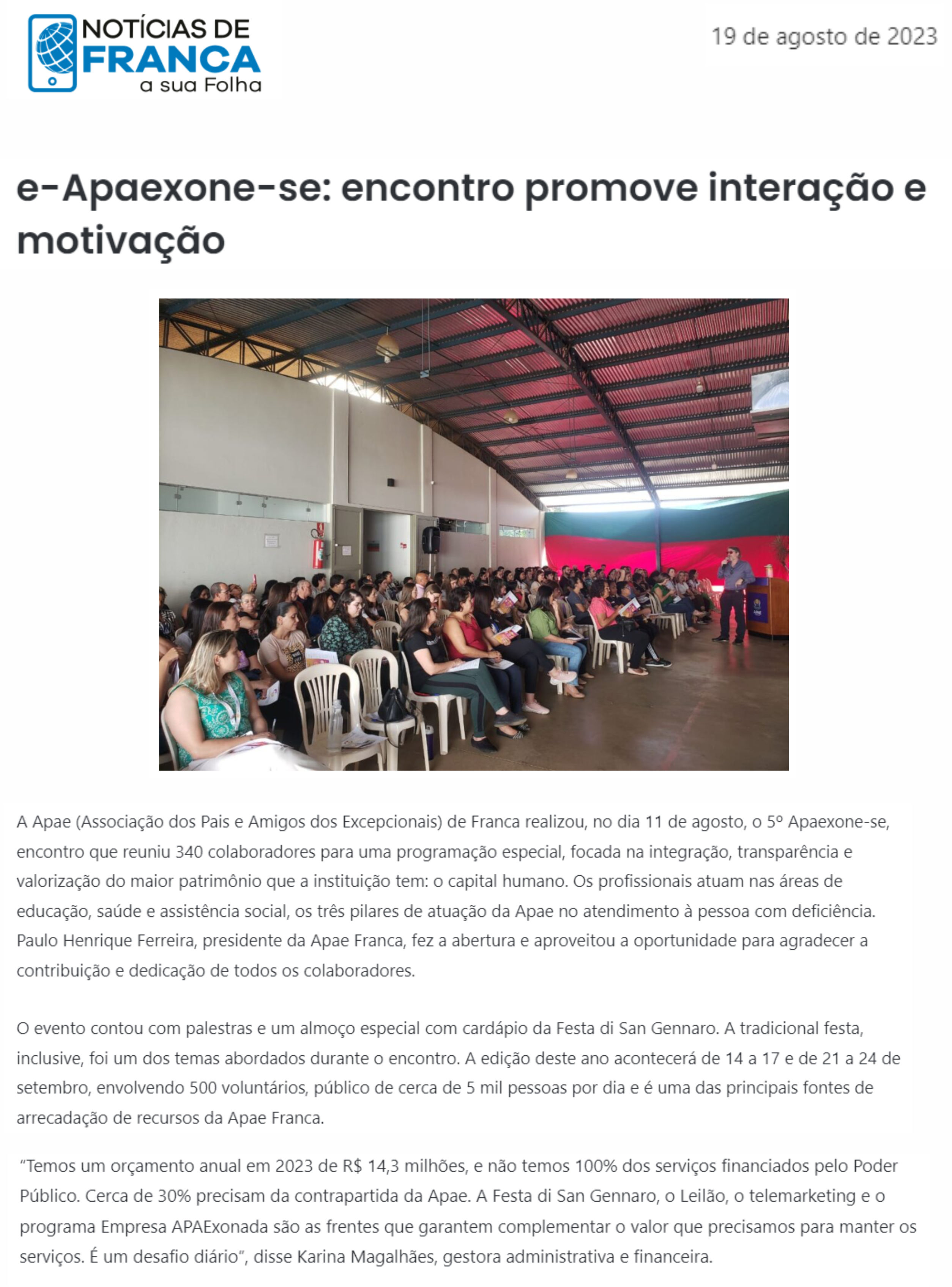 20.08.25 portal fnt APAE Franca realiza Festa di San Gennaro em setembro com novidades e s...