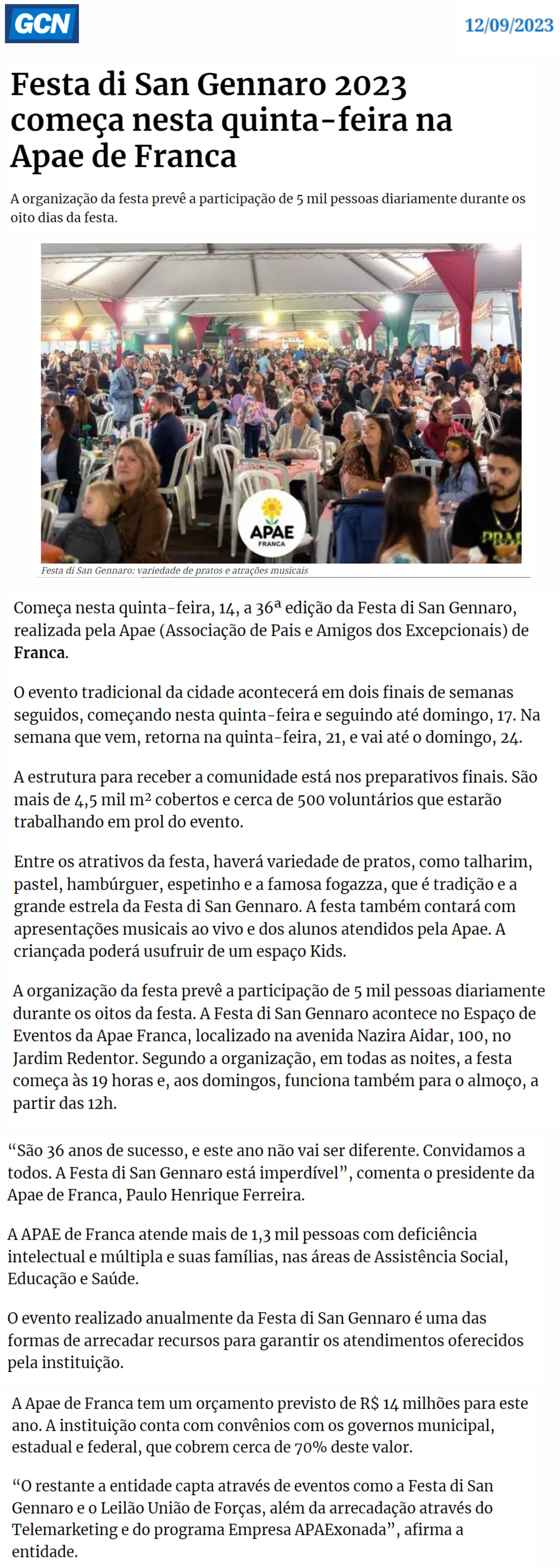 18.09.2025 GCN Sampi Franca Sabor e solidariedade San Gennaro da APAE começa nesta 5ª - 2...