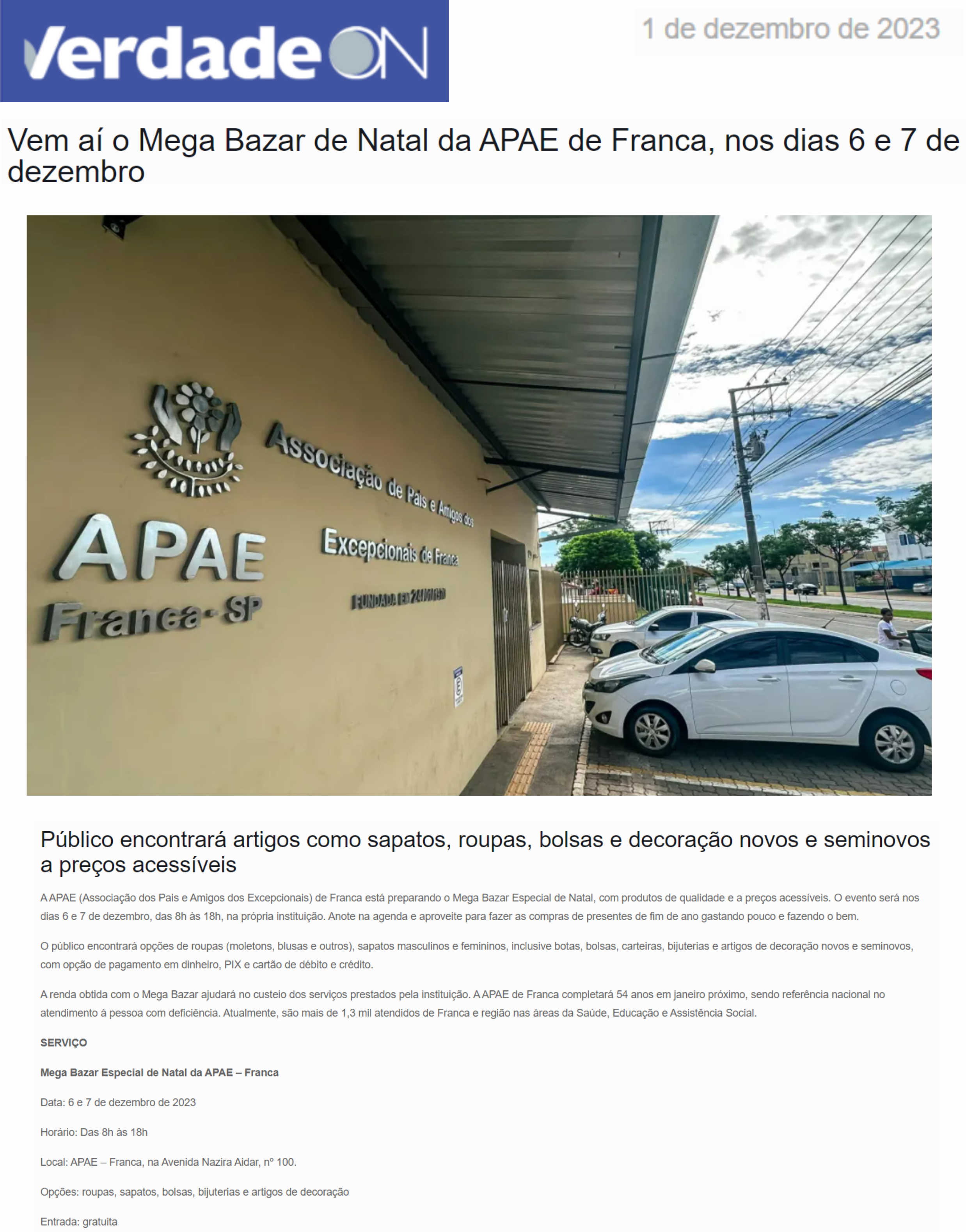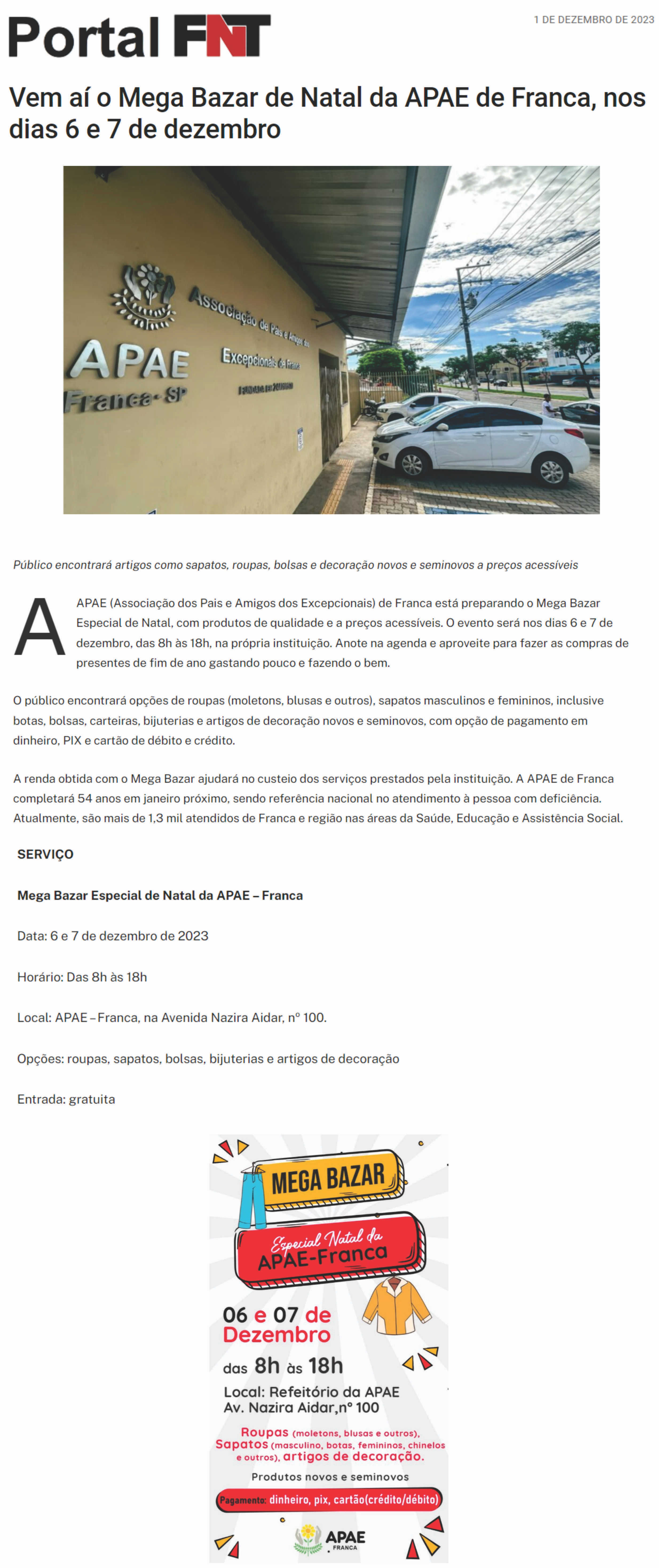 25.11.25 Vi no Site Mega Bazar de Natal da APAE Franca oferece compras solidárias com preç...