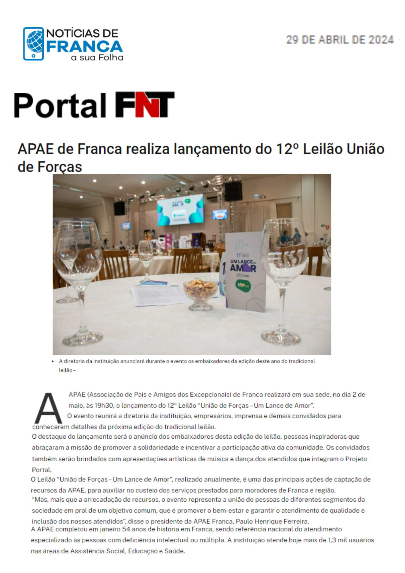 05.02.2025-Portal FNT - APAE Franca veja como contribuir e transformar vidas - 05022025-po...