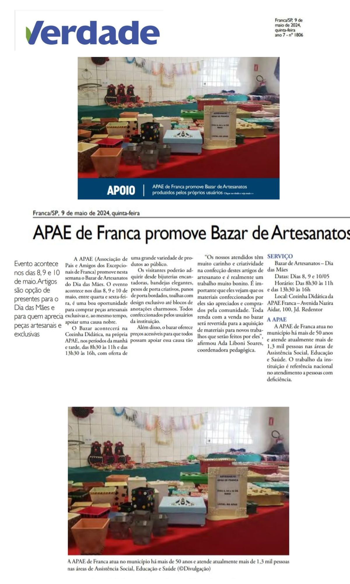 18/06/16 - DIÁRIO DA FRANCA - Apae recebe doações de prendas para o seu leilão - 1806-diar...