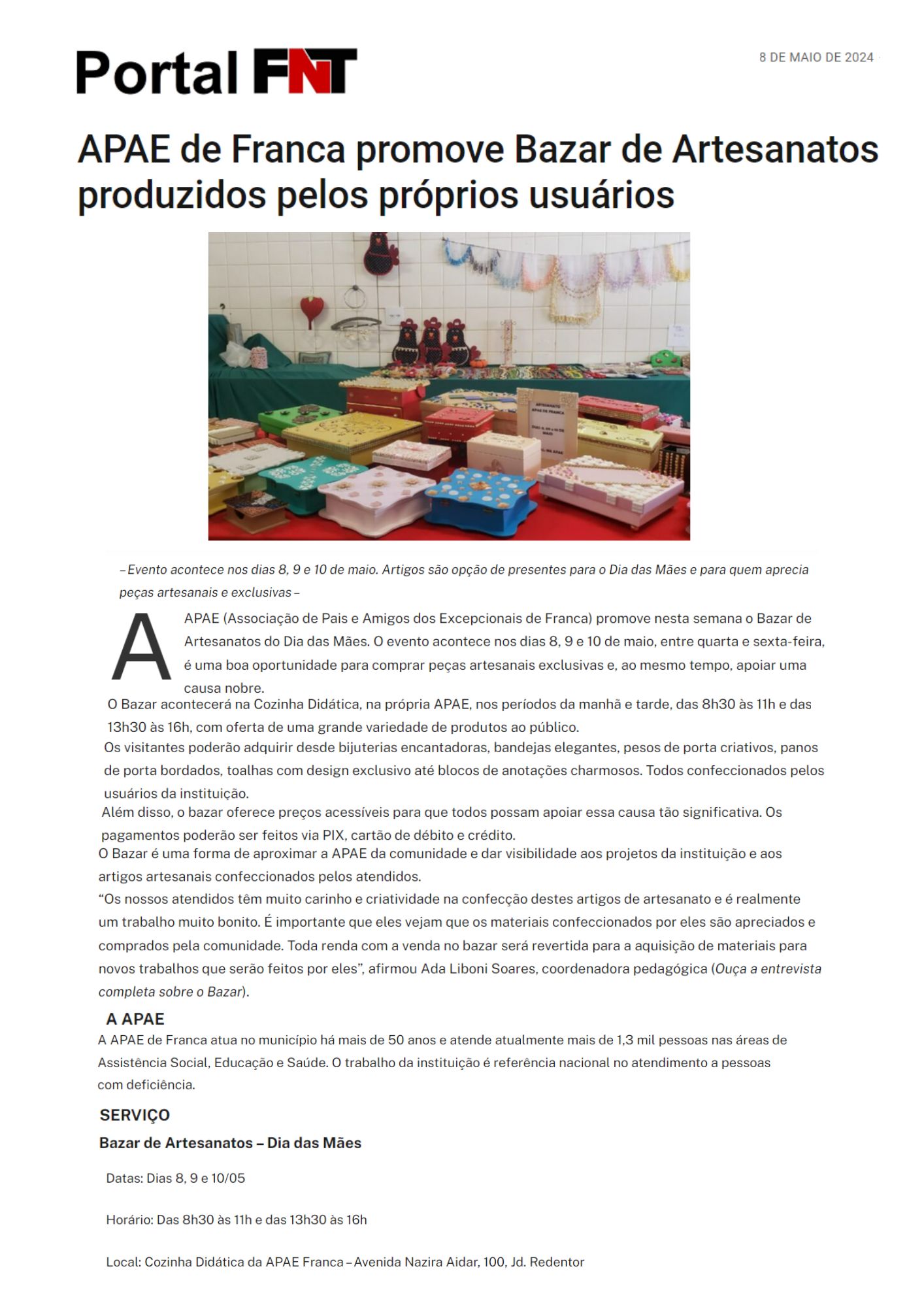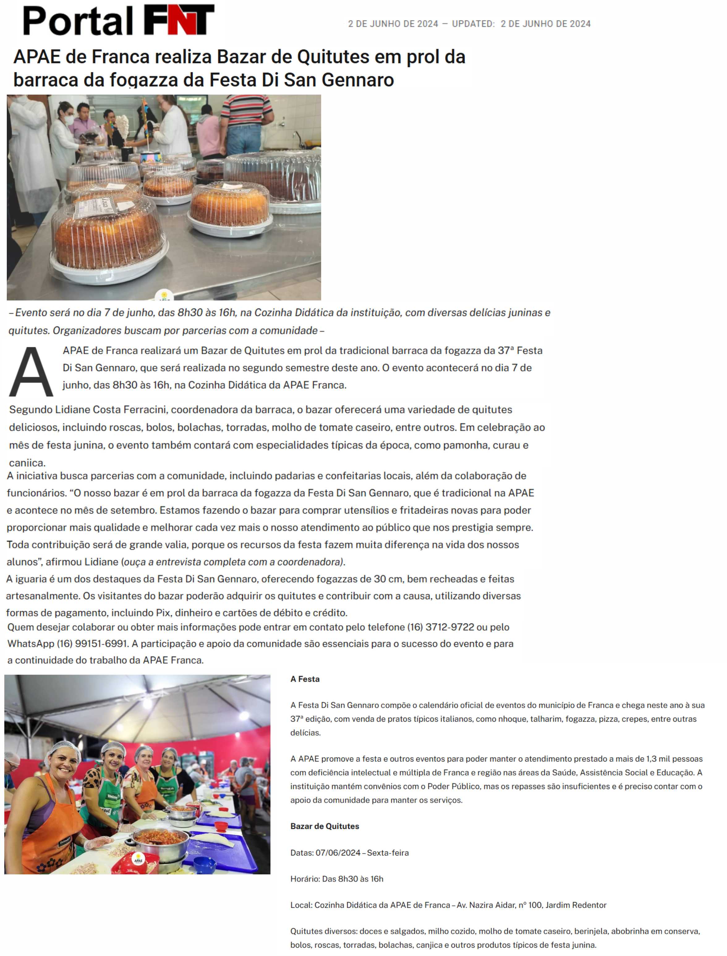 02.07.2025 Portal Fato no Ato APAE de Franca realiza Bazar de Quitutes nesta sexta, 4 de j...