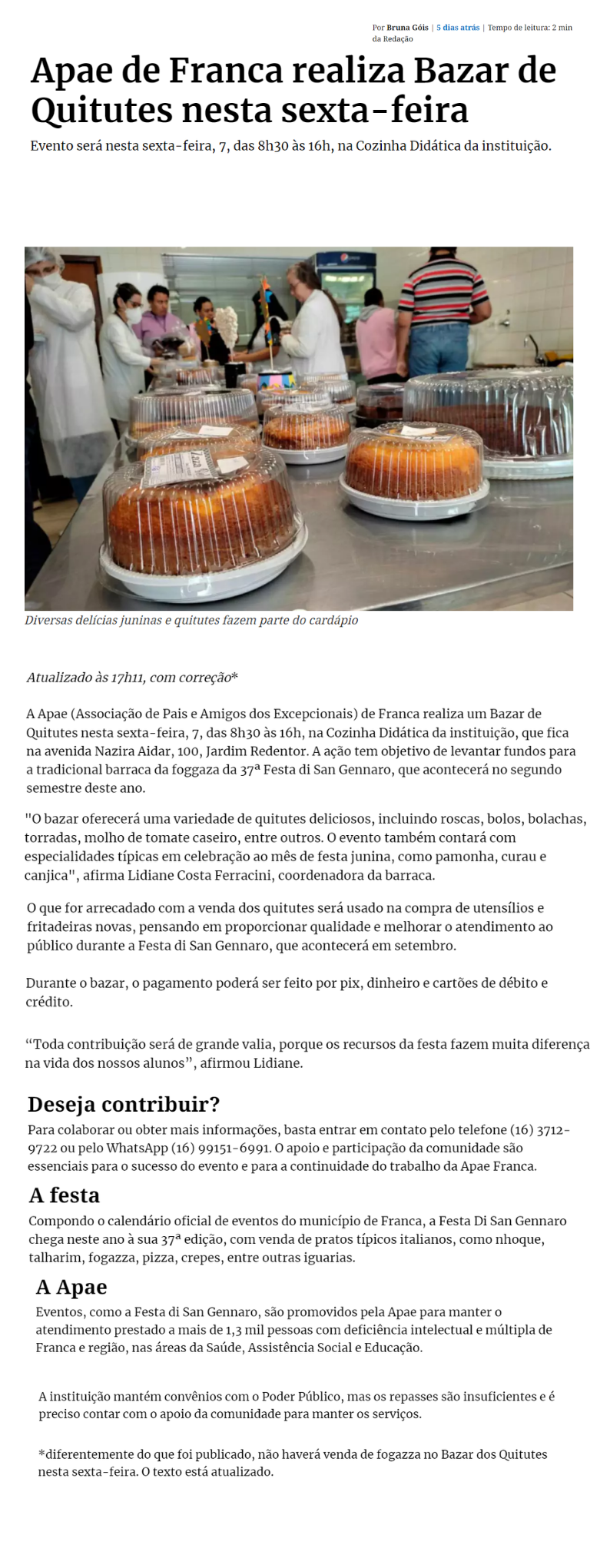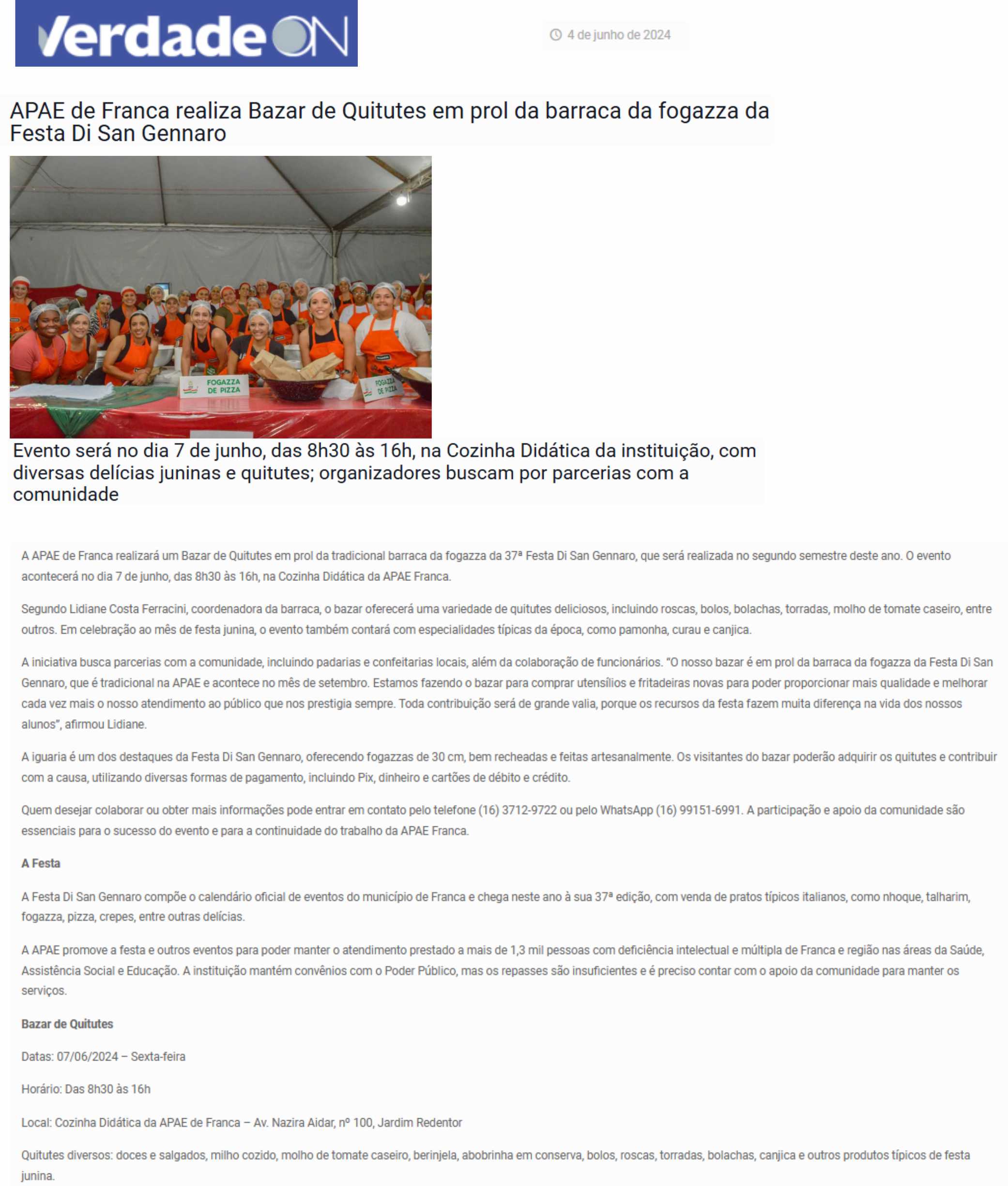 02.07.25 Vi no Site APAE de Franca realiza Bazar de Quitutes nesta sexta, 4 de julho, com...
