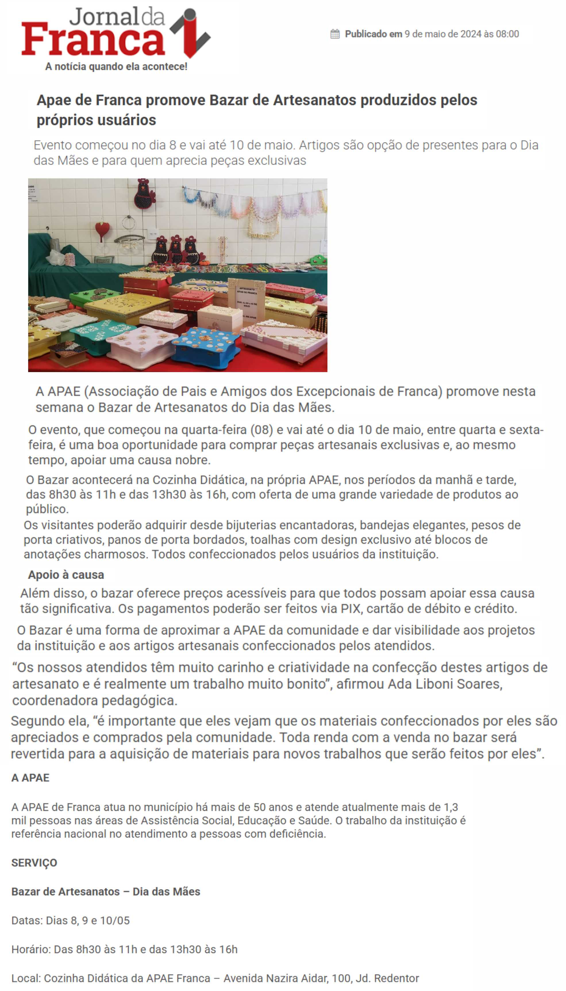03/08/16 - DIÁRIO DA FRANCA - Apae organiza Bazar dos Quitutes - 0308-diario-da-franca-apa...