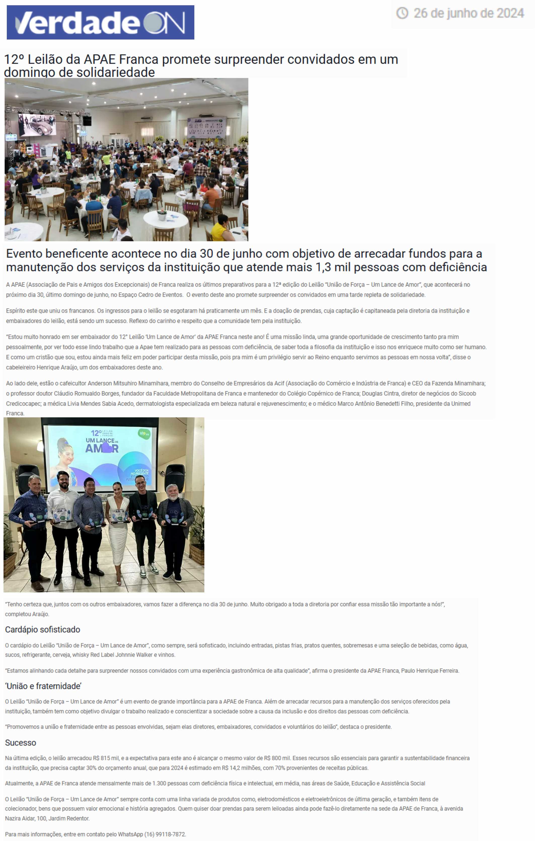 28.05.25 VNS APAE de Franca arrecada mais de R$ 1,1 milhão no 13º Leilão ‘Um Lance de Amor...