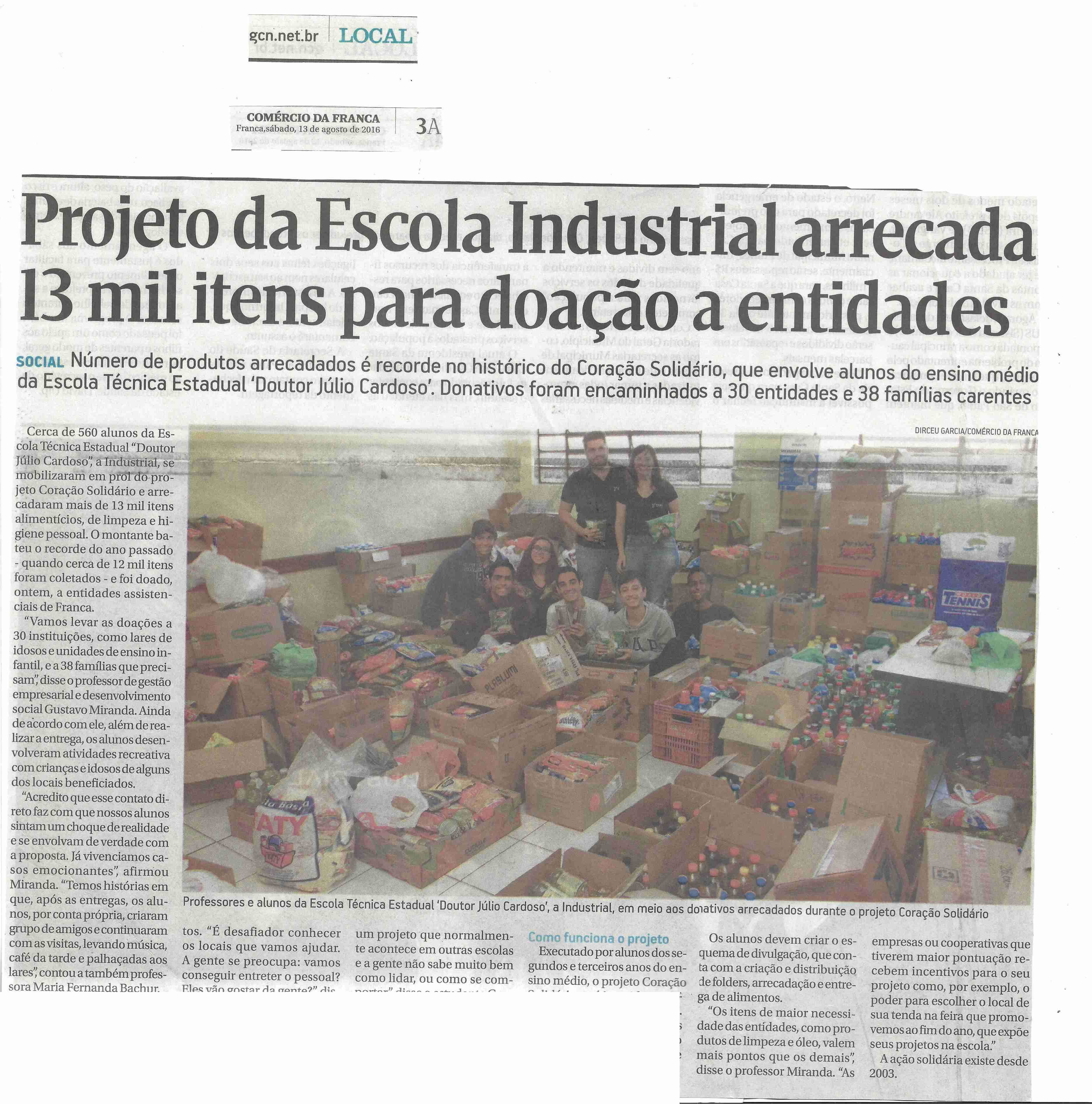 13/08/16 - COMÉRCIO DA FRANCA - Projeto da Escola Industrial arrecada 13 mil itens para do...