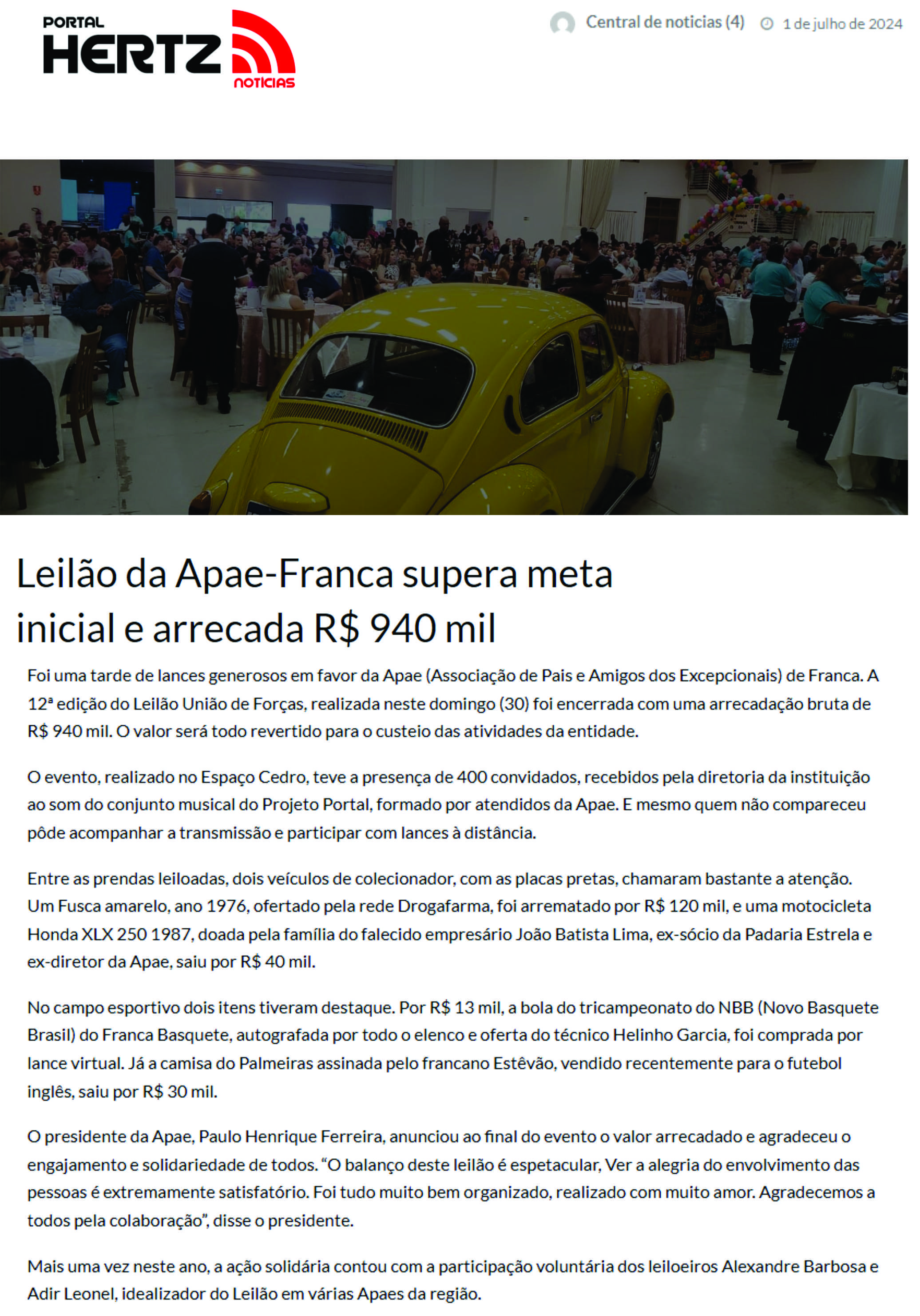 14.05.25 Portal Hertz Leilão da APAE-Franca acontece no dia 24 evento busca recursos para...
