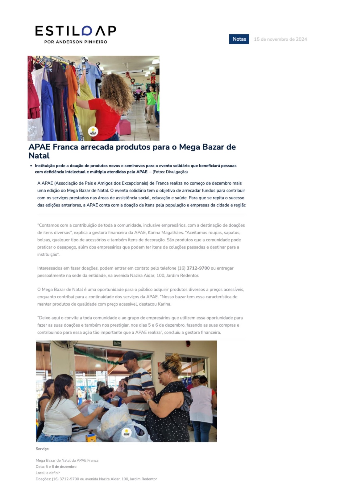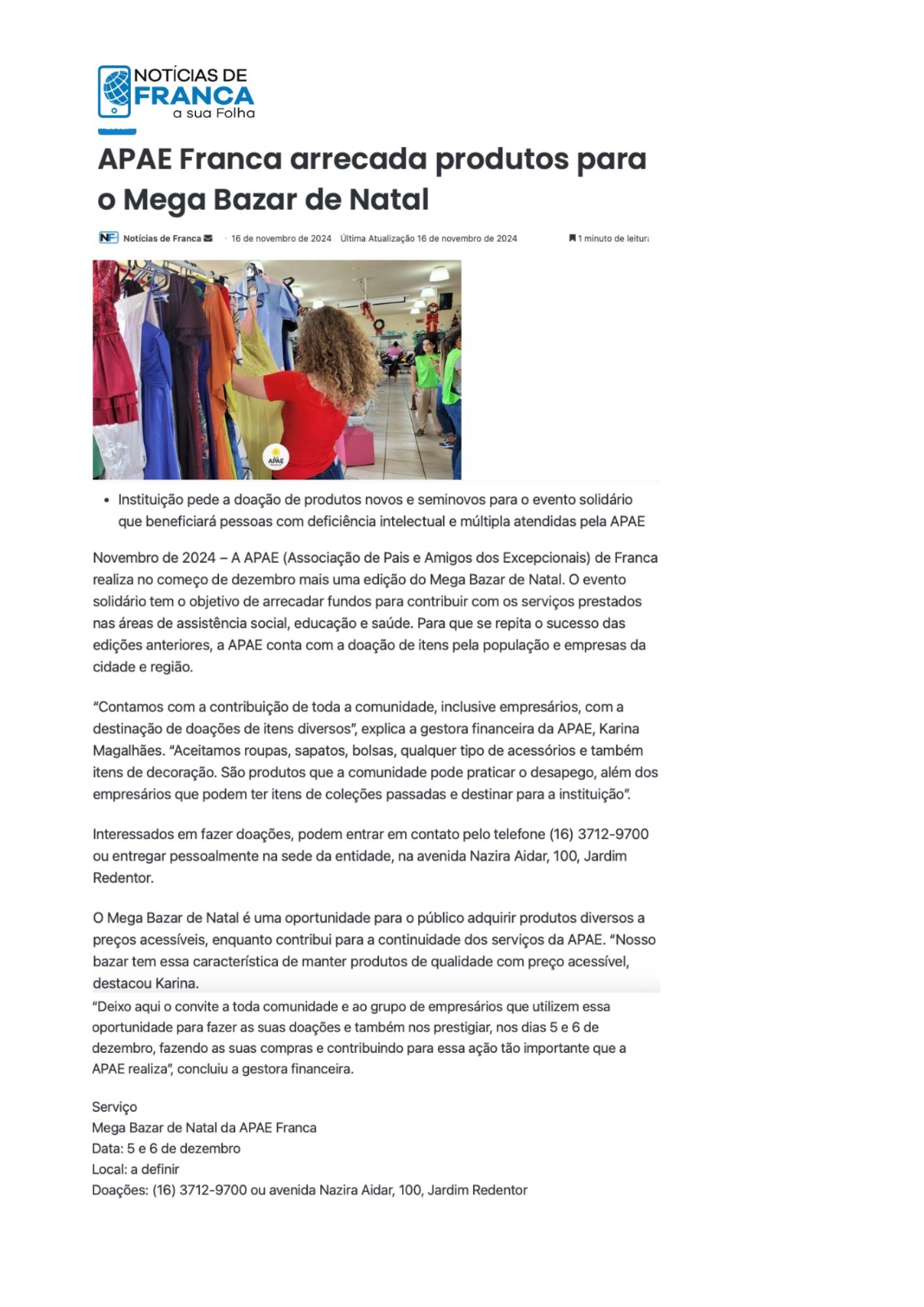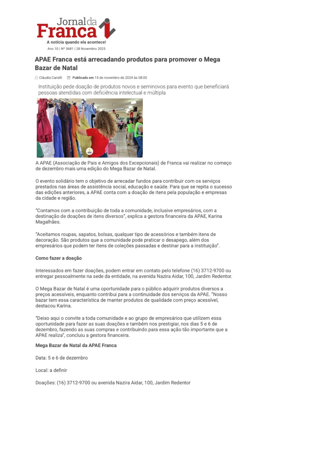 25.11.25 Pulsar Noticias APAE Franca promove Mega Bazar solidário de Natal - 251125-pulsar...