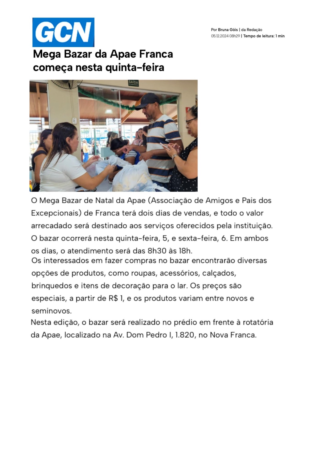 25.11.25 GCN Mega Bazar de Natal da Apae terá peças a partir de 1 em Franca - 251125-gcn-m...