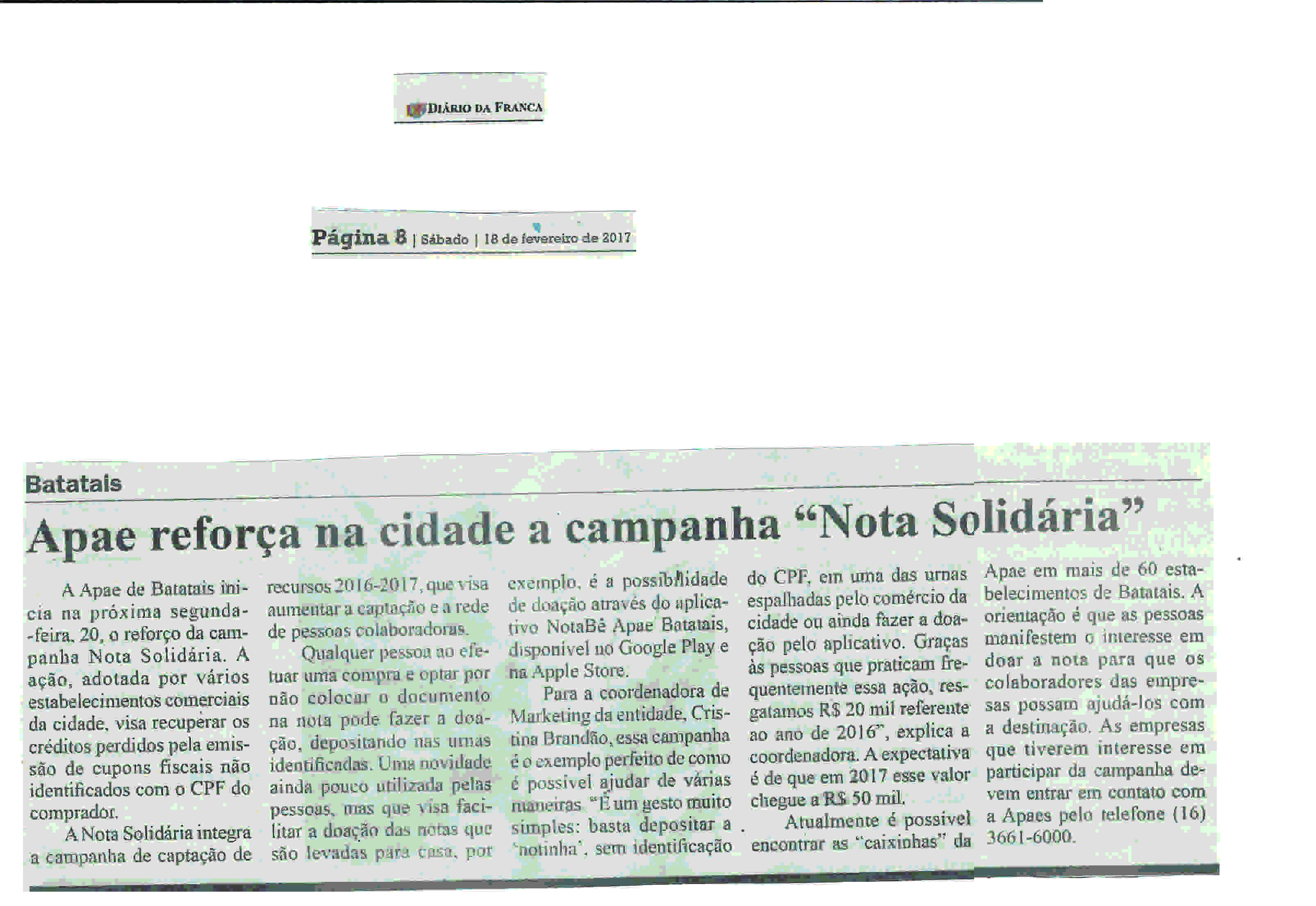 19/02/16 - DIÁRIO DA FRANCA - Apae Batatais - 1902-apae-batatais-jornal-diario-da-franca....