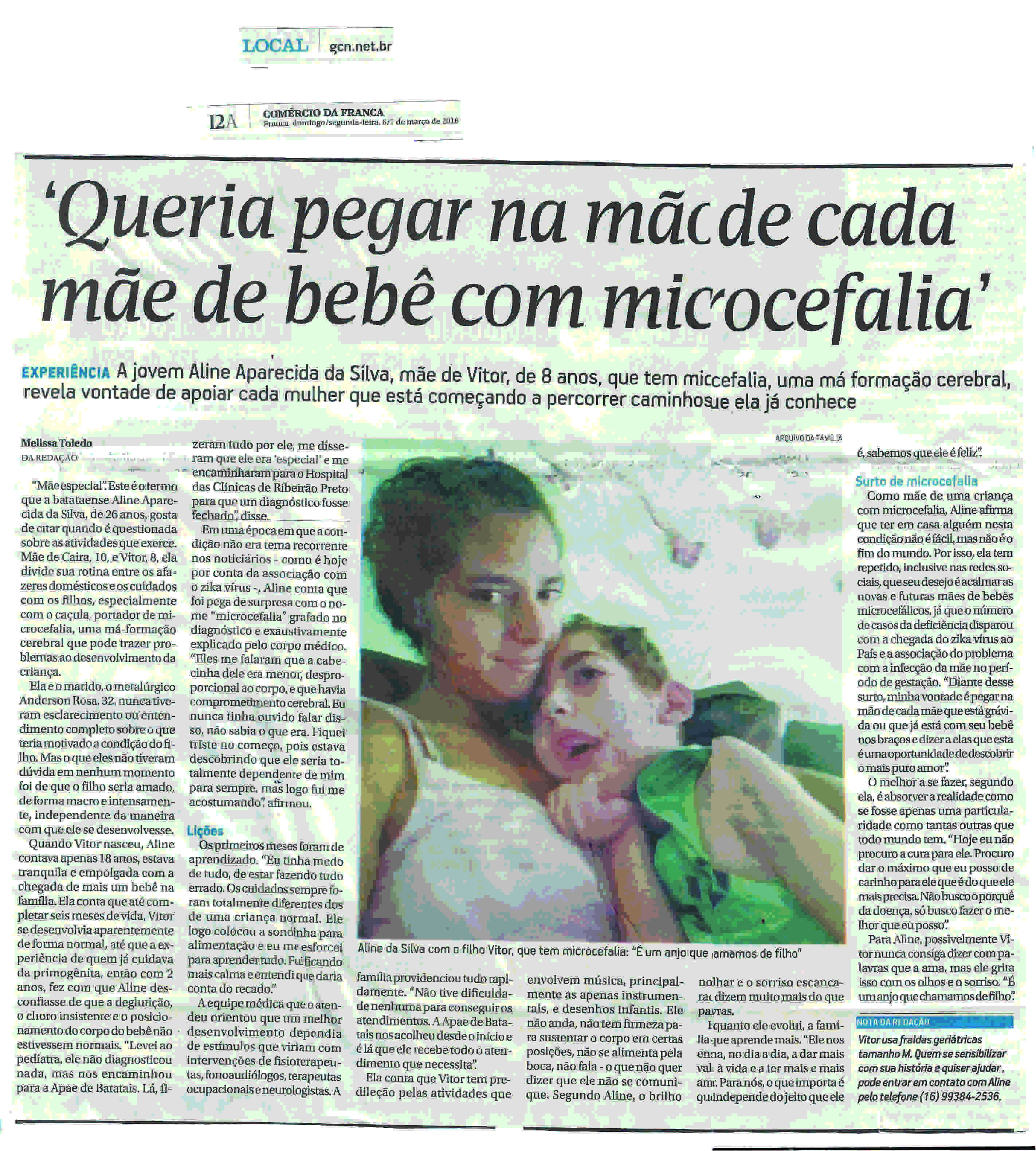 13/03/16 - DIÁRIO DA FRANCA - Microcefalia faz aumentar casos de mães abandonadas - 1303-...