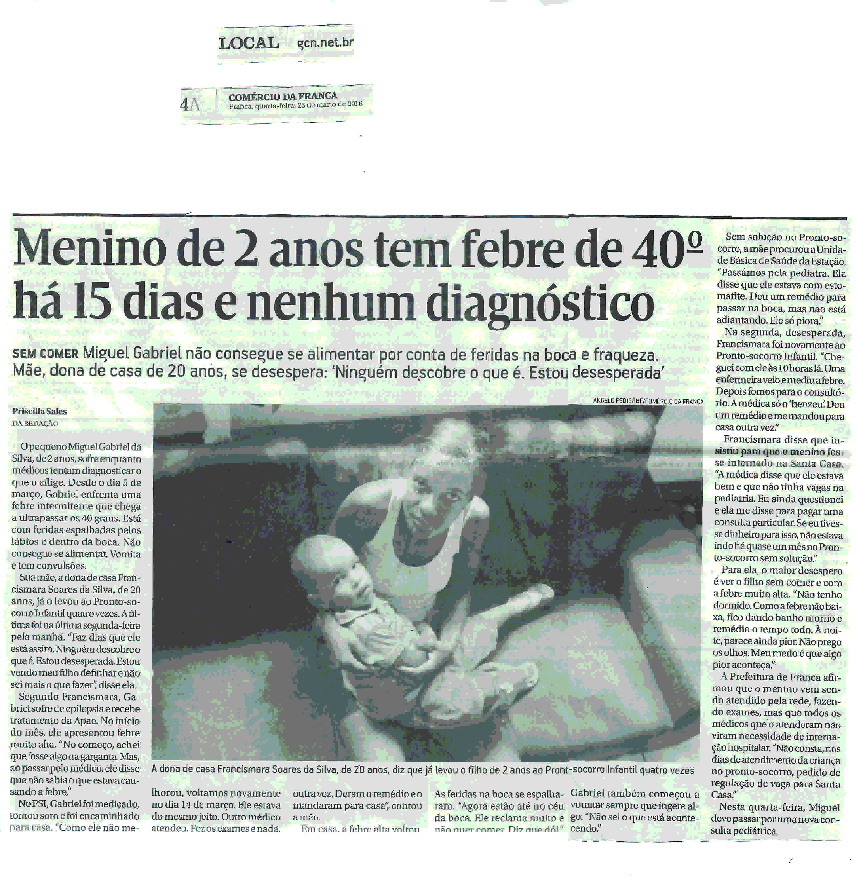 23/03/16 - COMÉRCIO DA FRANCA - Menino de 2 anos tem febre de 40º há 15 dias - menino-de-...